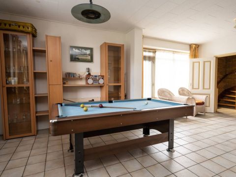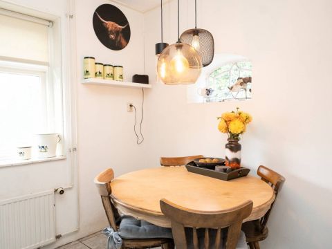 Via de hal toegang tot de gesloten keuken met ook hier de eettafel. De eenvoudige keuken beschikt over enkele inbouwapparatuur.