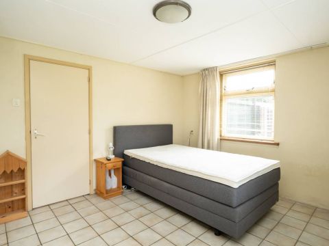 Via de hal doorloop naar de royale slaapkamer en de nette badkamer op de begane grond.
