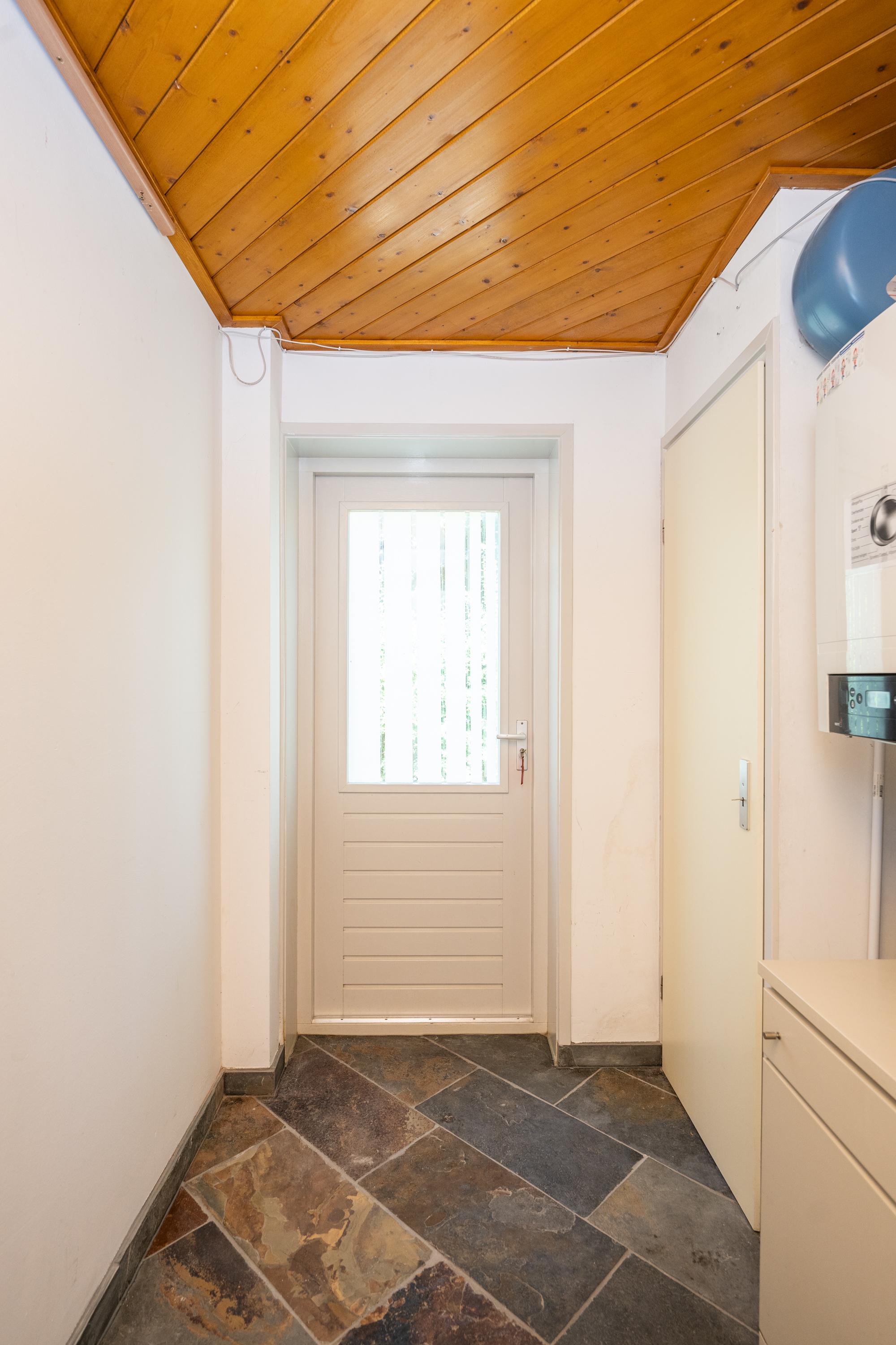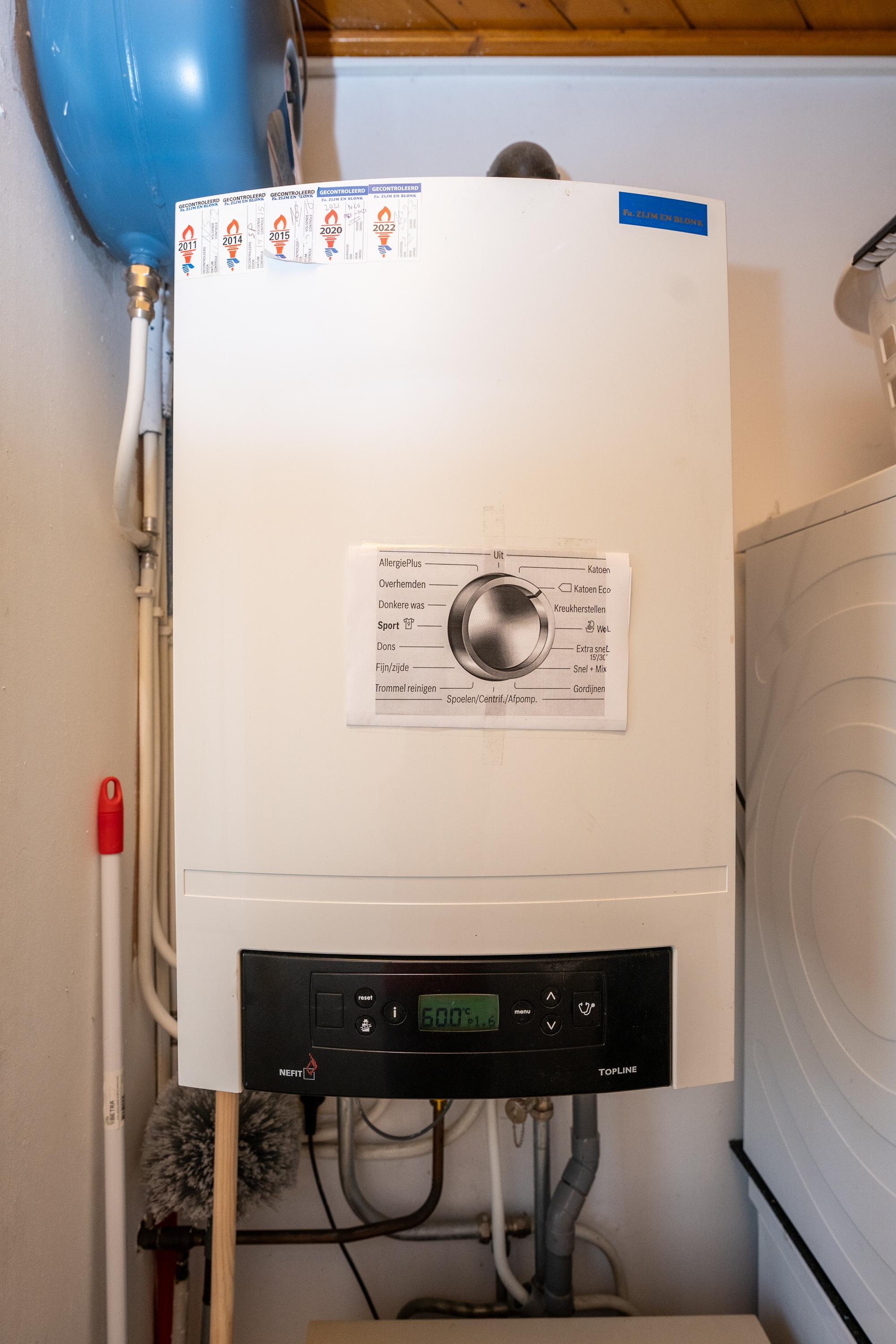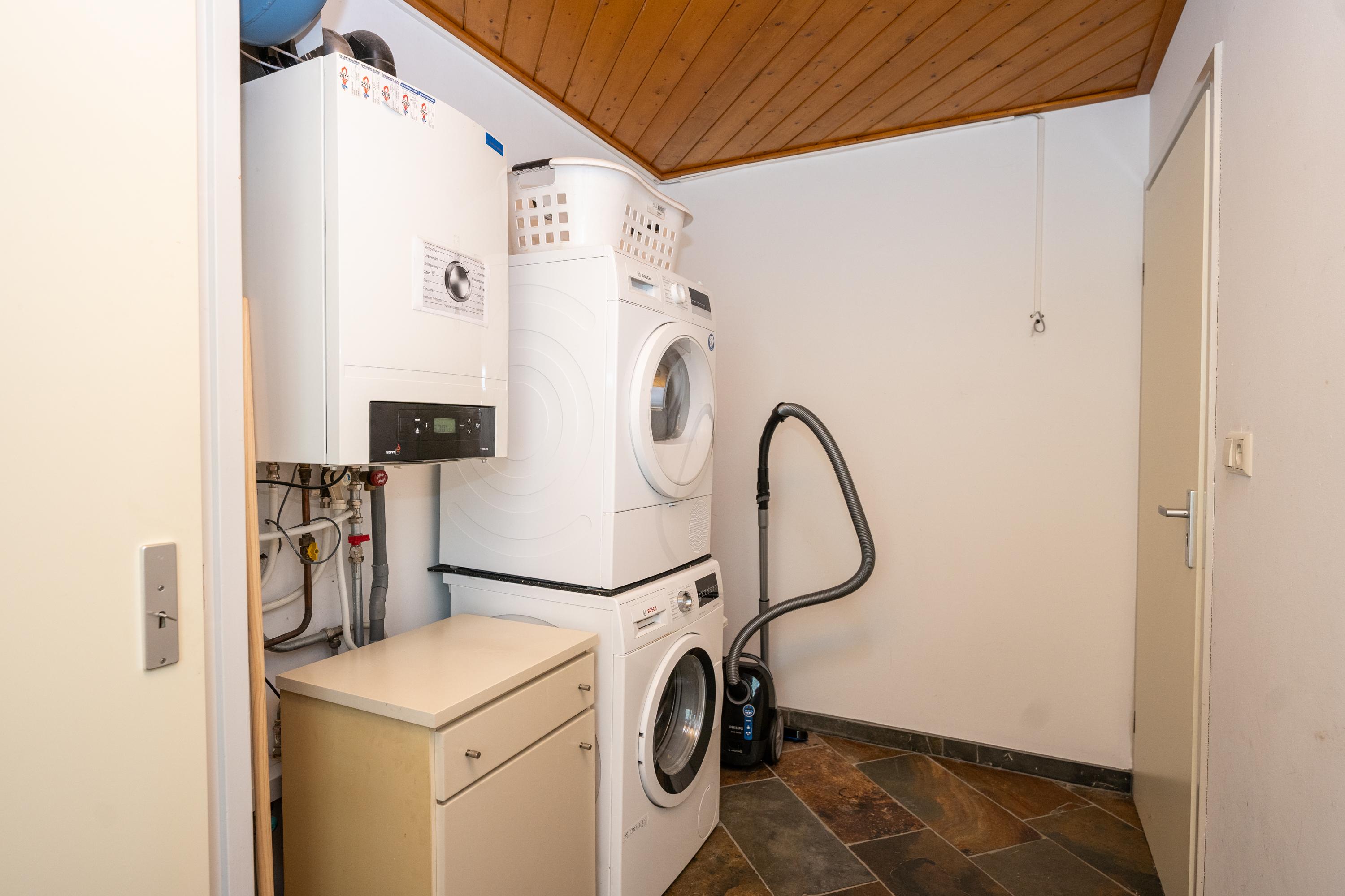 In de berging is de opstelplaats voor de cv-ketel, de wasmachine en de droger. Via de toegangsdeur is een doorloop naar buiten.