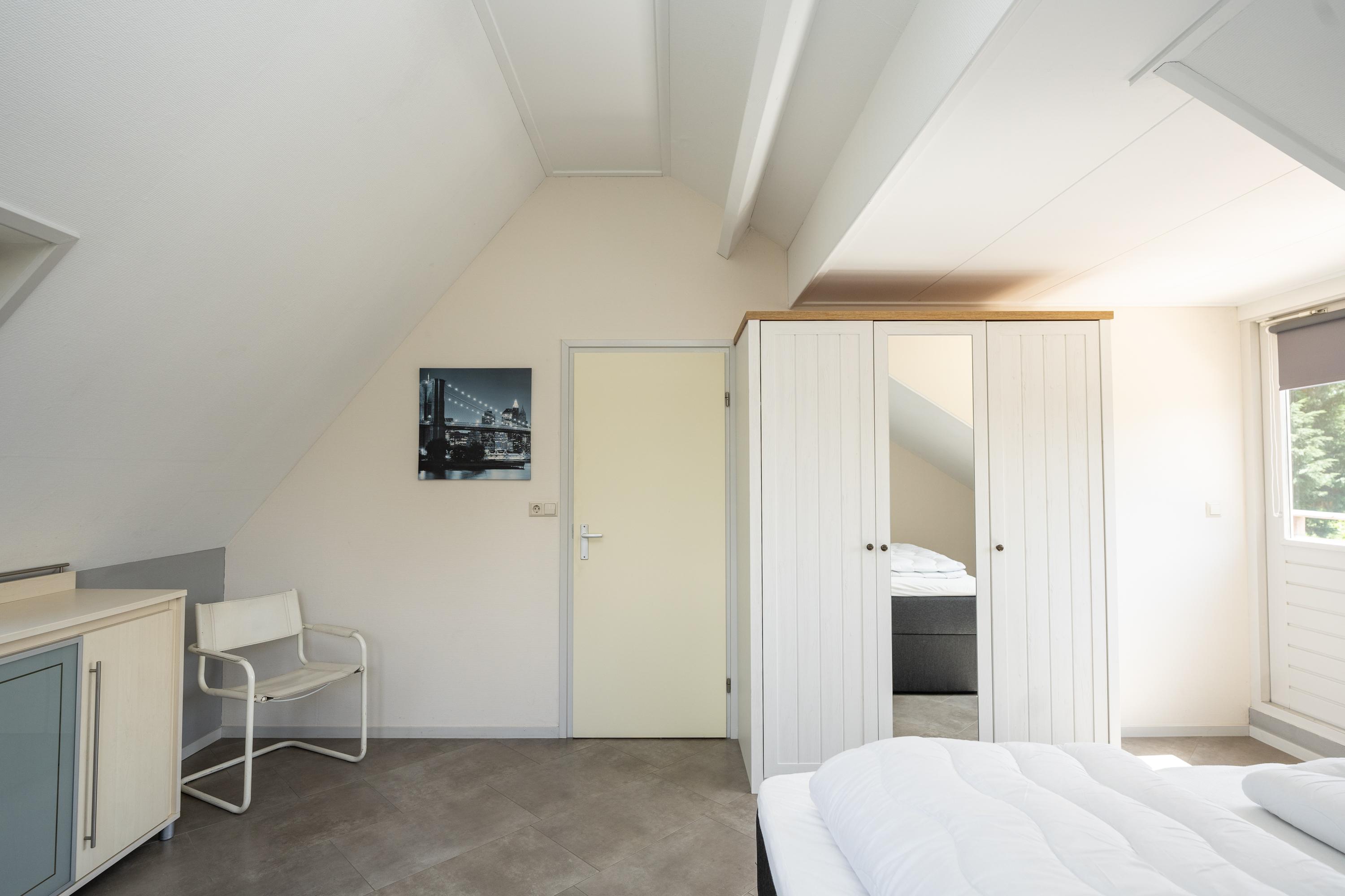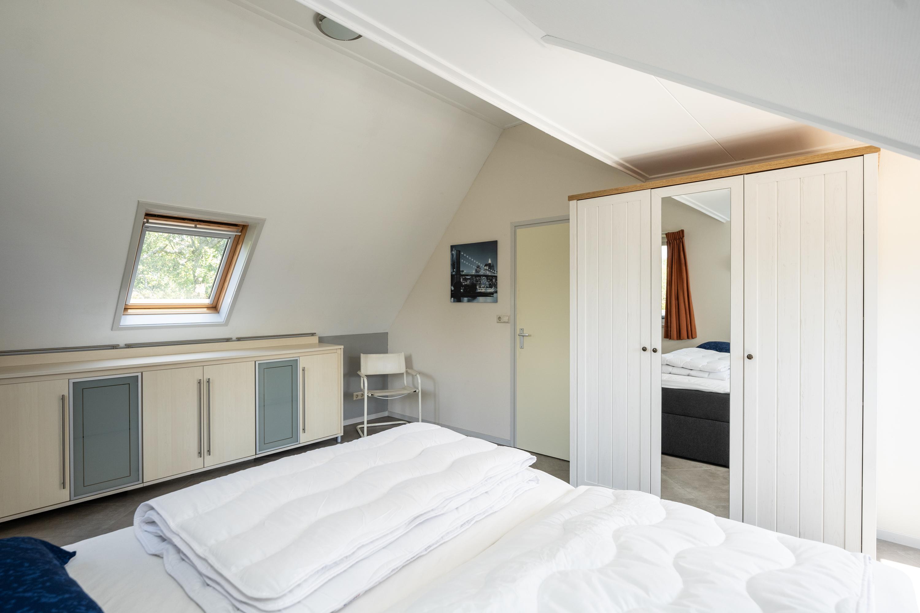 De woning beschikt over een tweepersoons slaapkamer op de beneden verdieping, met een ruime linnenkast.
