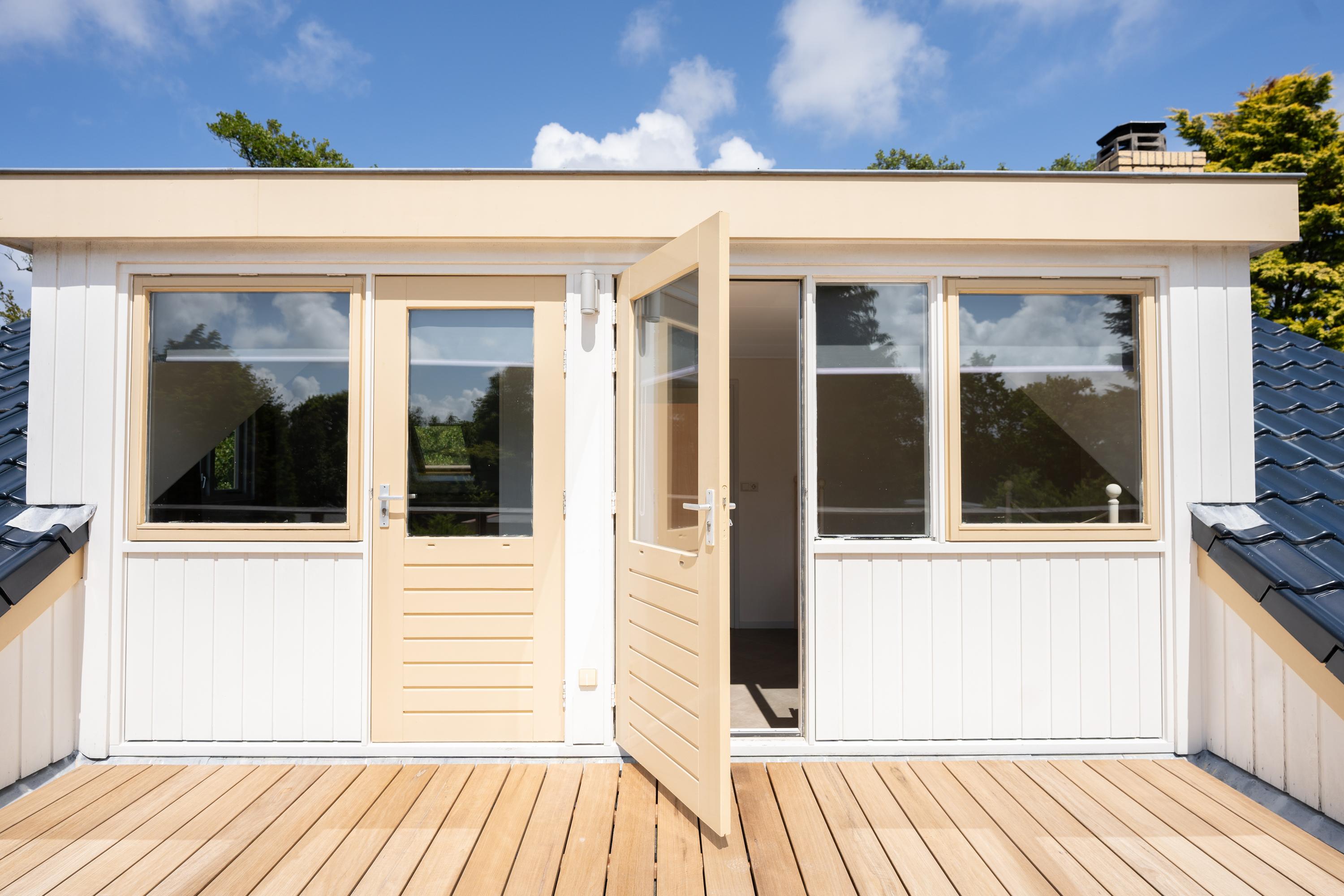Dankzij de grote ramen en de schuifpui heeft de woning veel lichtinval en via de schuifpui komt u op het terras waar het in de zomer heerlijk vertoeven is.