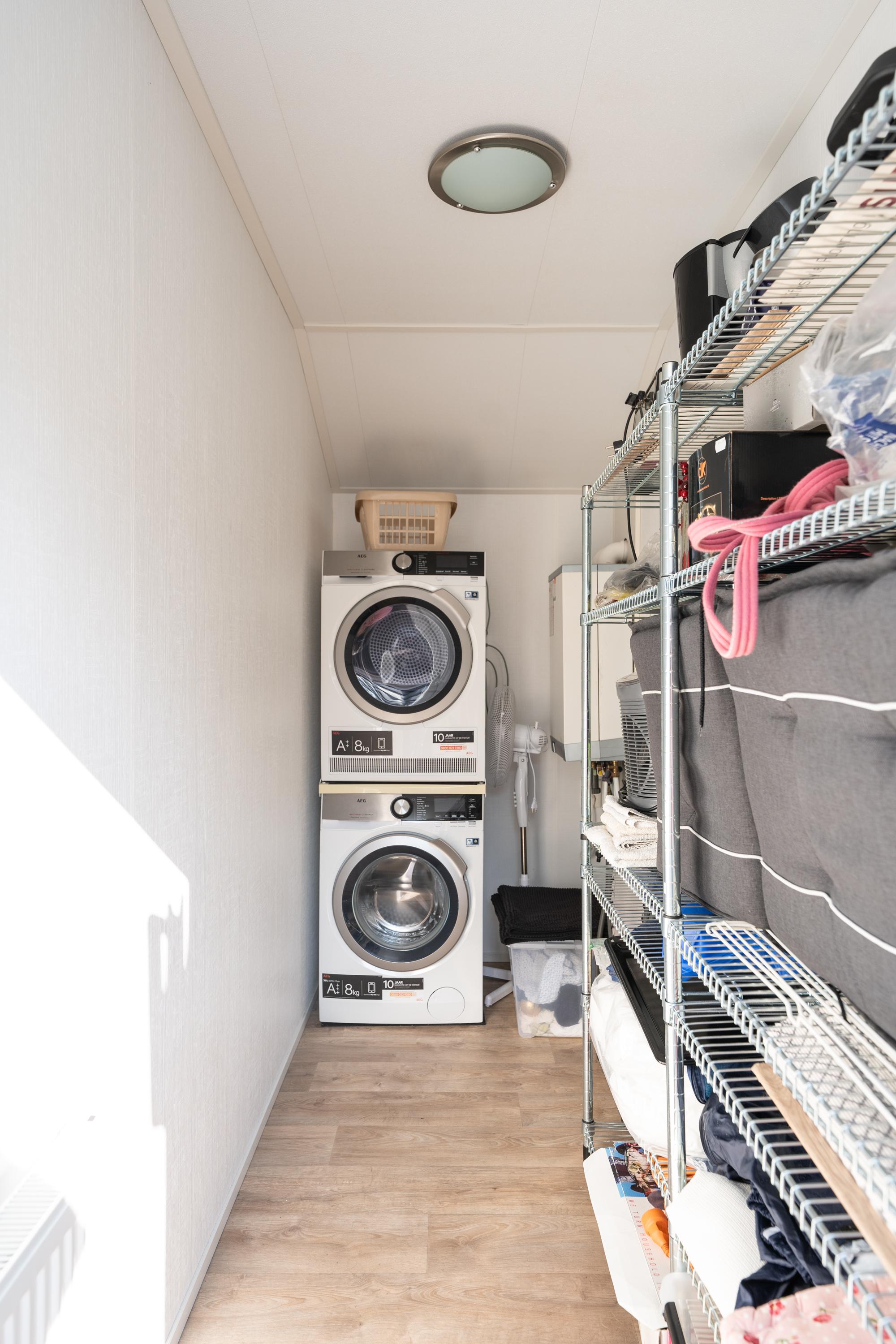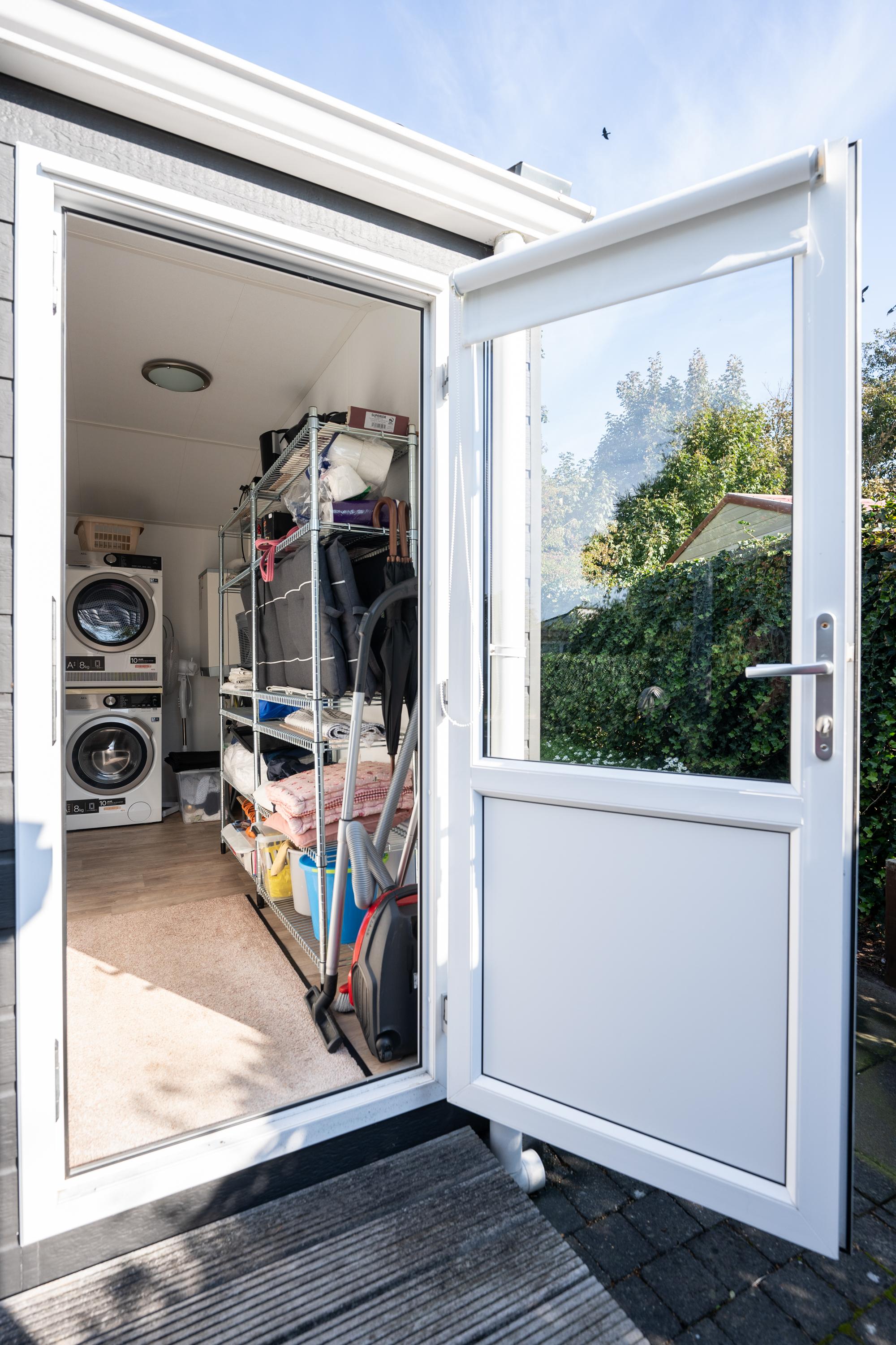De berging is buitenom bereikbaar en hier bevindt zich de opstelplaats voor de cv-ketel, de wasmachine en de droger. Ook is er in de berging voldoende opbergruimte.