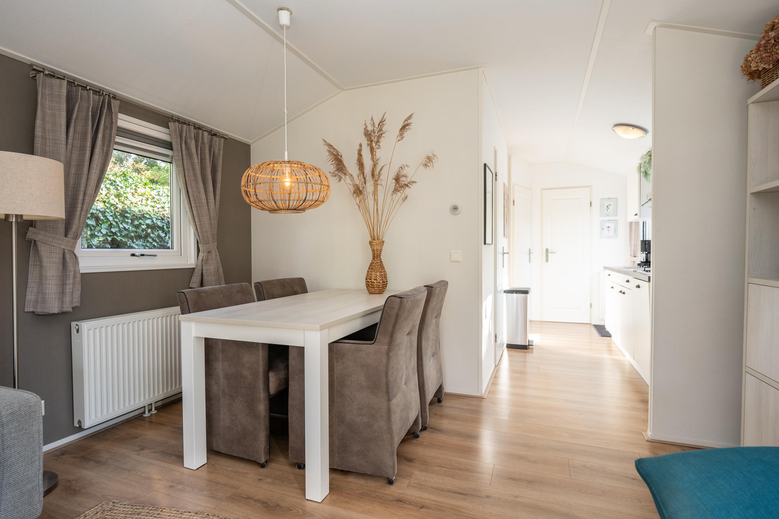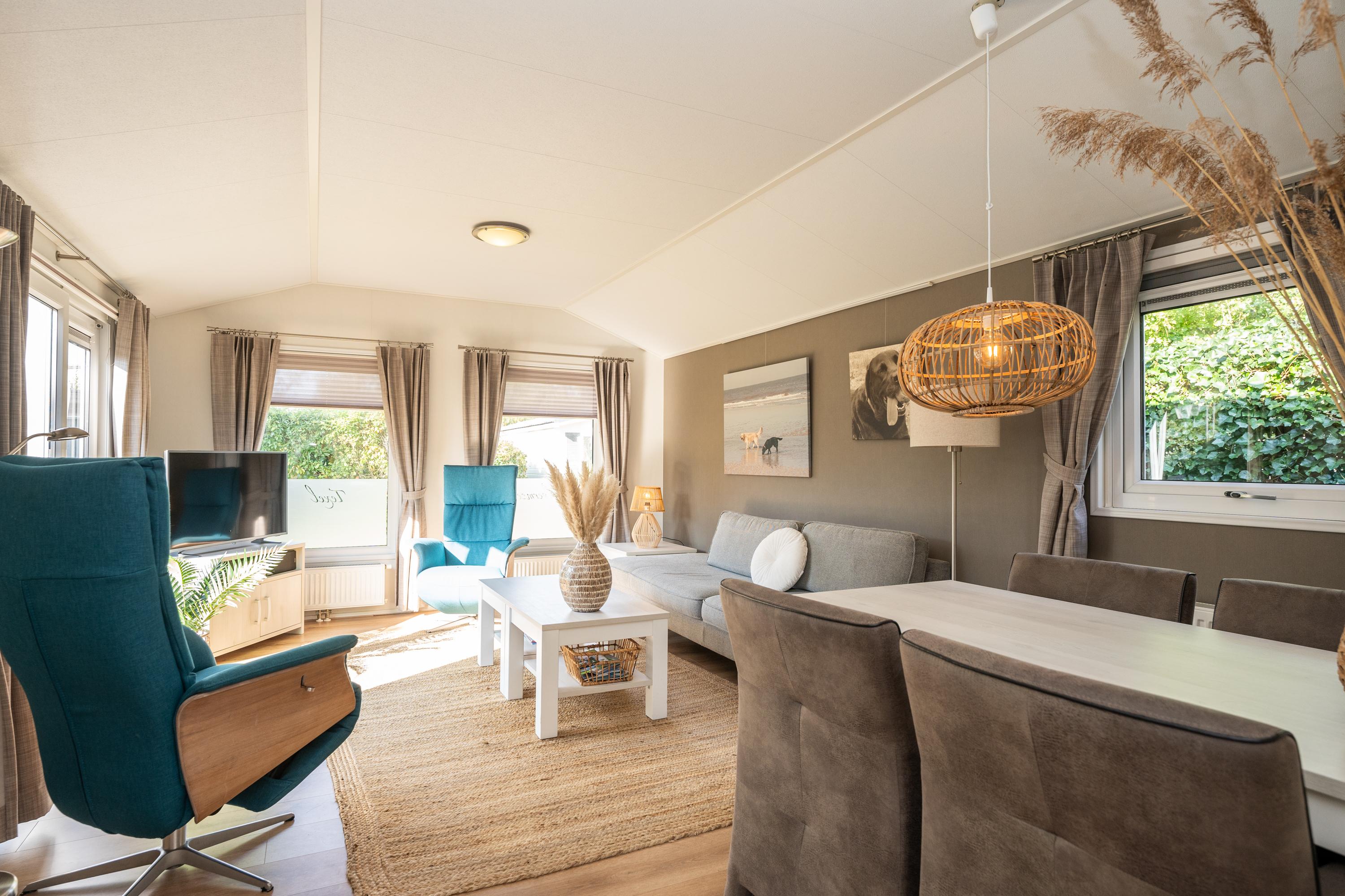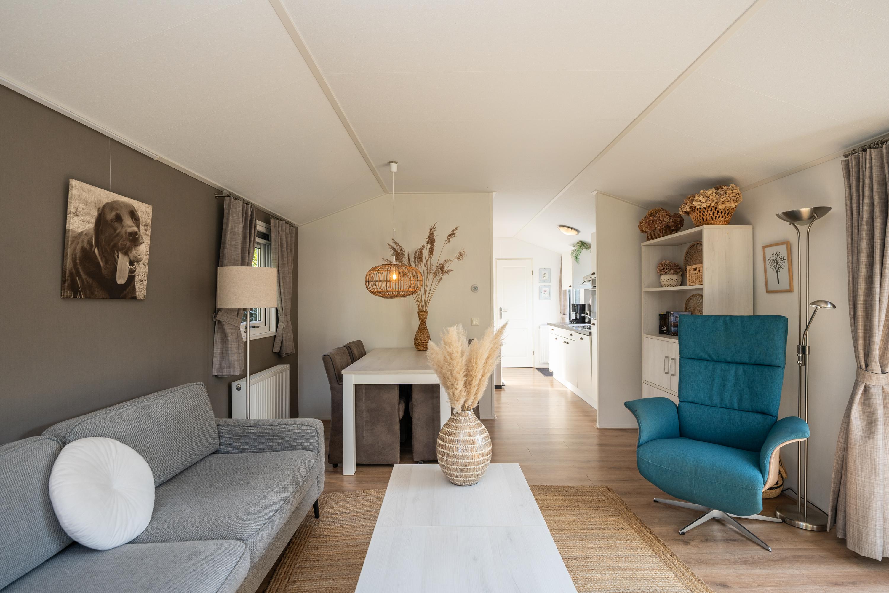 Het chalet is in mooie tinten ingericht wat direct een comfortabel thuisgevoel geeft.