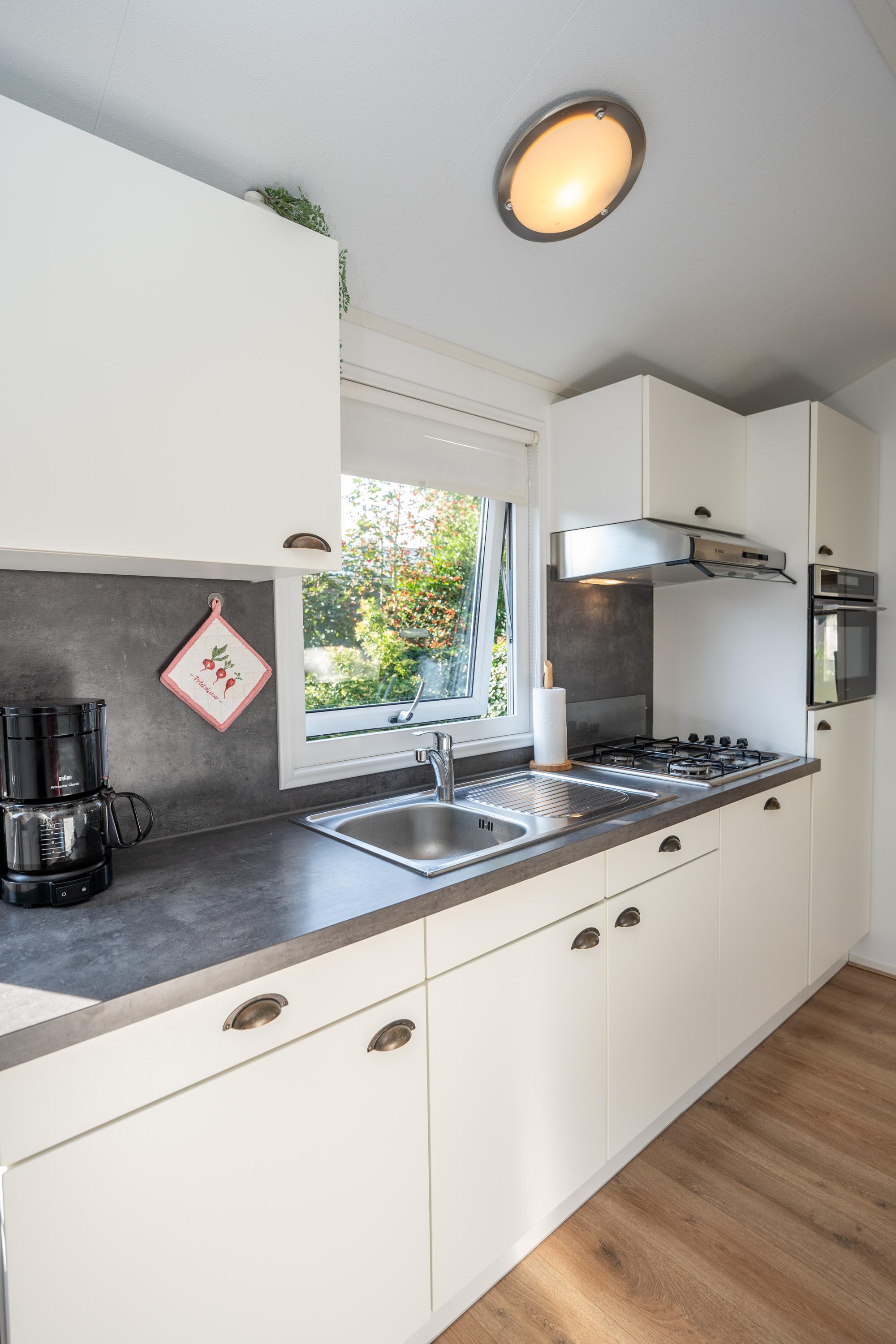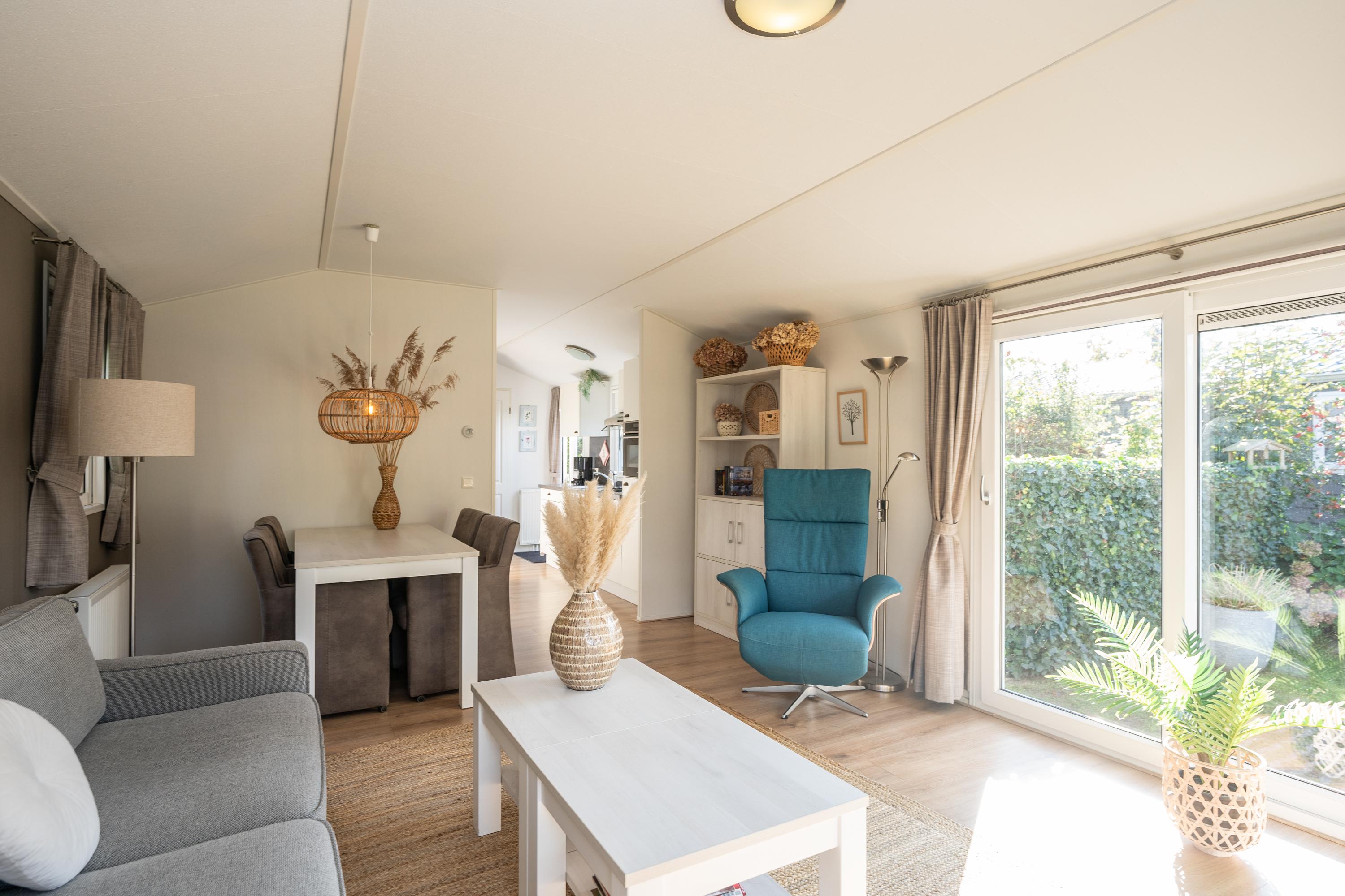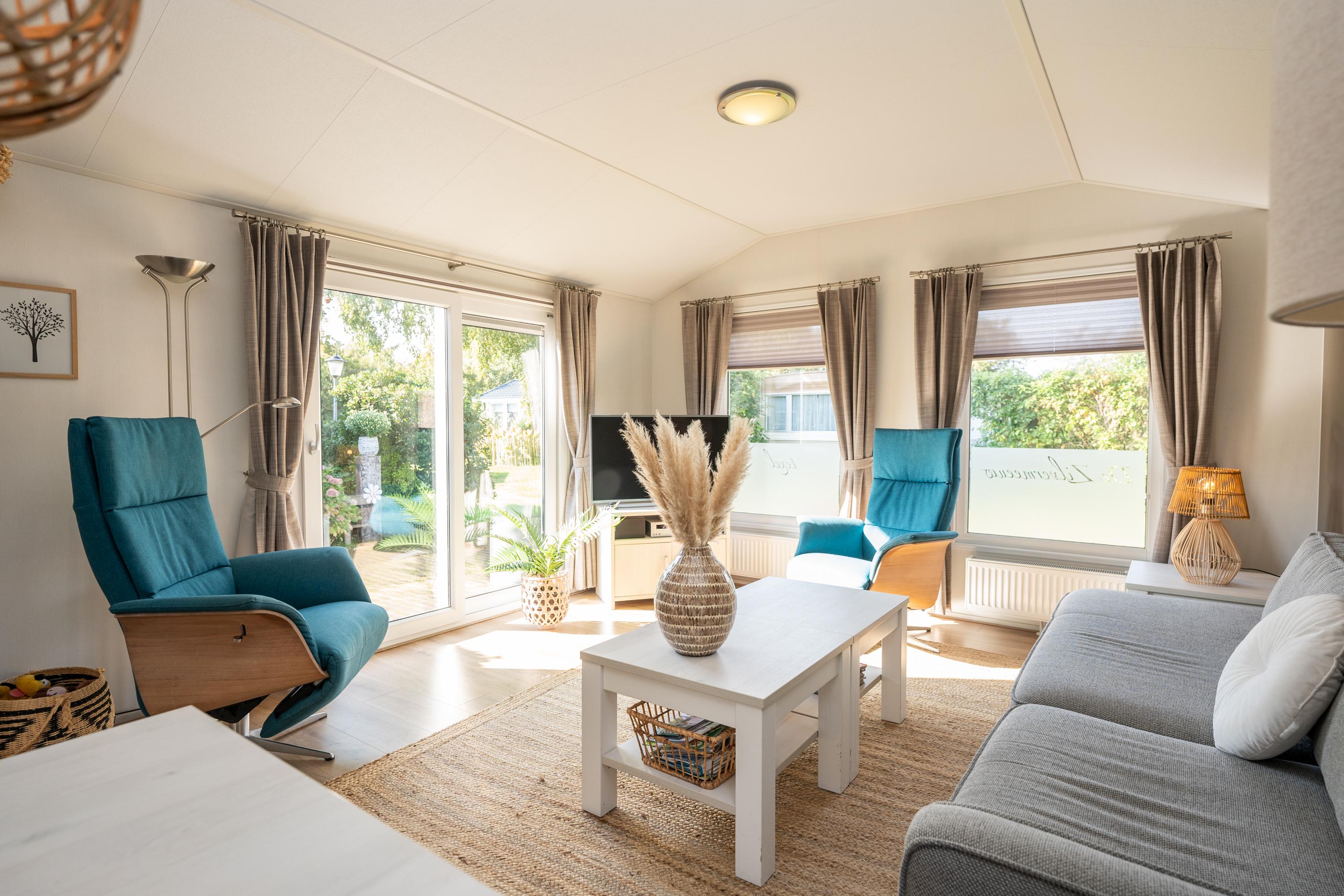 Het chalet is in mooie tinten ingericht wat direct een comfortabel thuisgevoel geeft.