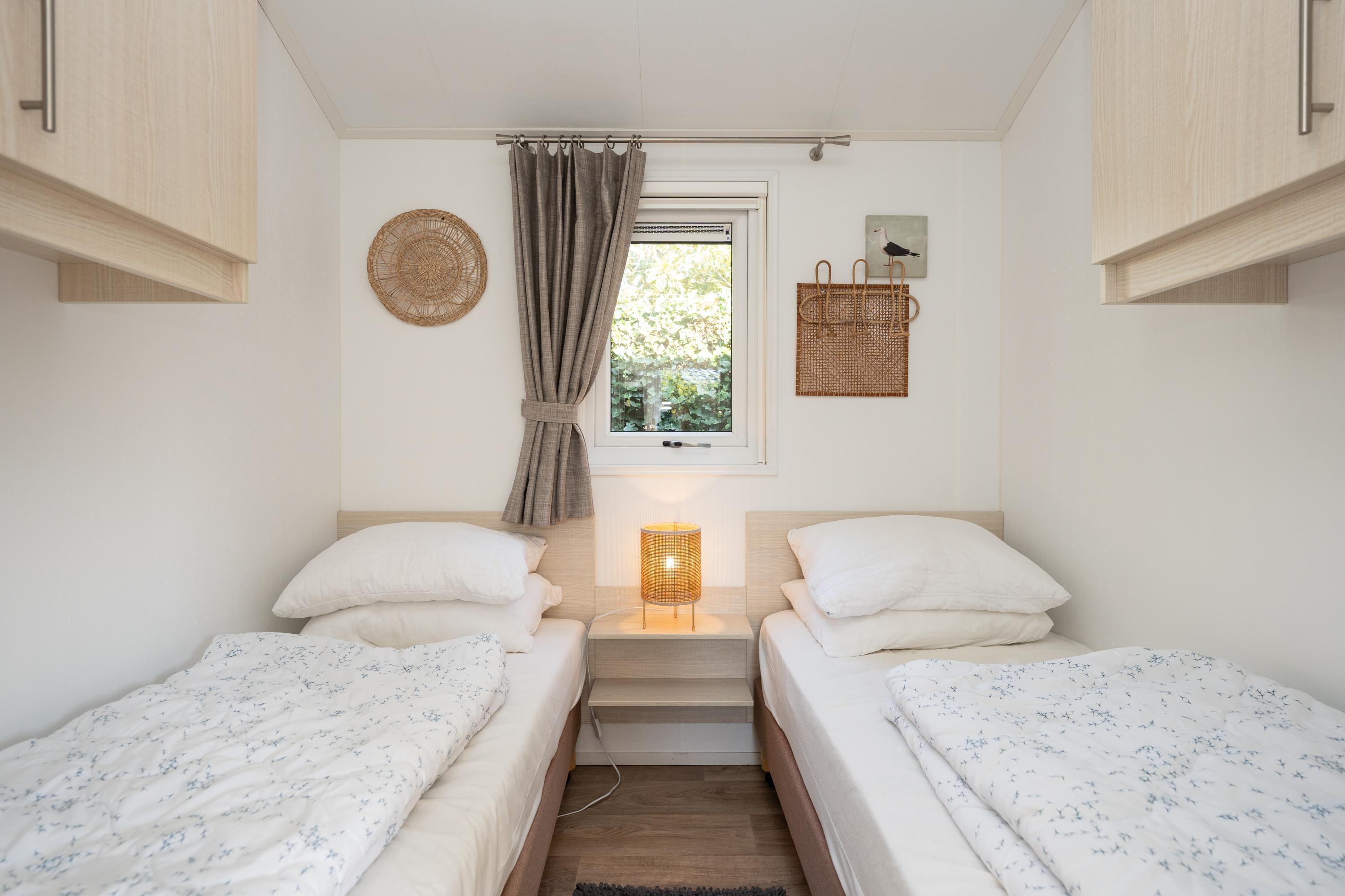 Een slaapkamer beschikt over een tweepersoonsbed en de andere slaapkamer is uitgerust met 2 eenpersoonsbedden.