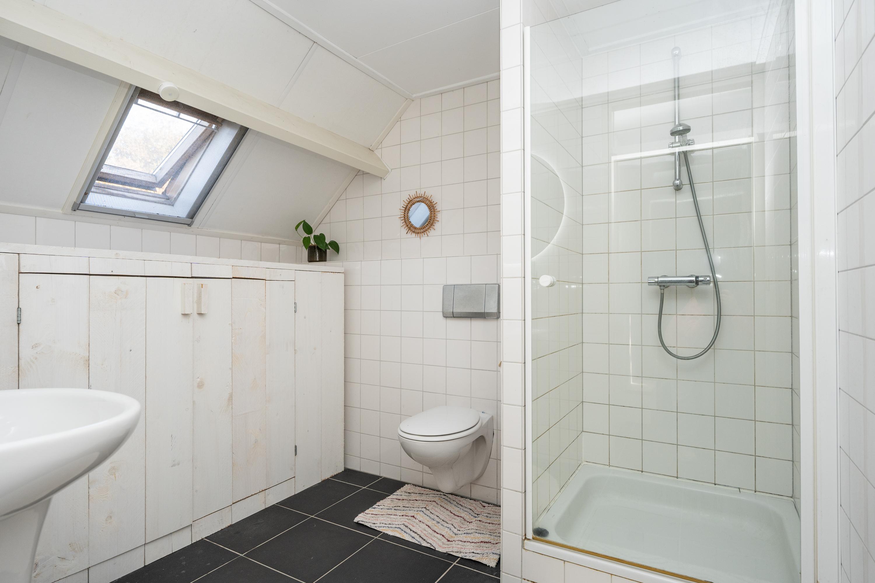 De tweede badkamer beschikt een douche, een toilet en een wastafel.