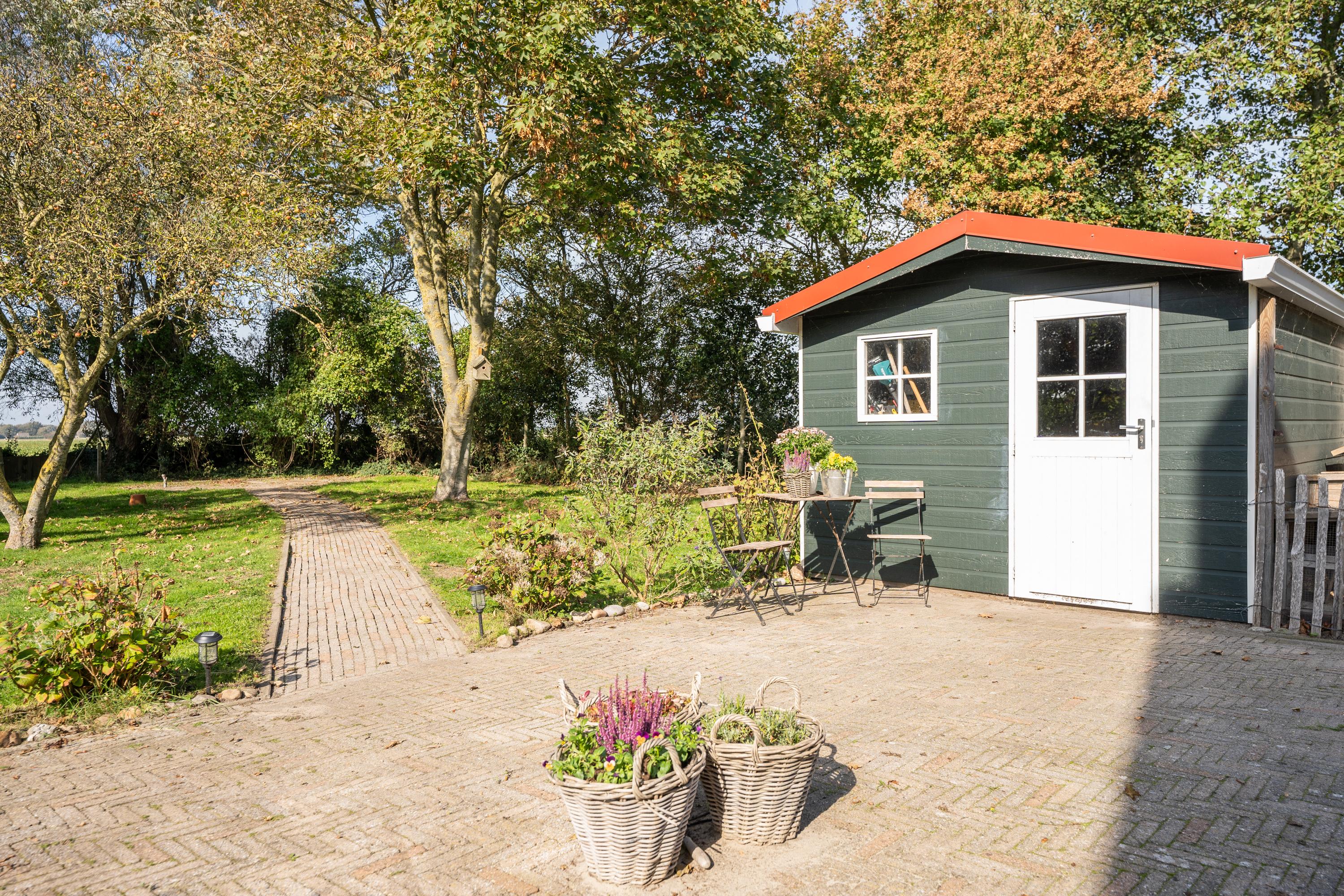 Achter de woning ontvouwt zich een ware oase van rust: een uitgestrekte tuin met prachtig uitzicht over de weilanden, waar u volledige privacy ervaart.