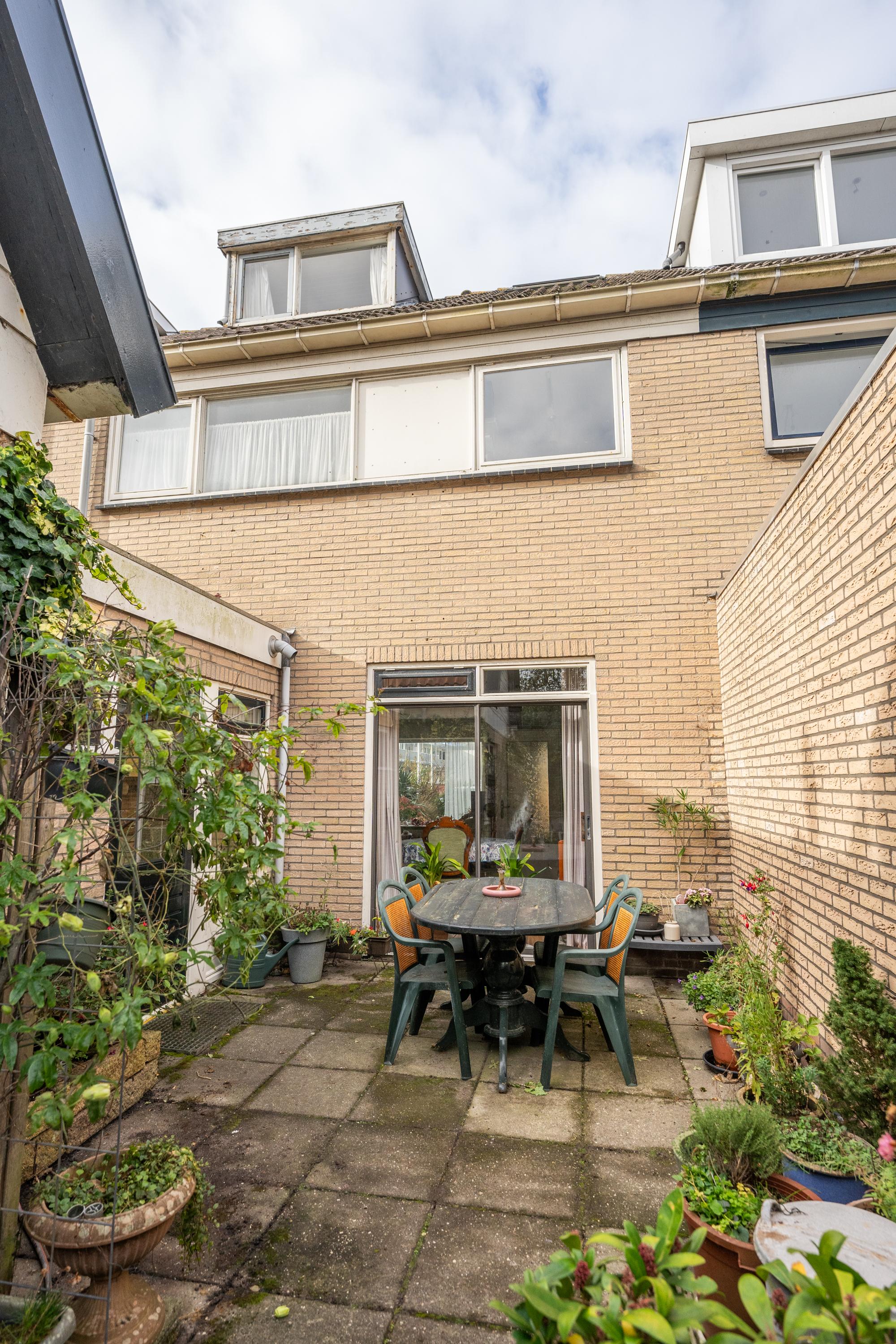 Tuin | De zonnige achtertuin met achterom is grotendeels bestraat en biedt diverse plekjes om heerlijk privé te vertoeven.