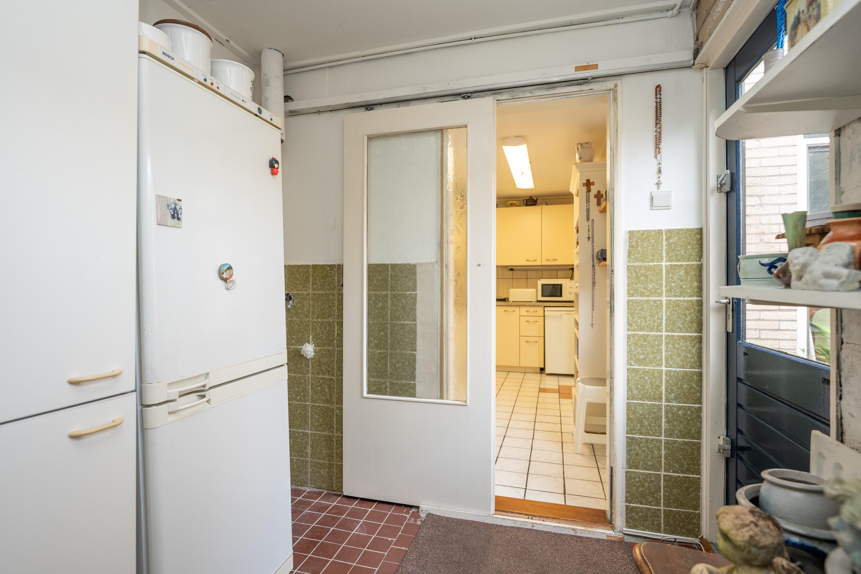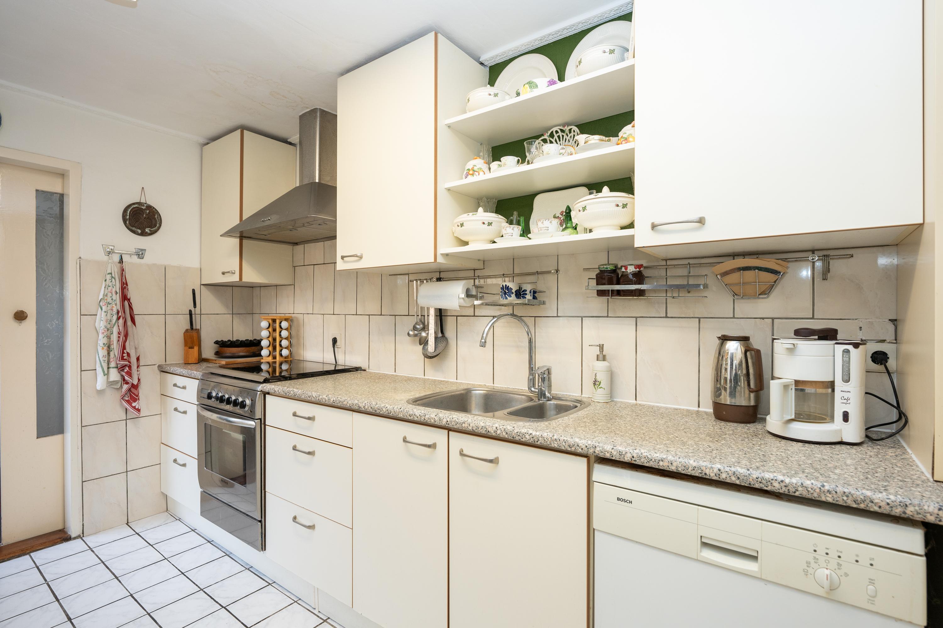 De keuken is eenvoudig van opzet maar compleet en netjes onderhouden en tevens voorzien van enkele praktische apparatuur. Aansluitend aan de keuken bevindt zich een bijkeuken met een deur naar de achtertuin. Via de bijkeuken is er toegang tot het achterste woongedeelte.