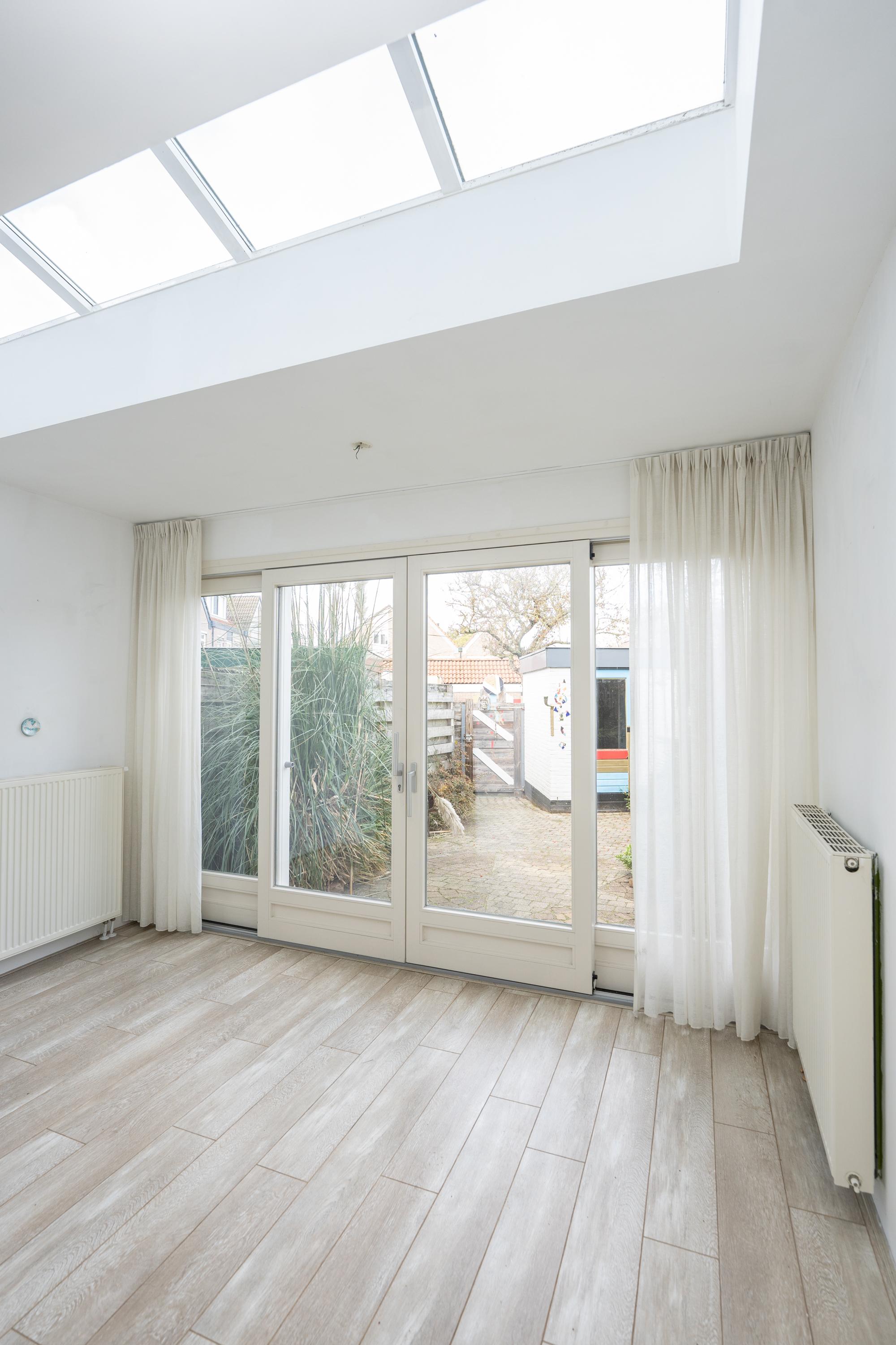 De royale woonkamer is aan de achterzijde uitgebreid en voorzien van een schuifpui. Dankzij de uitbouw en lichtstraat is de woonkamer uitzonderlijk ruim en licht.