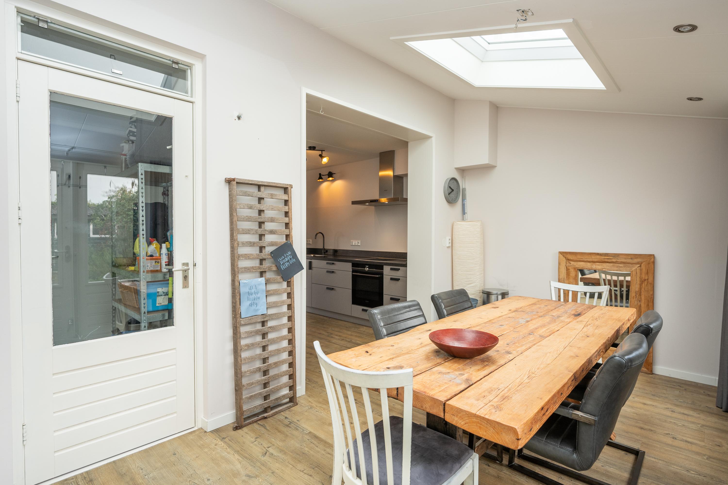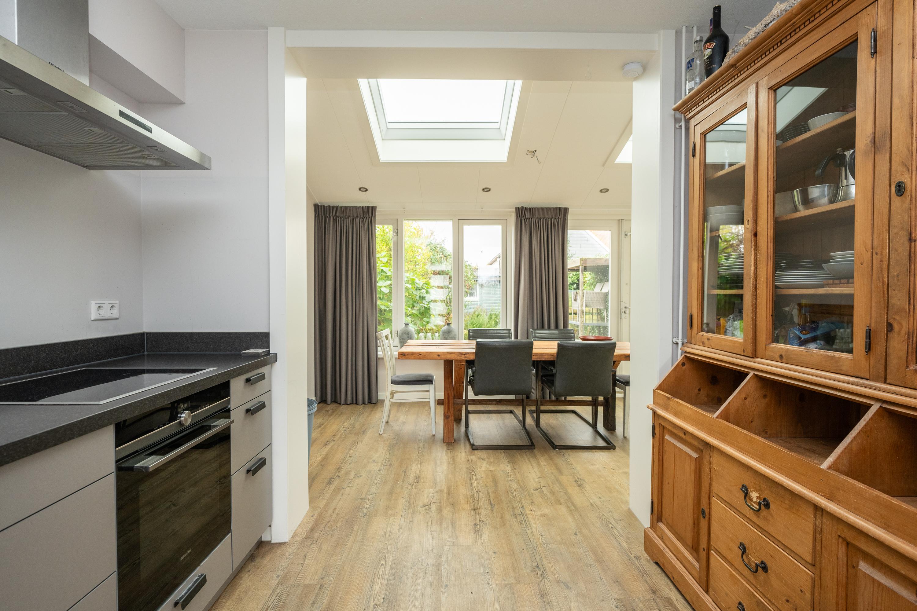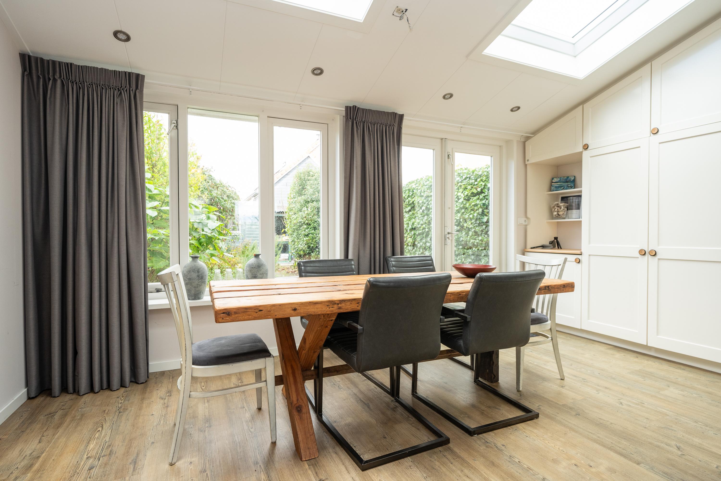 De serre biedt prachtig licht door de grote dakramen en raampartijen. Via de openslaande deuren bereik je de tuin.
