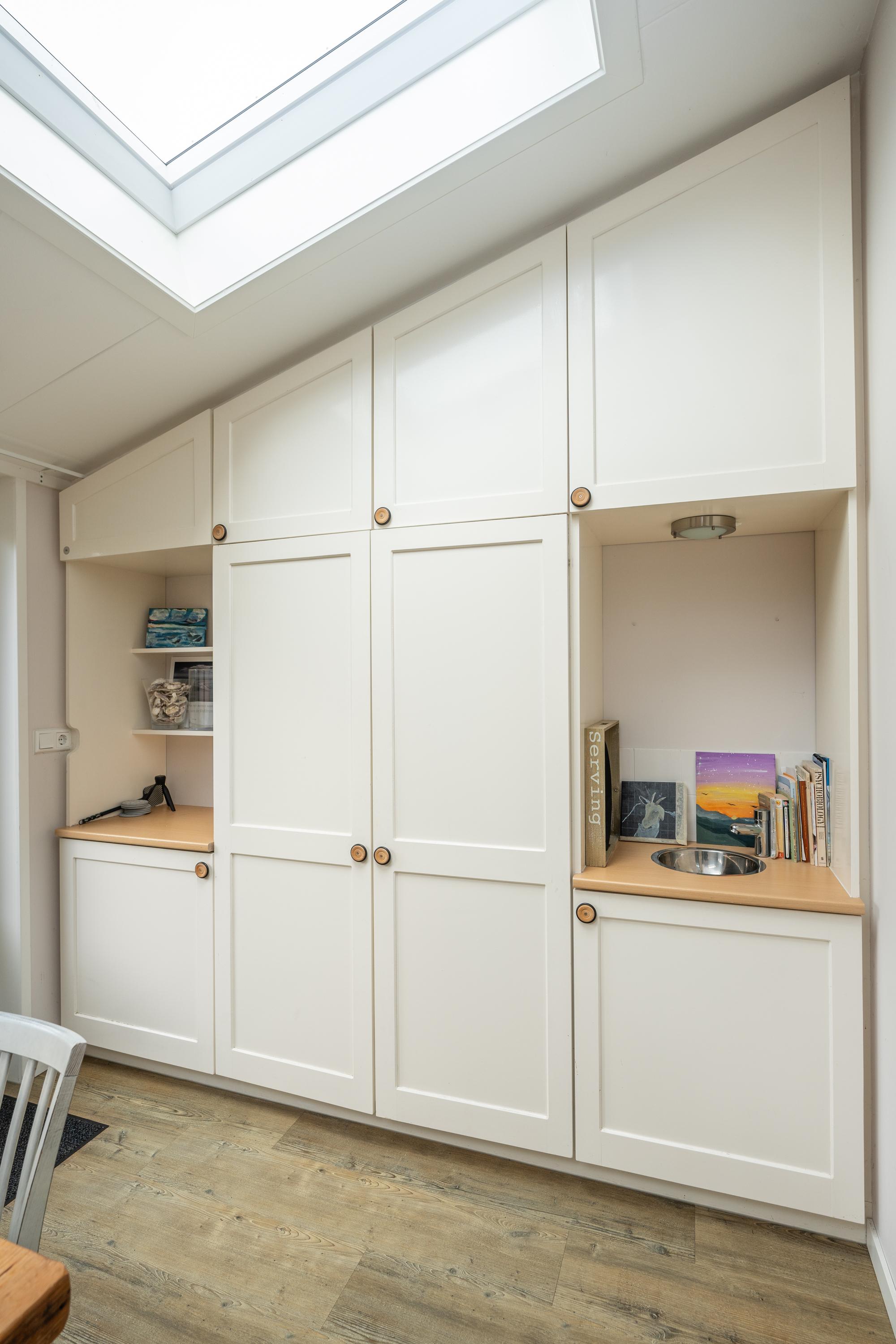 De bijkeuken is zowel via de serre als via de binnenhal met trapopgang en toilet bereikbaar. Hier bevindt zich de opstelplaats voor wasmachine en droger.