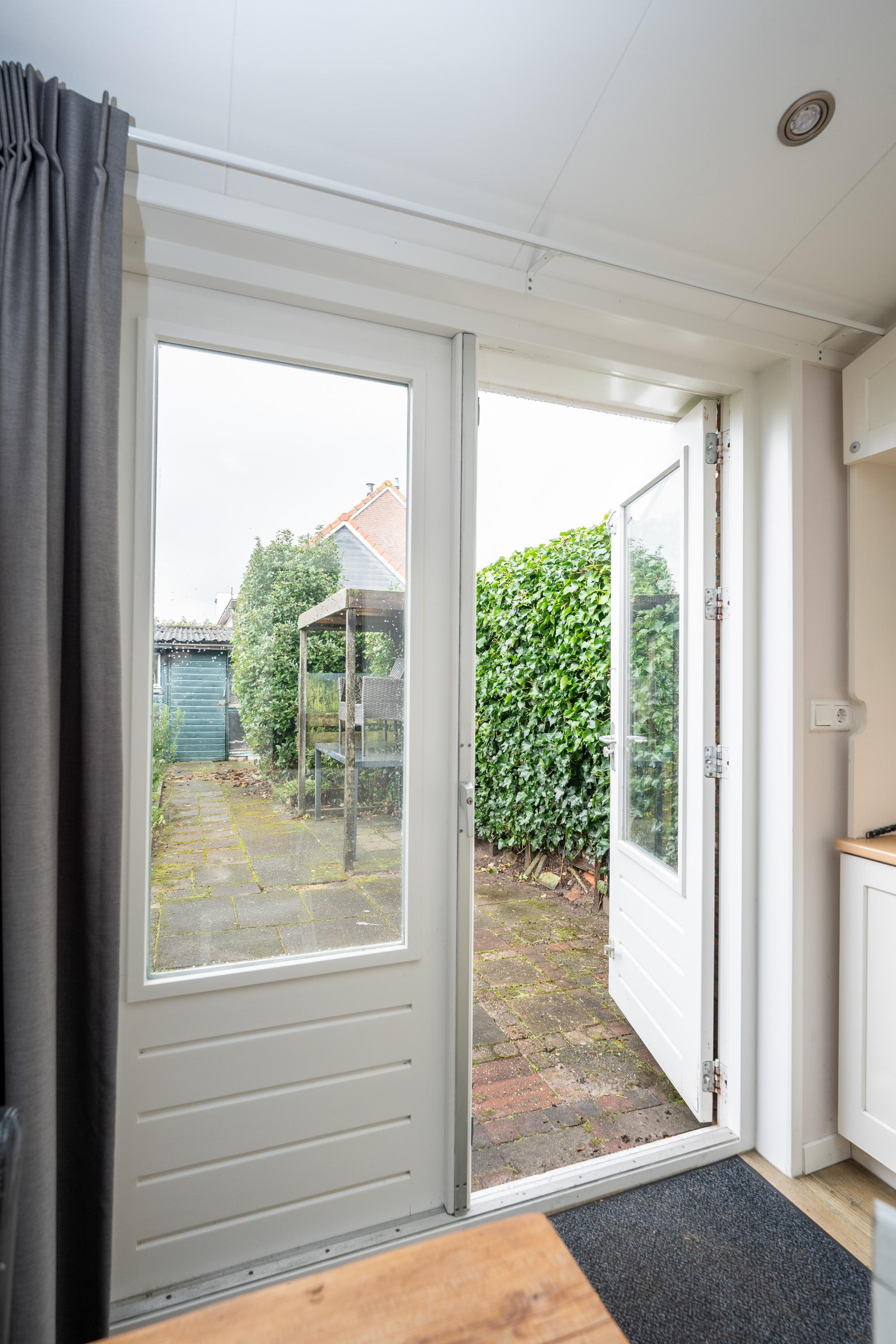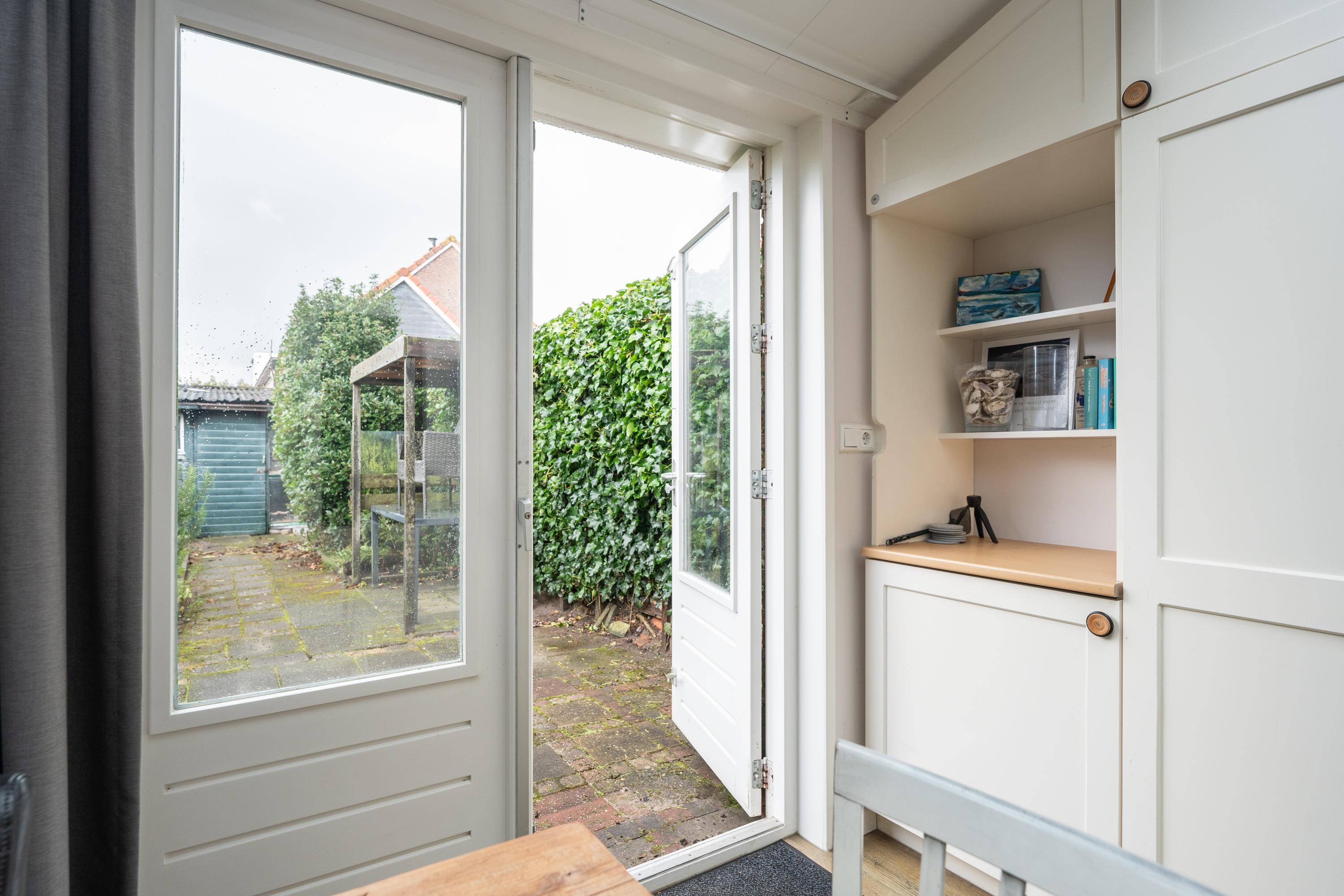 De schuur is ideaal voor al je gereedschap en tuinspullen. Via een poort is de woning ook achterom bereikbaar.