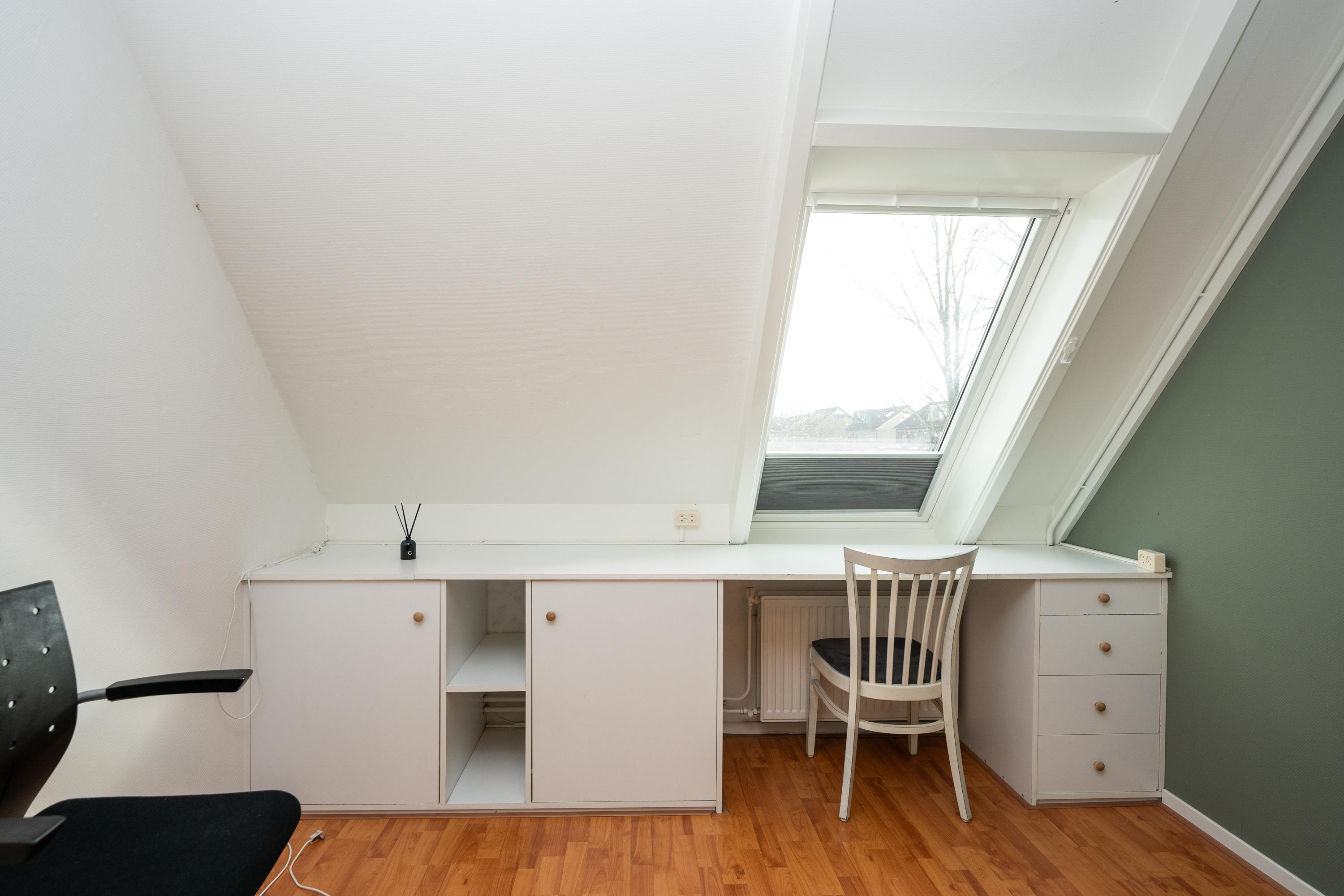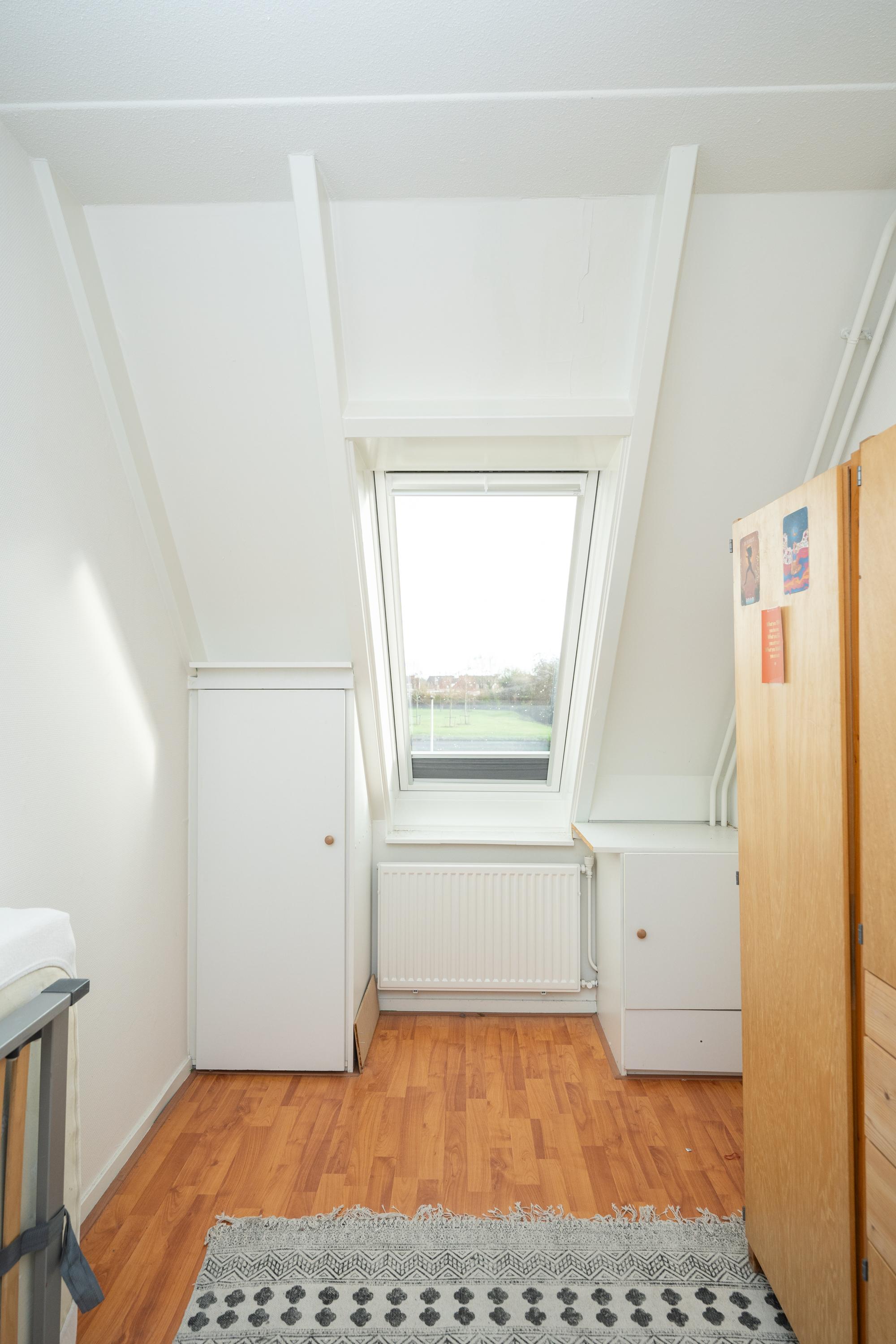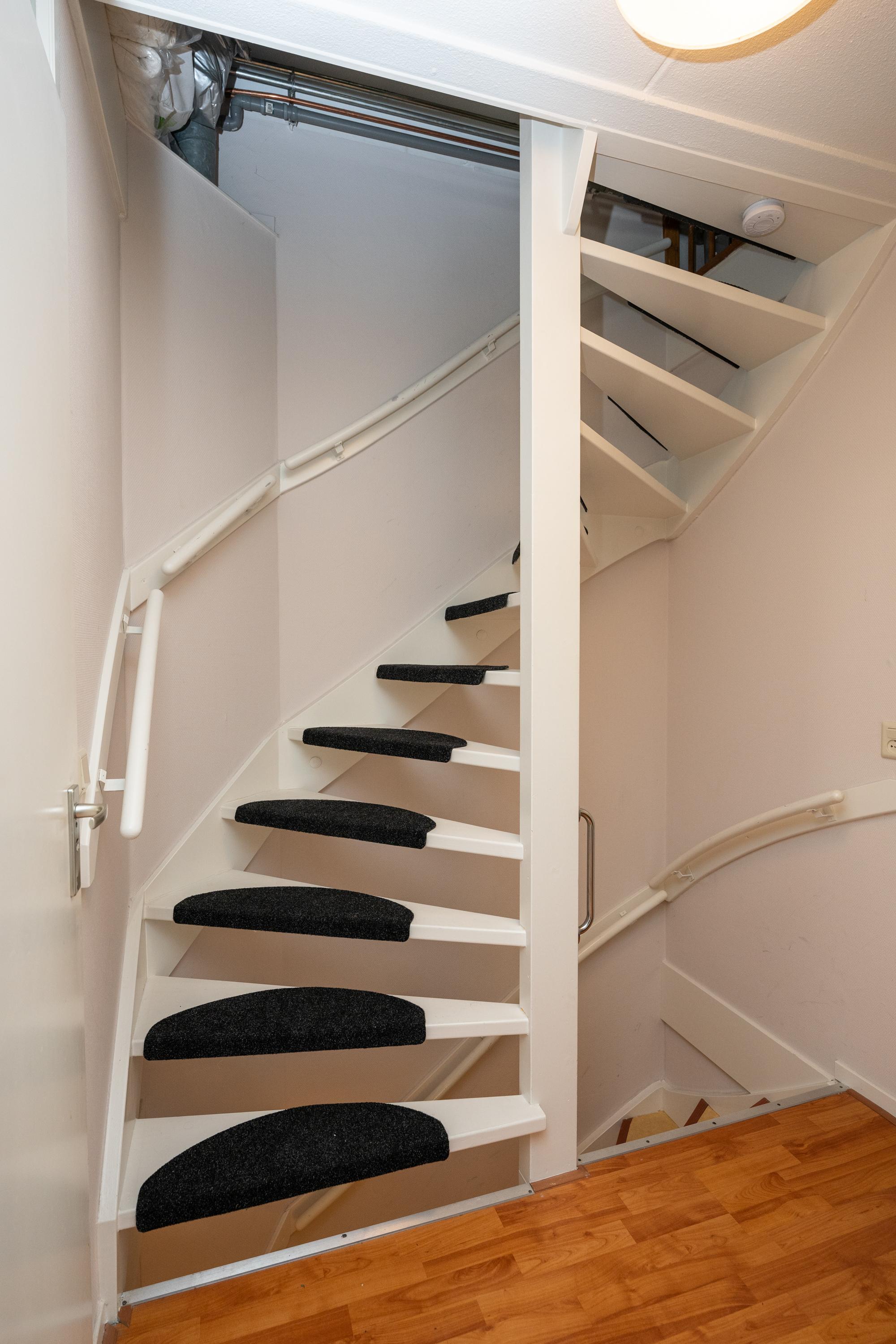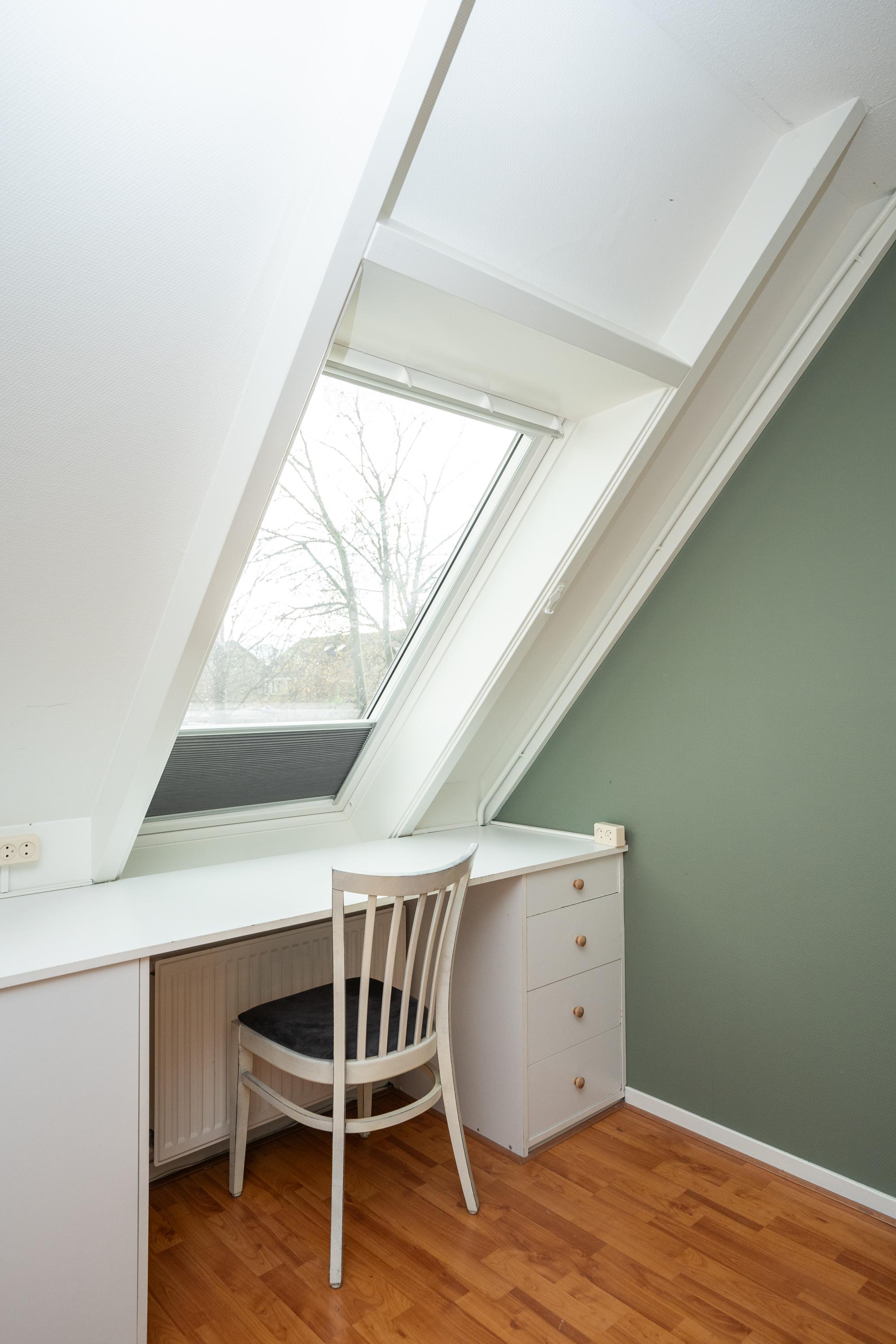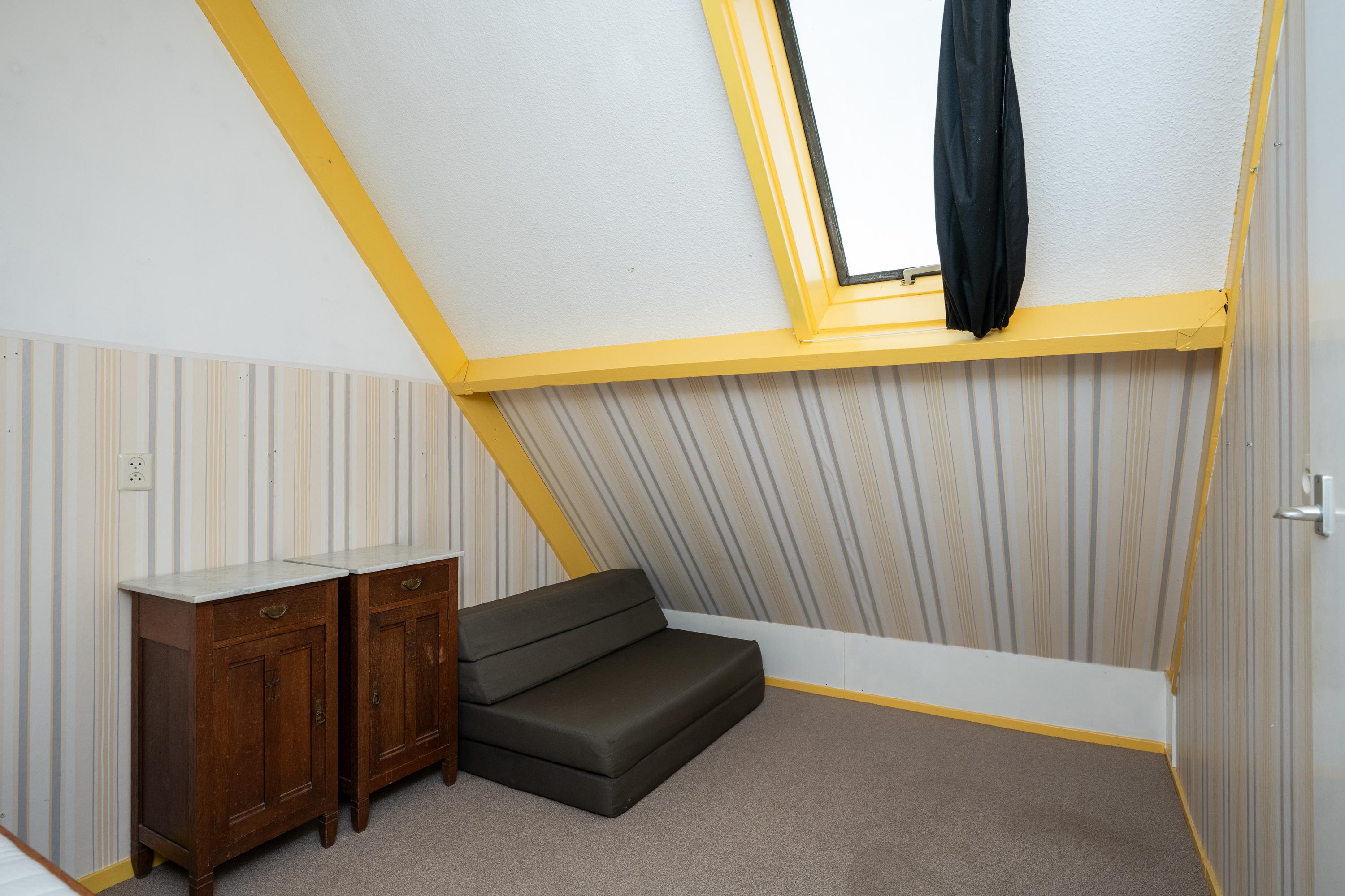 Via een vaste trap is de zolderverdieping bereikbaar. Deze is in tweeën verdeeld en biedt een kleine slaapkamer en opbergruimte.