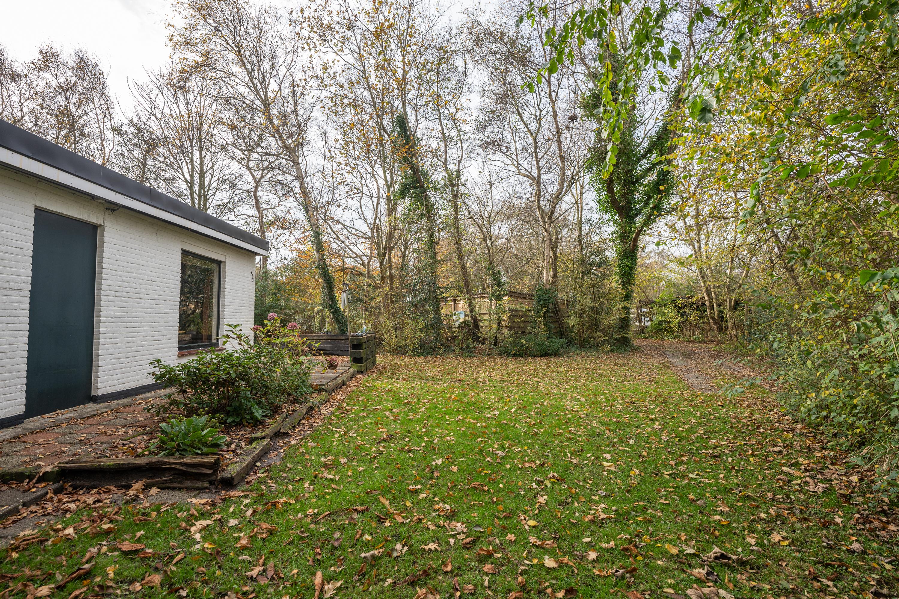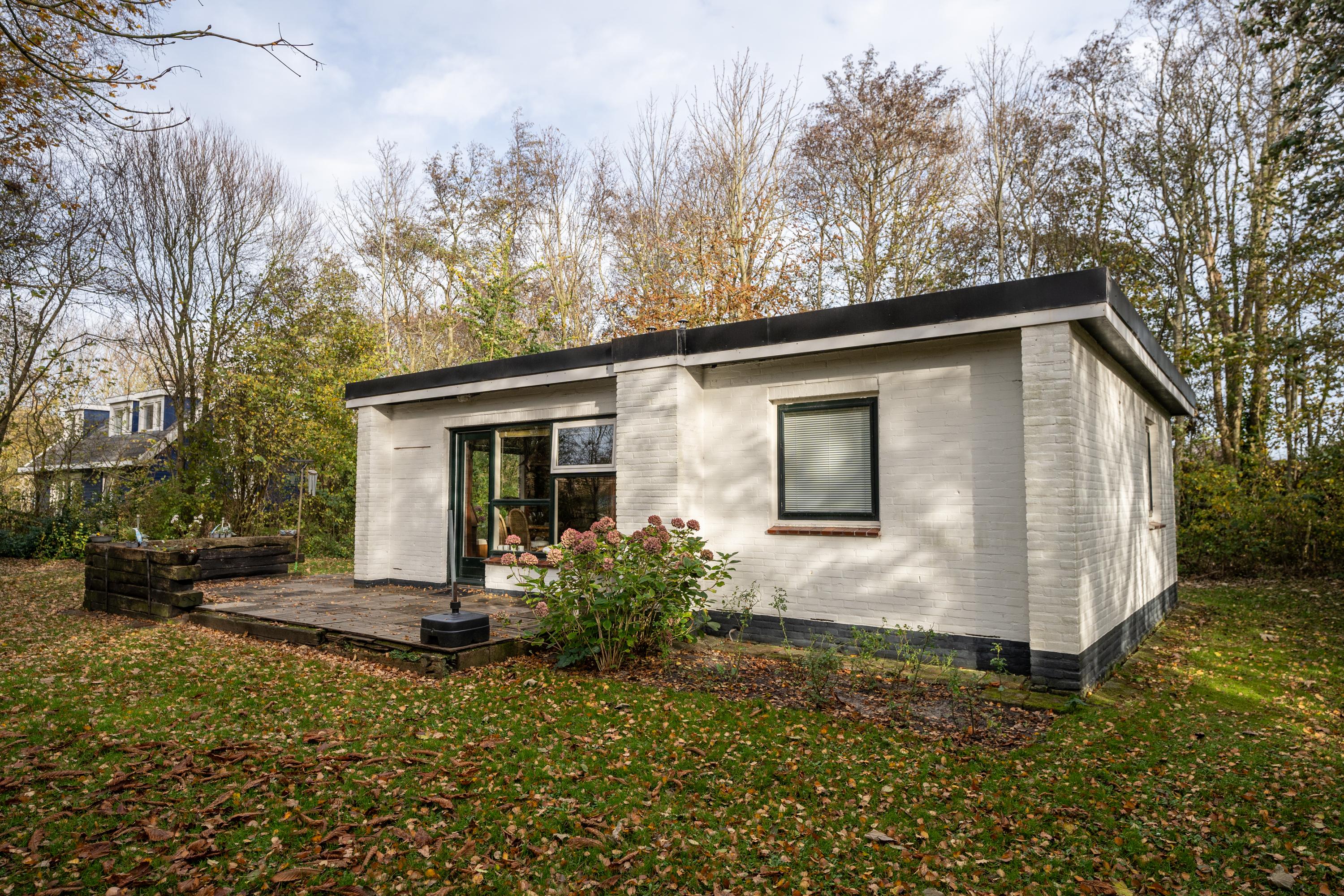 De recreatiewoning ligt heerlijk vrij, met rondom een natuurlijke beschutting van bomen en struiken voor optimale privacy.