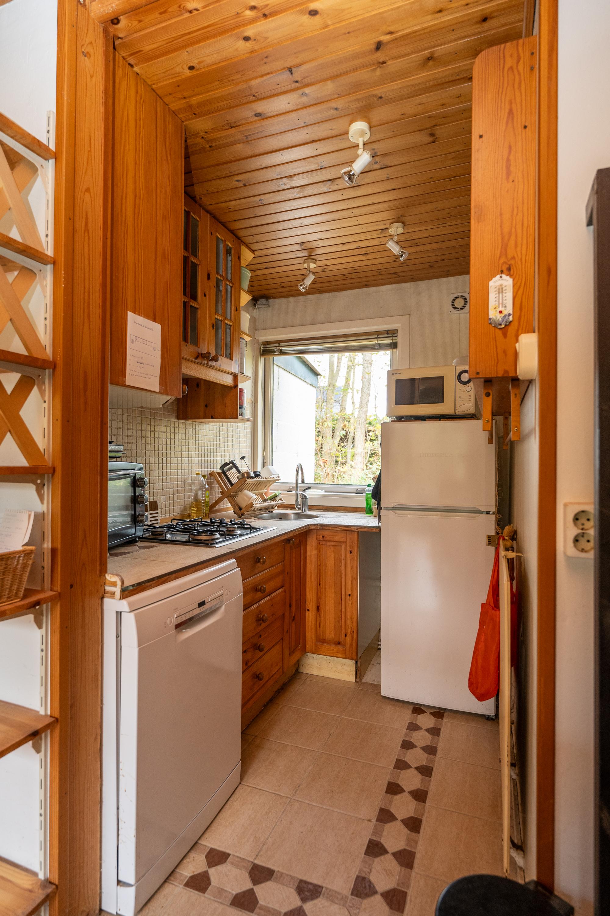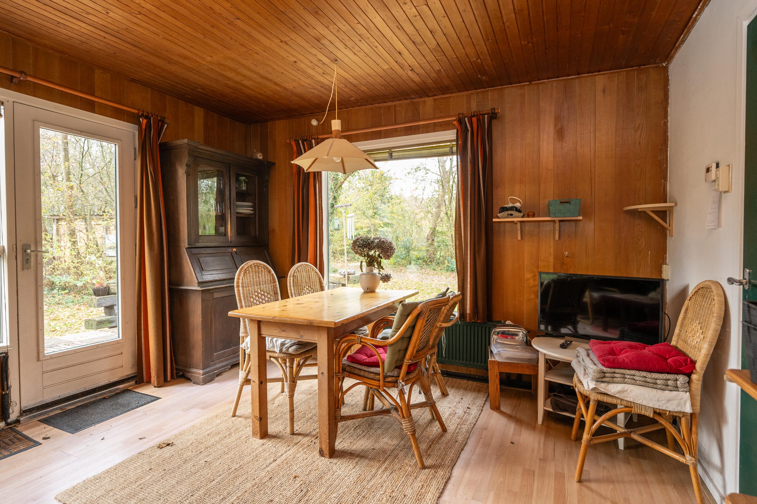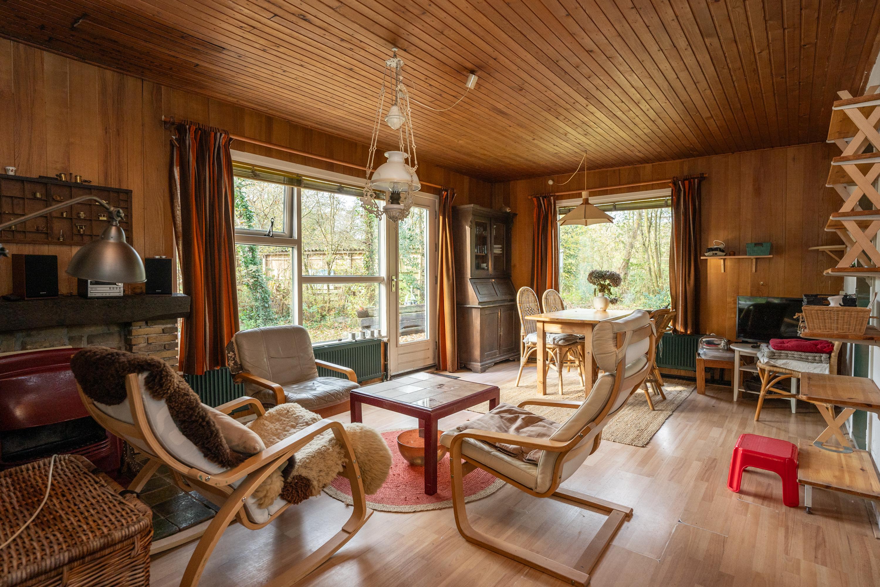 Via de entree stap je binnen in de woonkamer. Met wat zorg en een paar doordachte aanpassingen kan de woning moeiteloos worden aangepast aan de huidige normen en woonwensen om er weer een up-to-date recreatie woning van te maken.