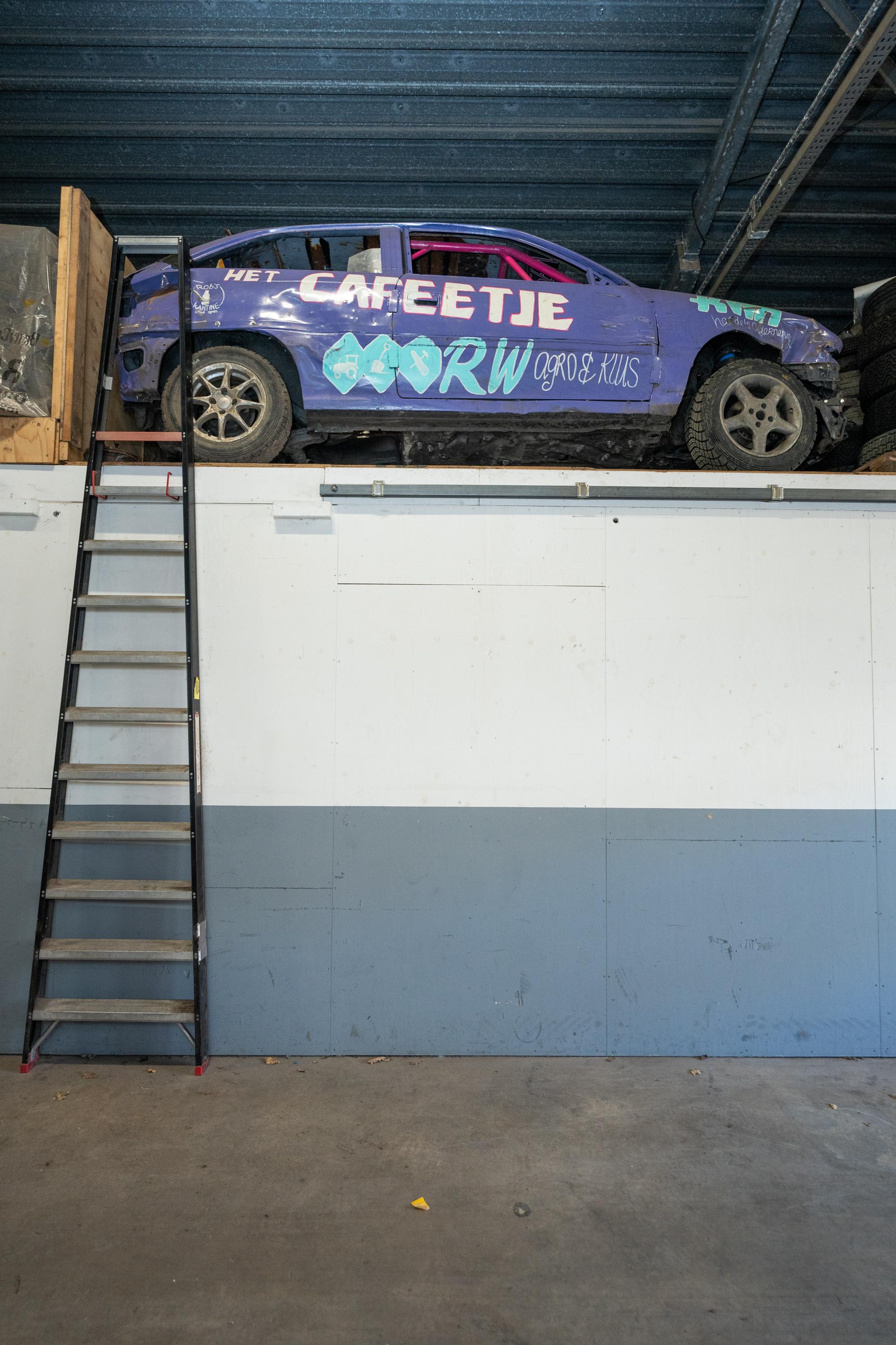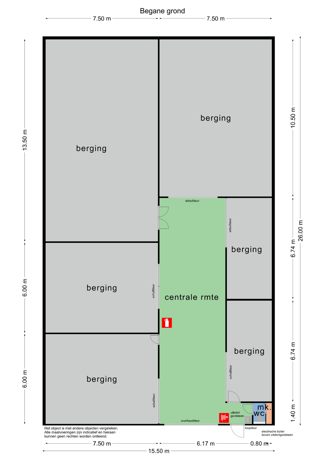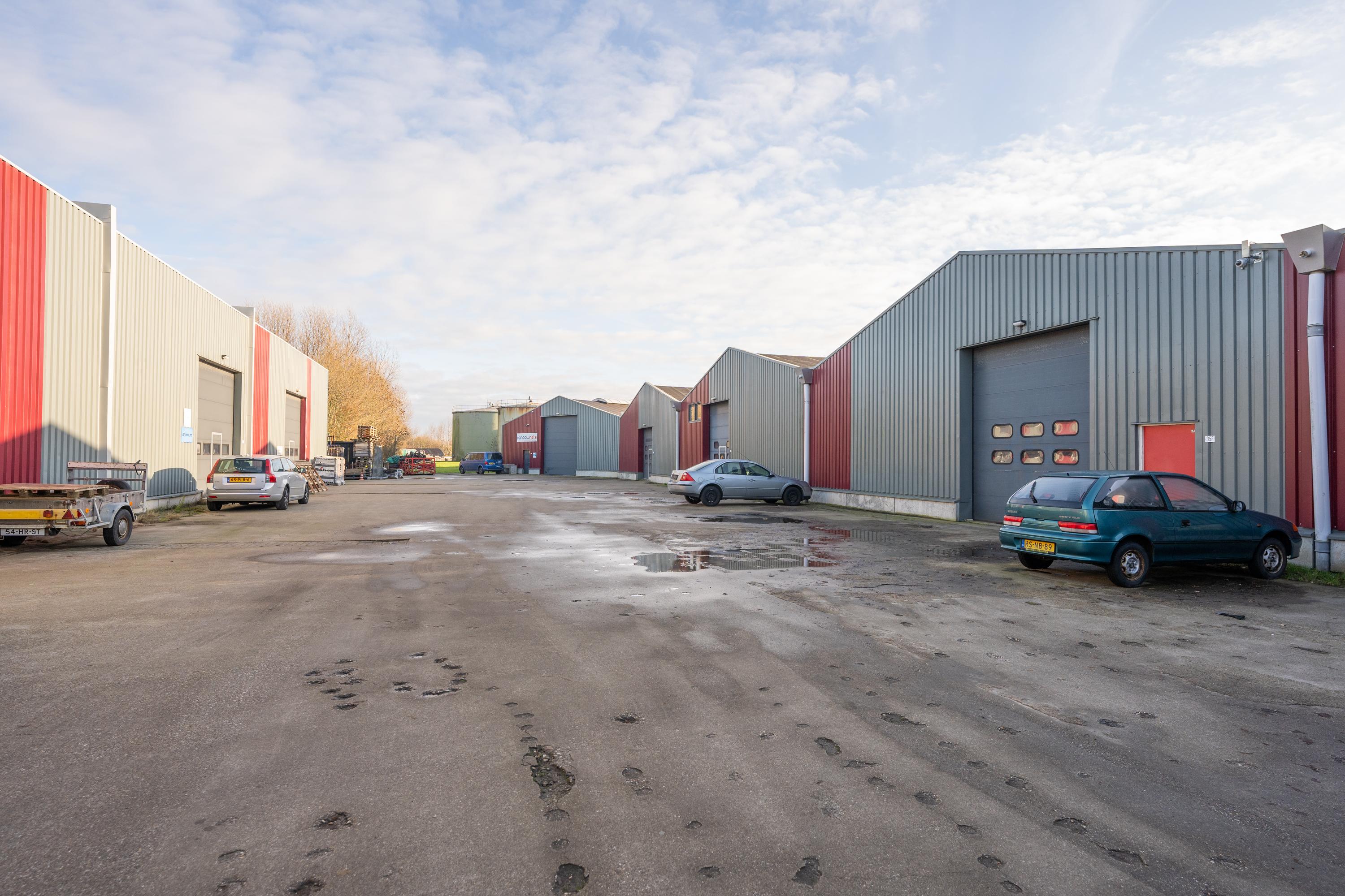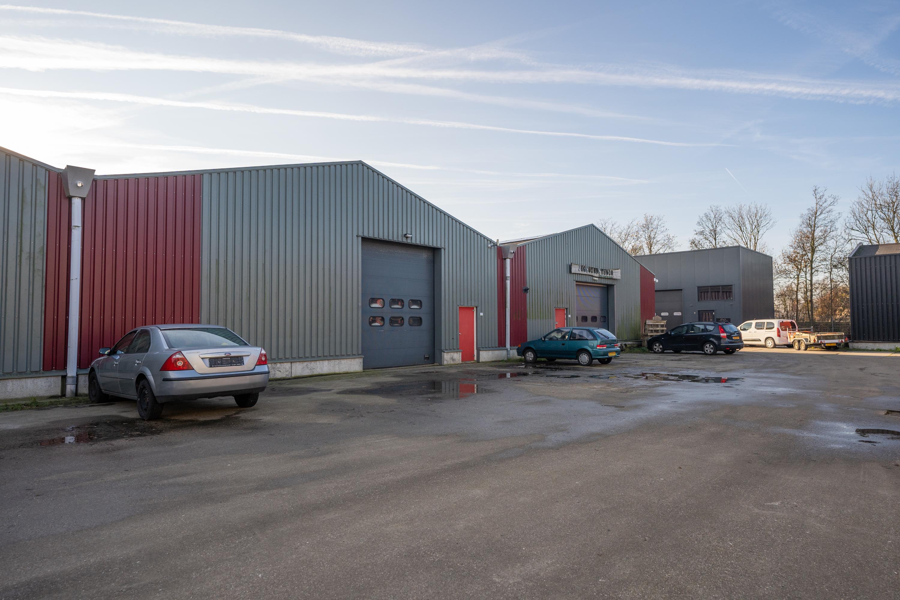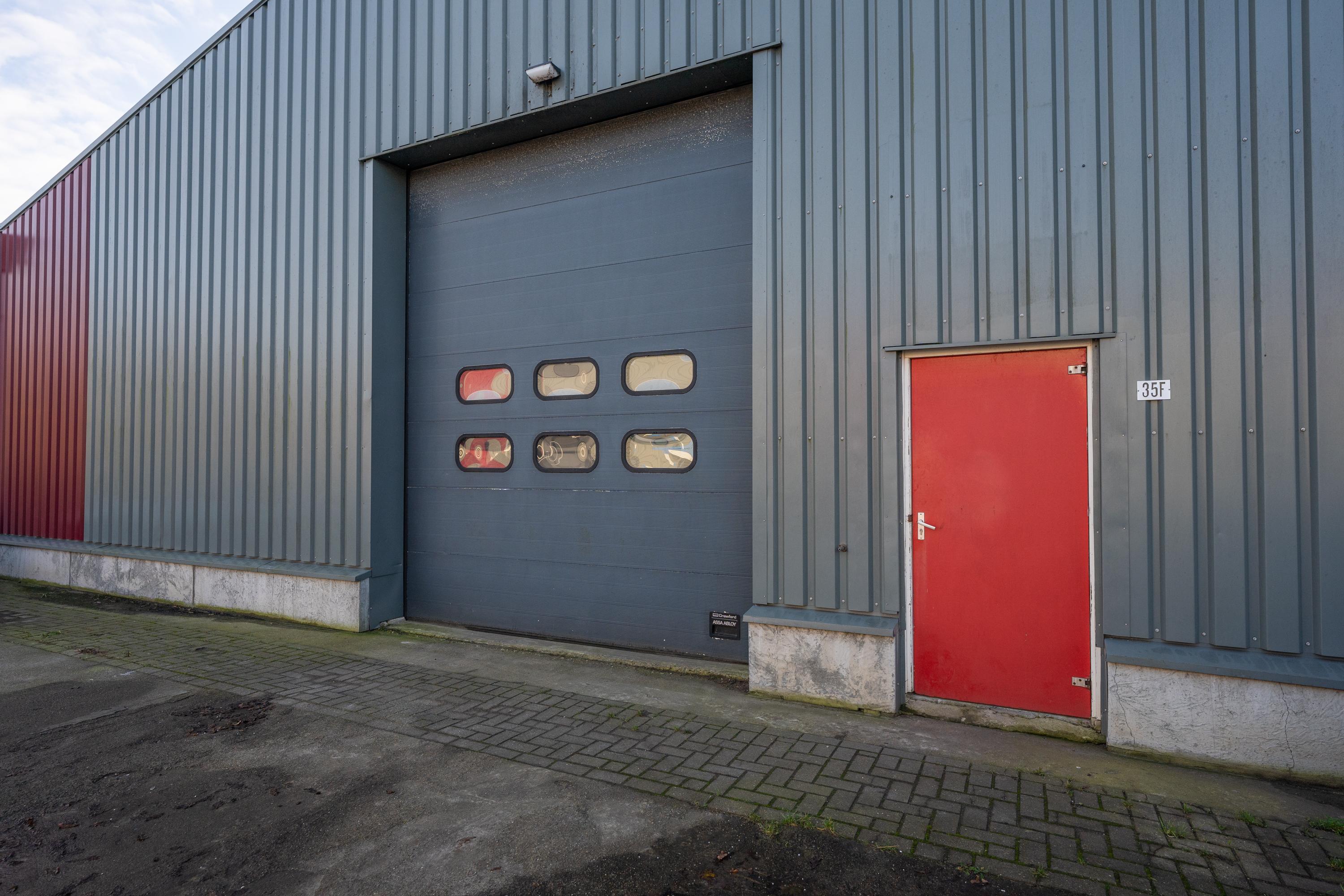 De brede roldeur en royale hoogte maken het object uitstekend geschikt voor opslag, werkplaats en stalling.