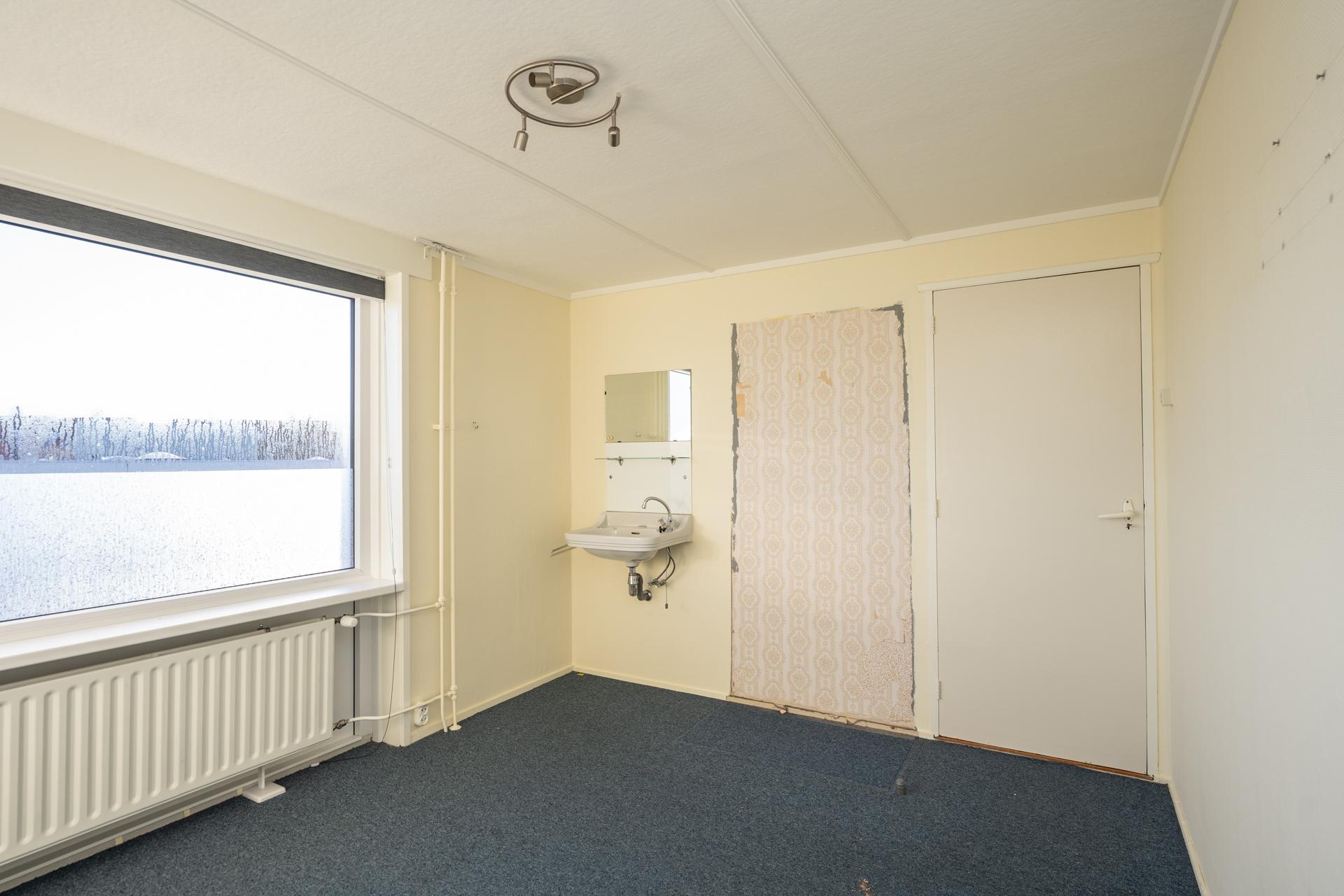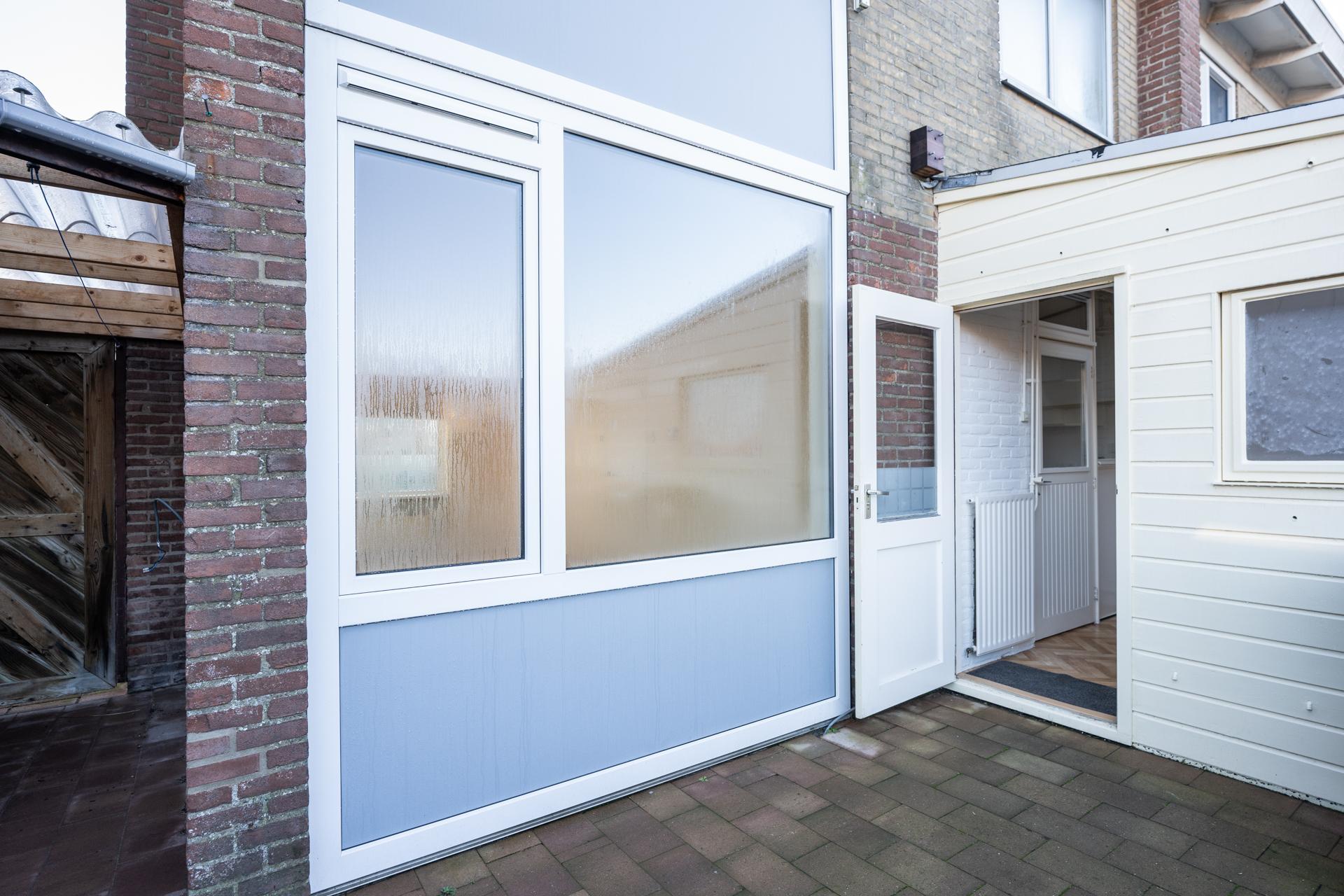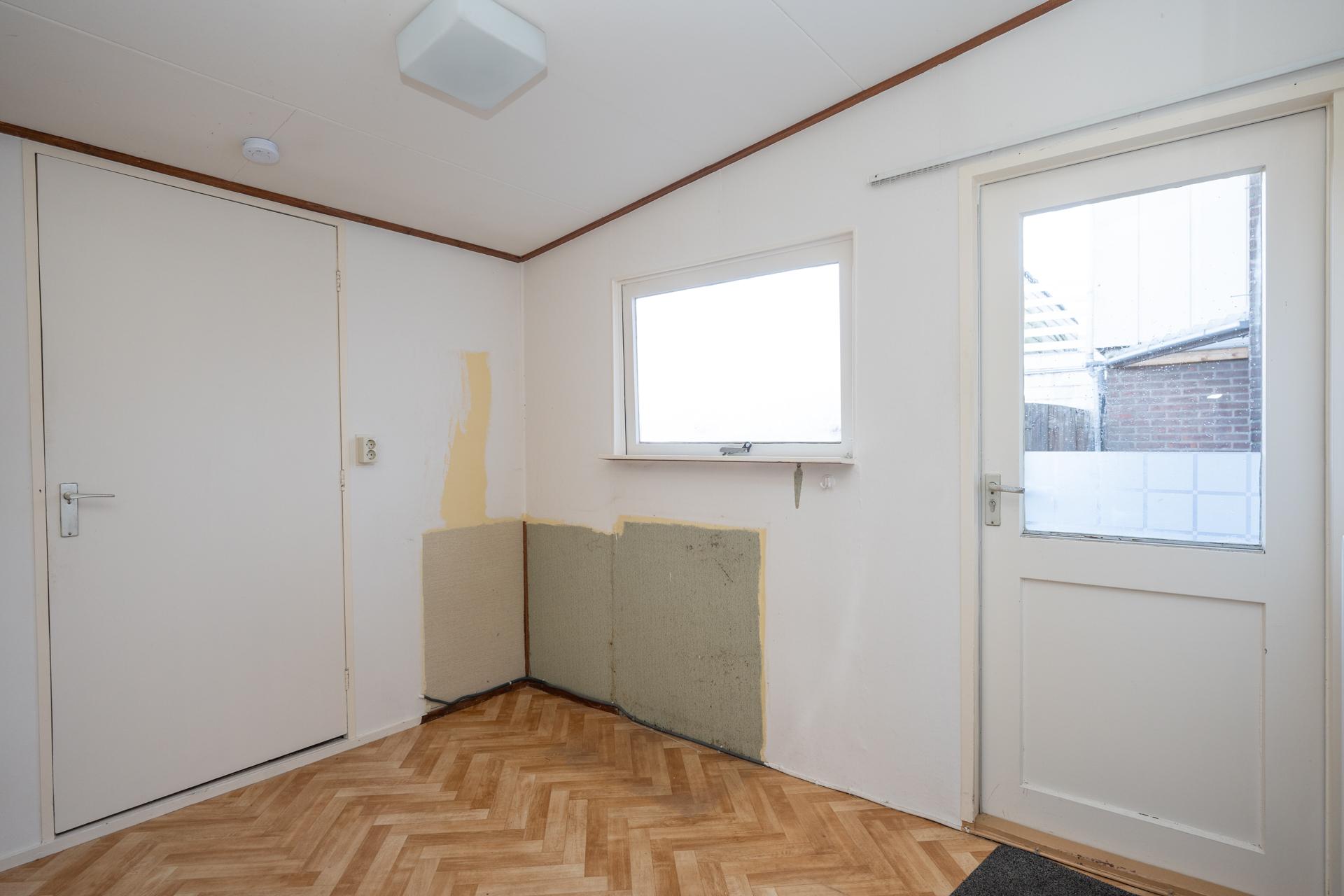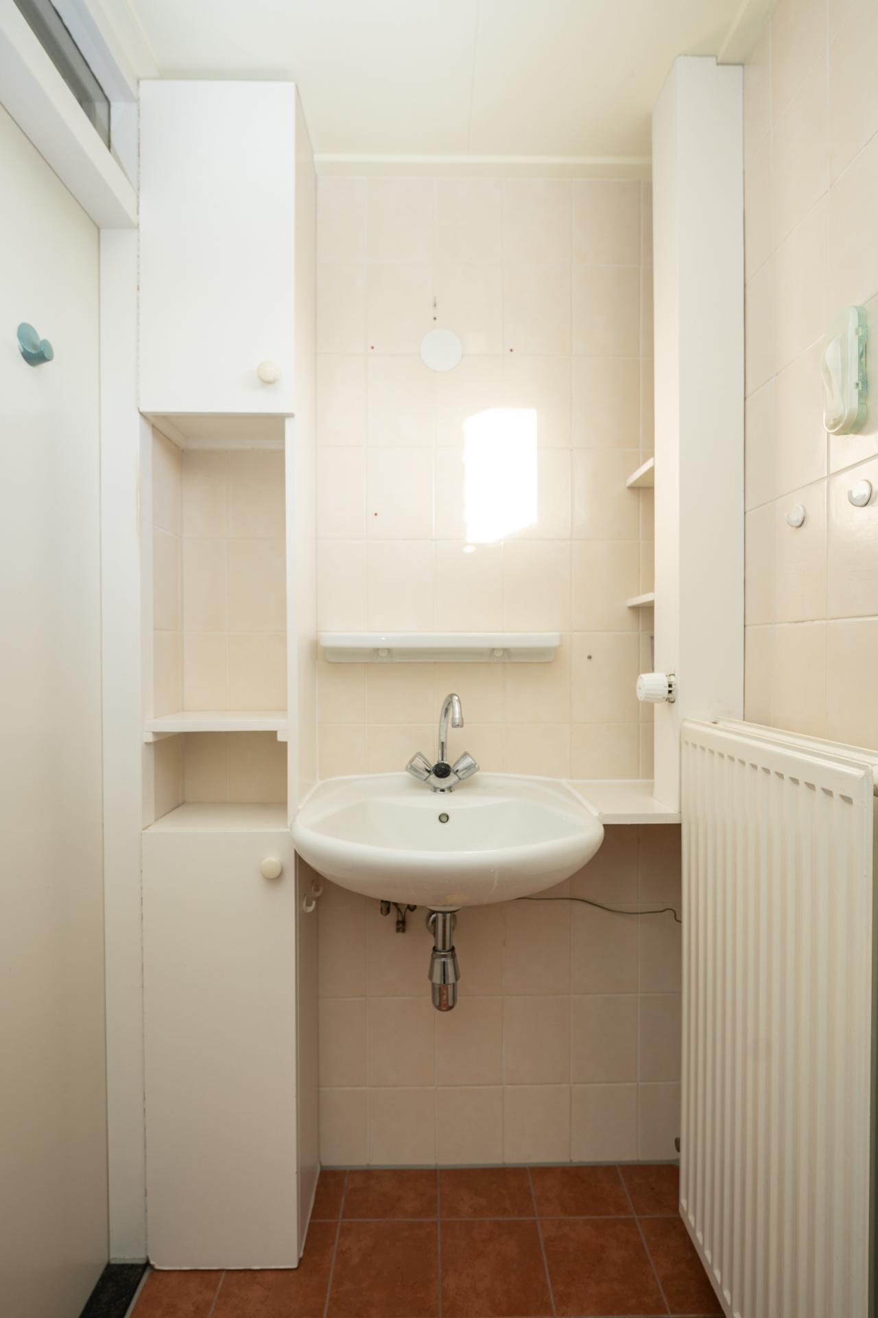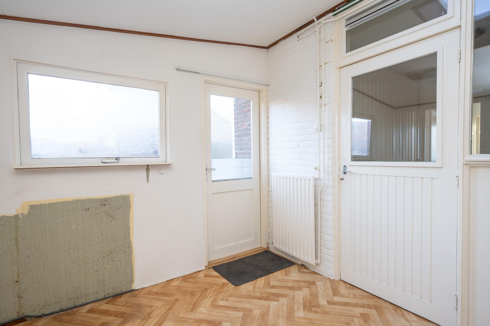 De aangebouwde bijkeuken is praktisch en licht door de aanwezige lichtkoepel. Vanuit de bijkeuken is er toegang tot de achtertuin en een doorloop naar de berging.