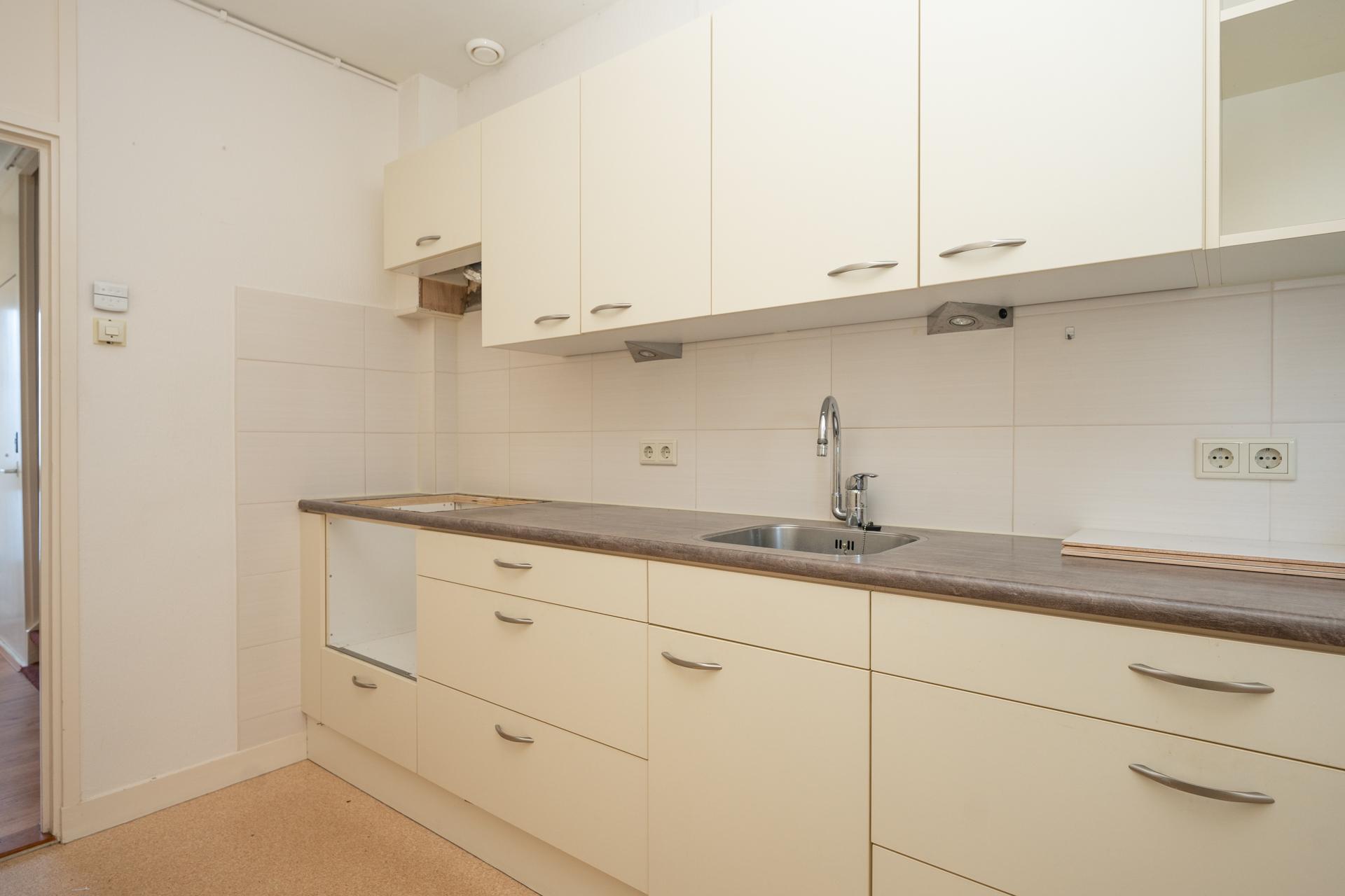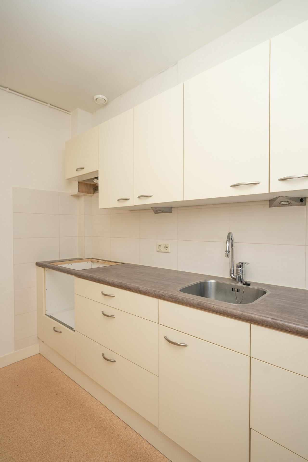 Indeling | Hal/entree met toegang tot de woonkamer, meterkast, kelderkast en vaste trap naar de verdieping. Aansluitend doorloop naar de gesloten keuken. De keuken is eenvoudig van opzet maar netjes onderhouden.