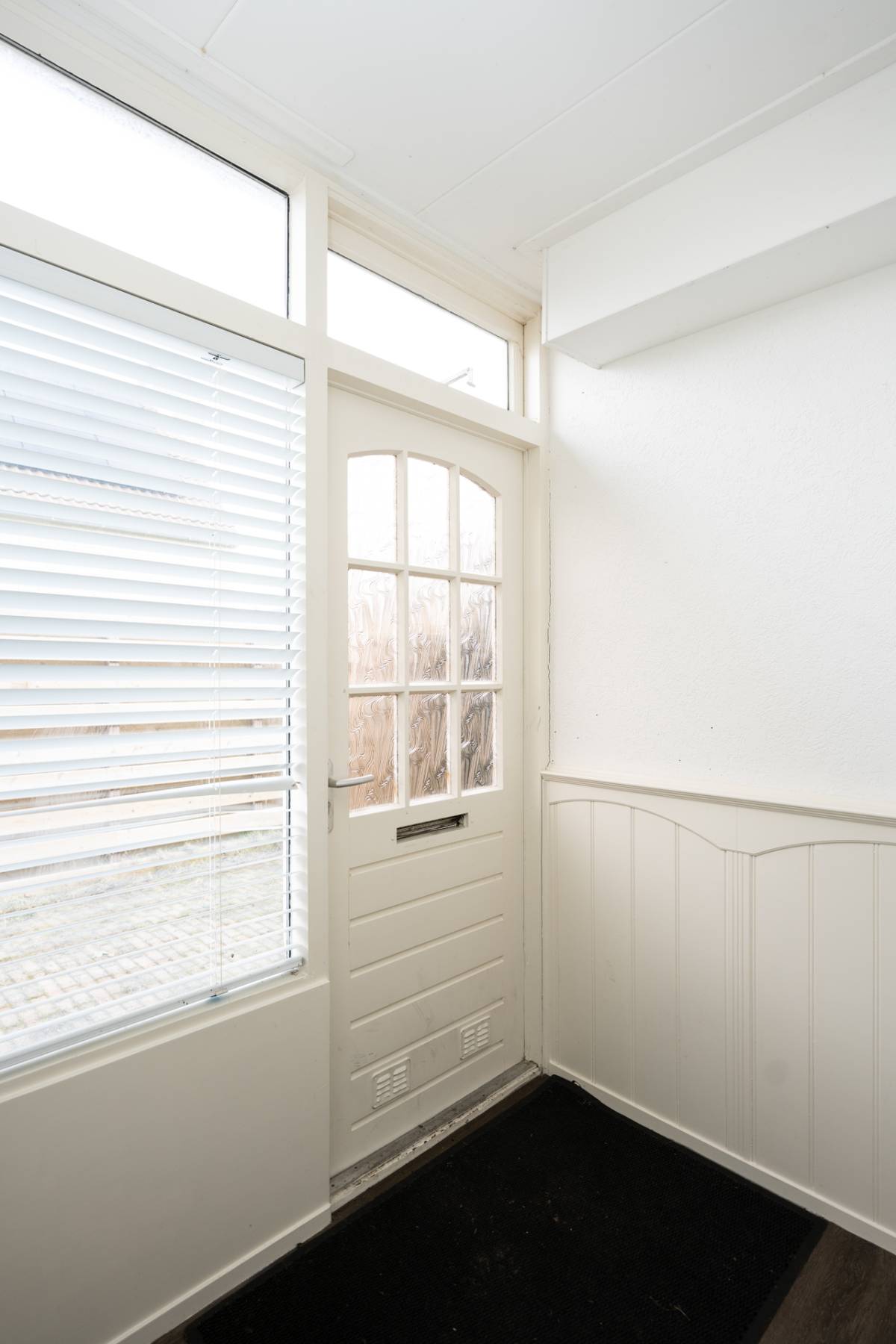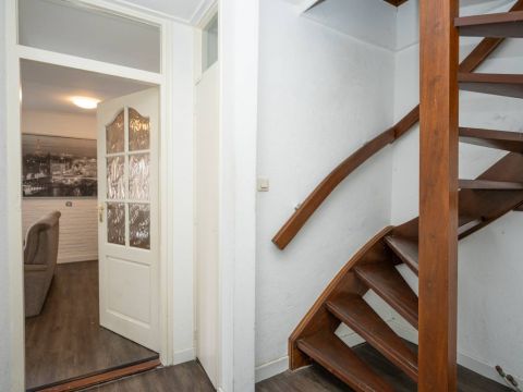 De hal biedt toegang tot meerdere vertrekken en de vaste trap naar de verdieping.