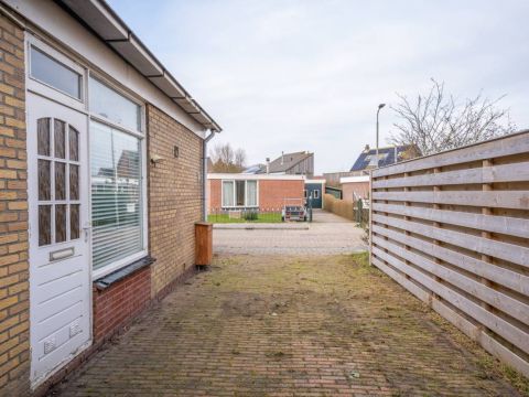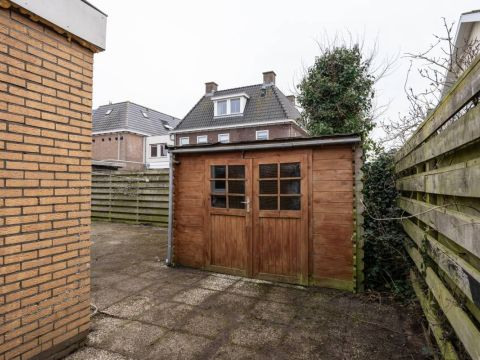 Parkeren op eigen erf is voor 2 auto’s ruim mogelijk. De achterzijde van de woning is via een steeg te bereiken. Hier treft u een terras aan met een houten opbergschuurtje.