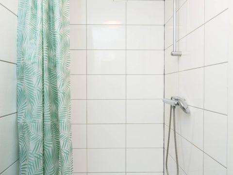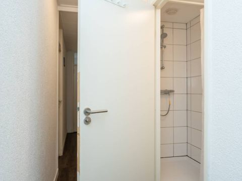 In de hal is een aparte doucheruimte, toilet en toegang tot een woonkamer met pantry en 2 kleine slaapkamers.