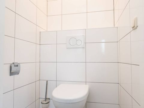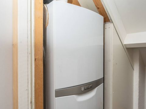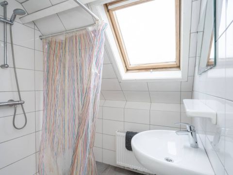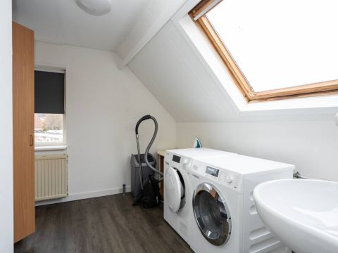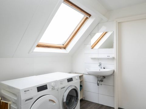 De wasruimte beschikt over een groot dakraam. Hier bevindt zich de opstelplaats voor zowel de wasmachine als de droger. Daarnaast is de ruimte voorzien van een wastafel.