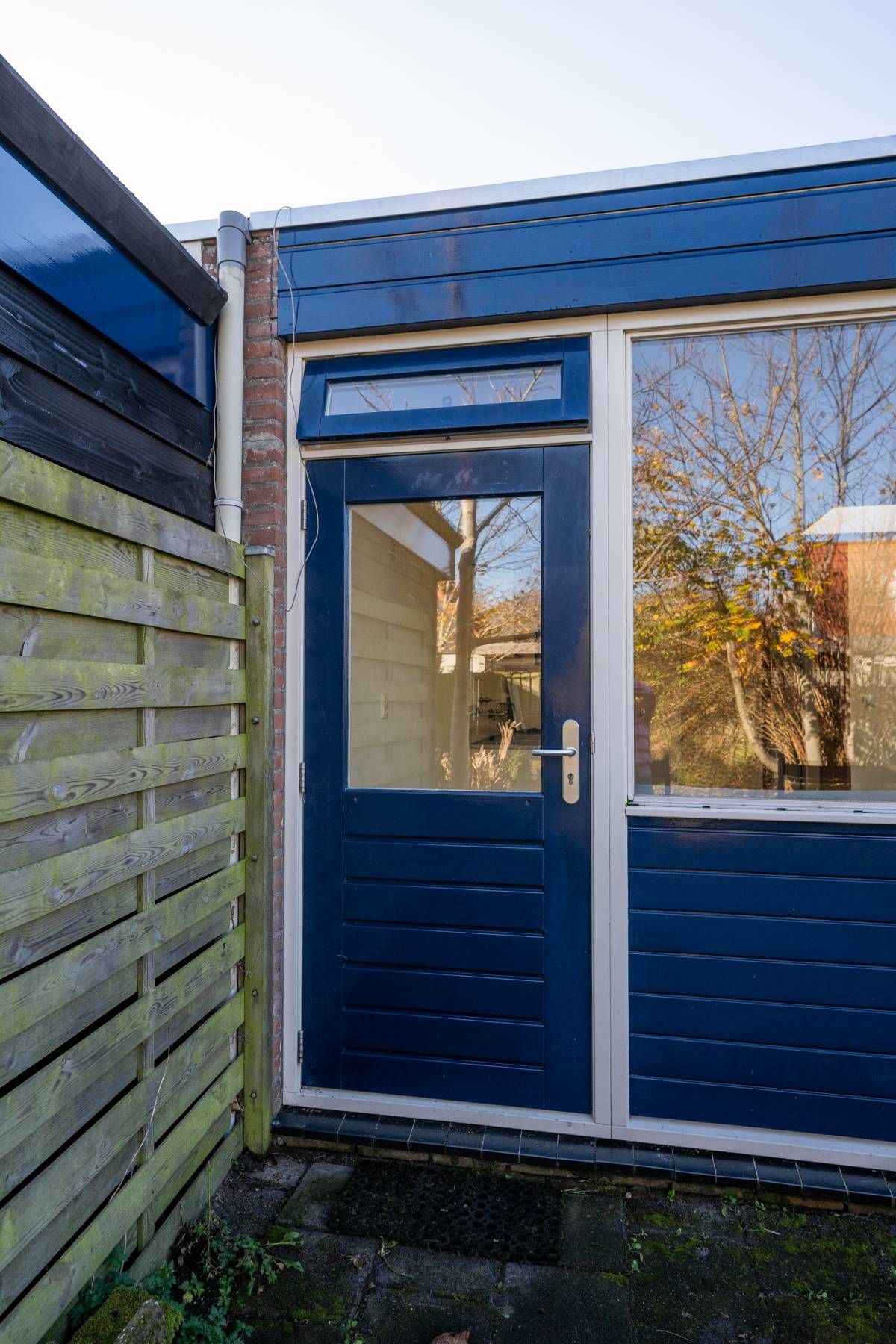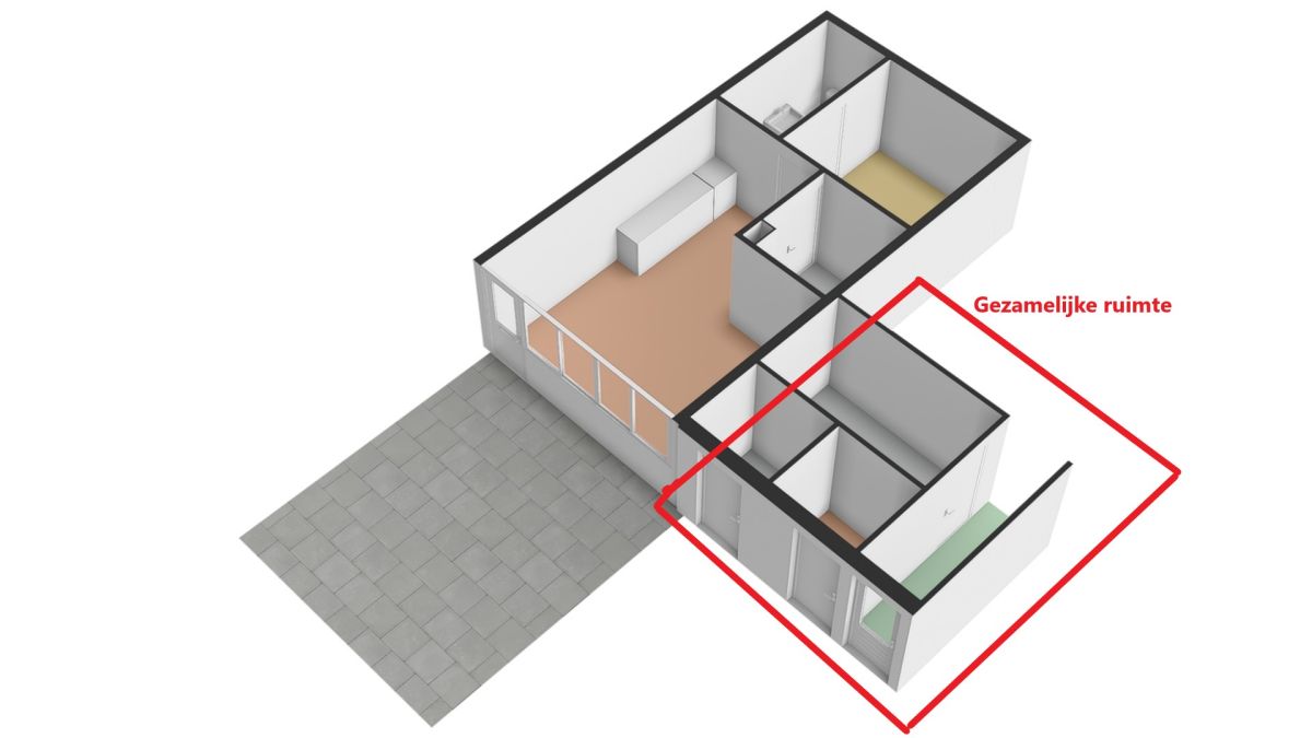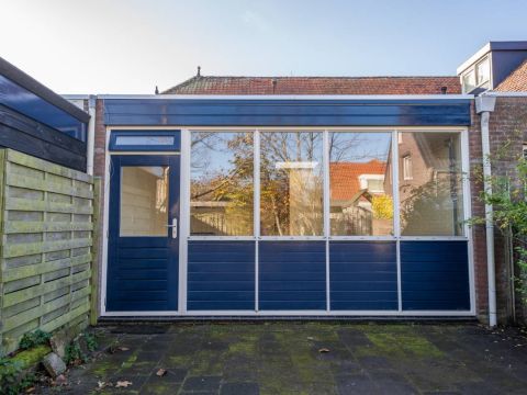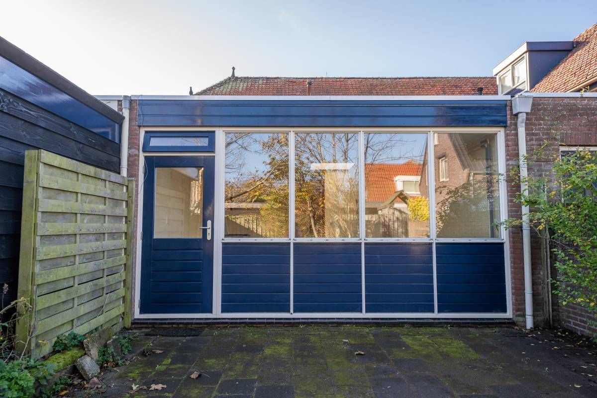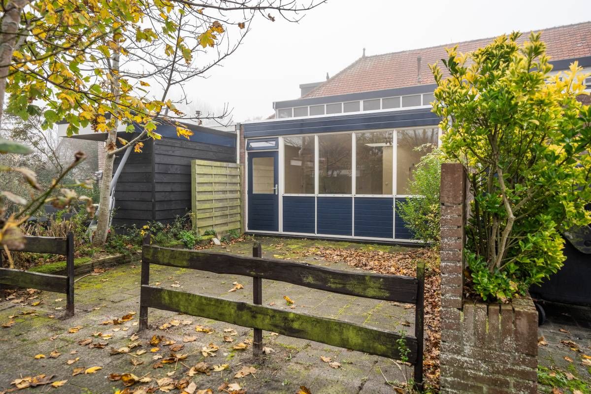 Via de openslaande deur is de bestraatte tuin bereikbaar. Parkeren kan op het gezamenlijke parkeerterrein.