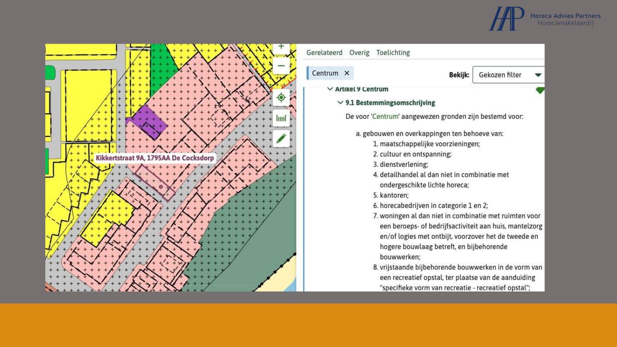 Wet milieubeheer: De melding in het kader van de AMvB Horecabedrijven is gedaan. De inrichting valt onder de werking van het nieuwe Besluit Horeca, Recreatie en Sport.