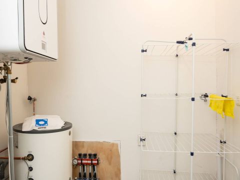 In de technische ruimte bevinden zich de warmtepomp en warmwaterboiler. De gehele studio is voorzien van vloerverwarming, comfortabel en energiezuinig.