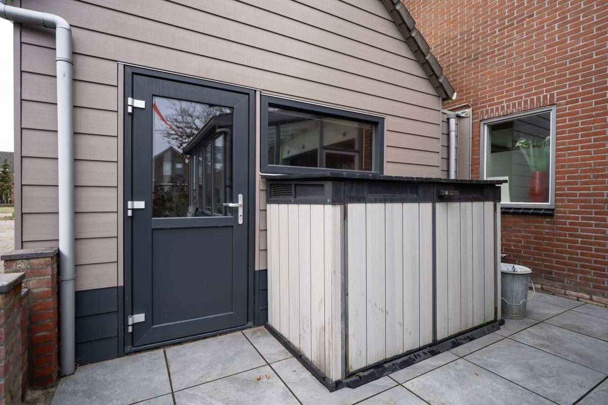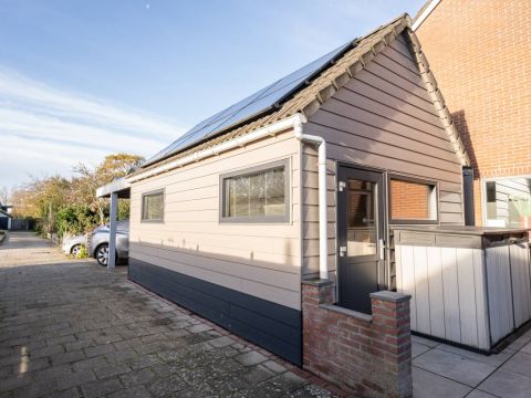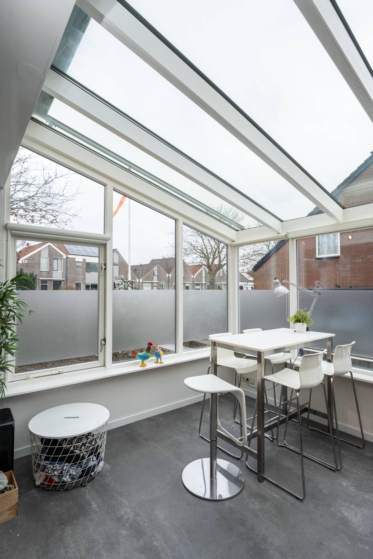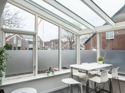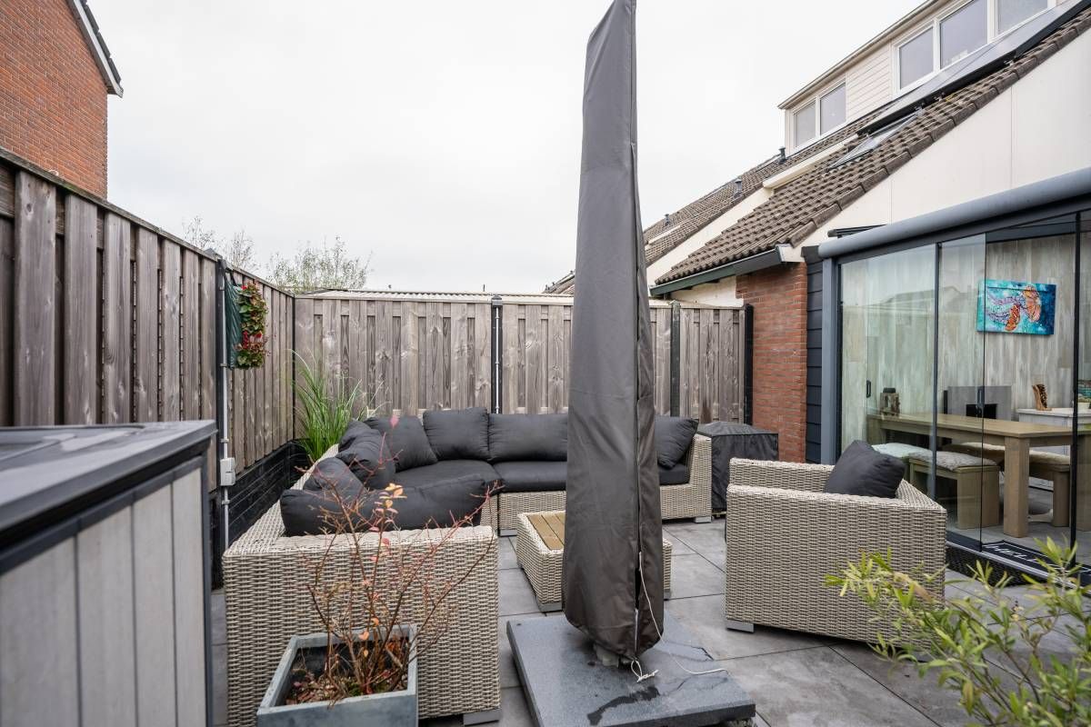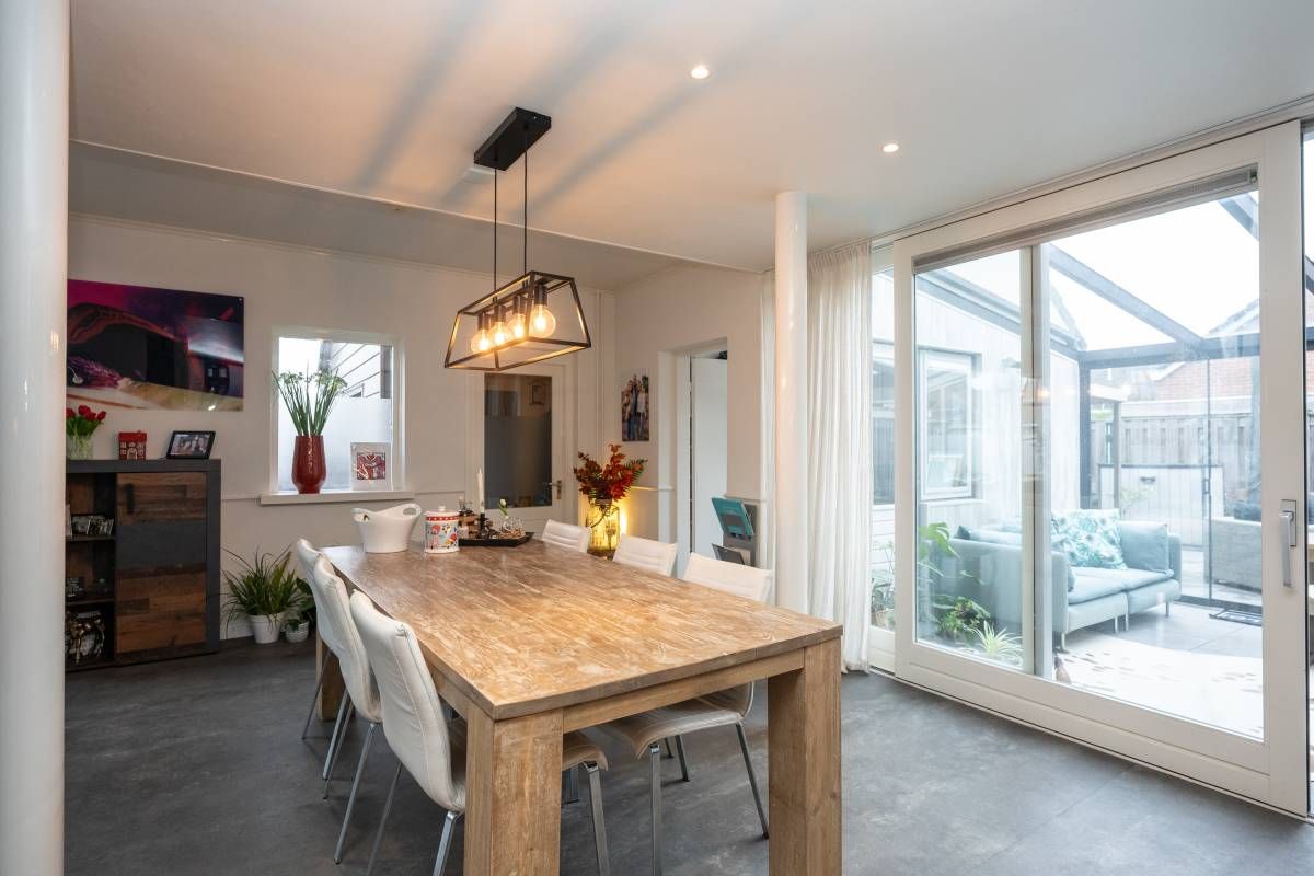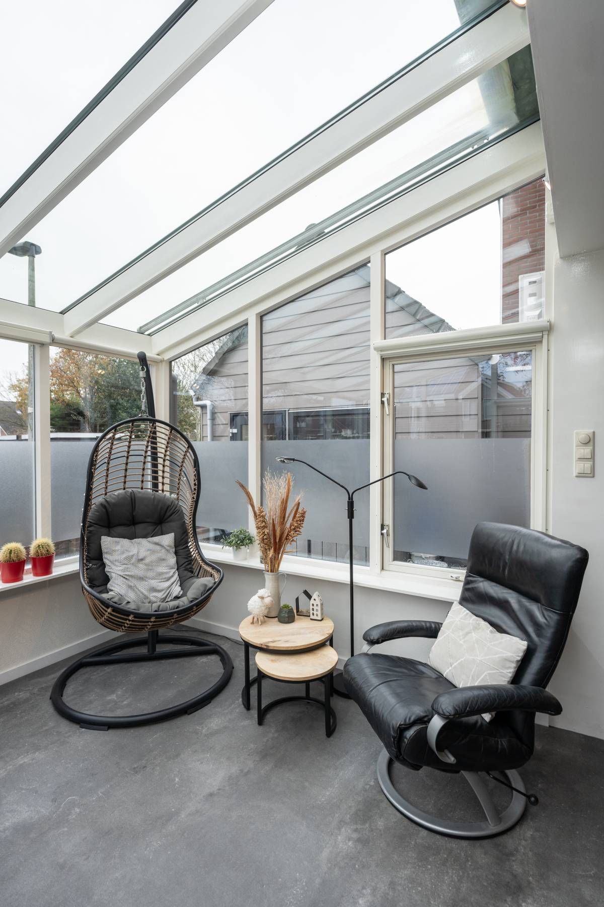 Bovendien is er een charmante overkapping aanwezig, waardoor je ook met minder weer comfortabel buiten kunt zitten. De glazen schuifpui geeft toegang tot de besloten, onderhoudsvriendelijke tuin waar je in alle rust kunt ontspannen.