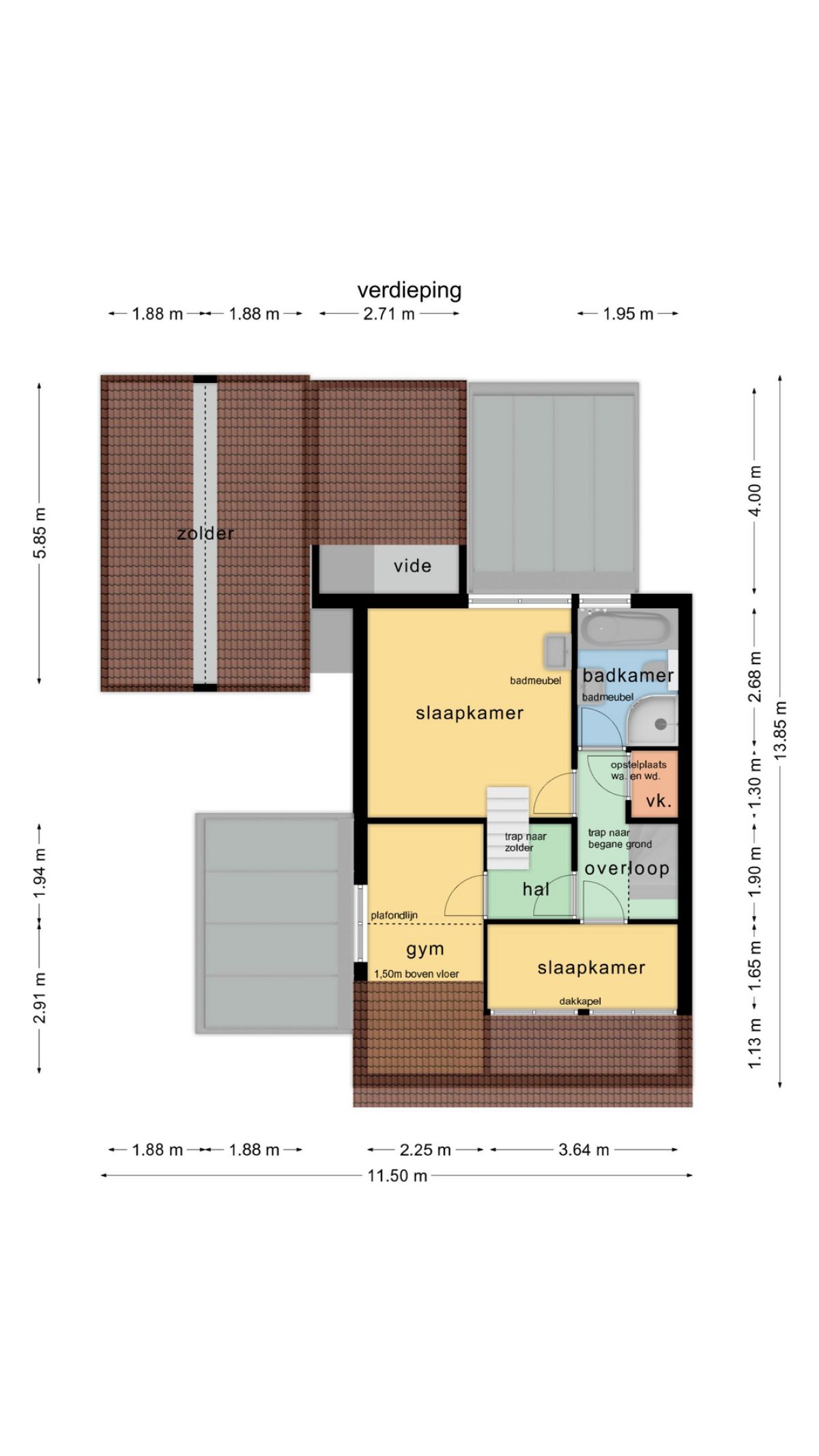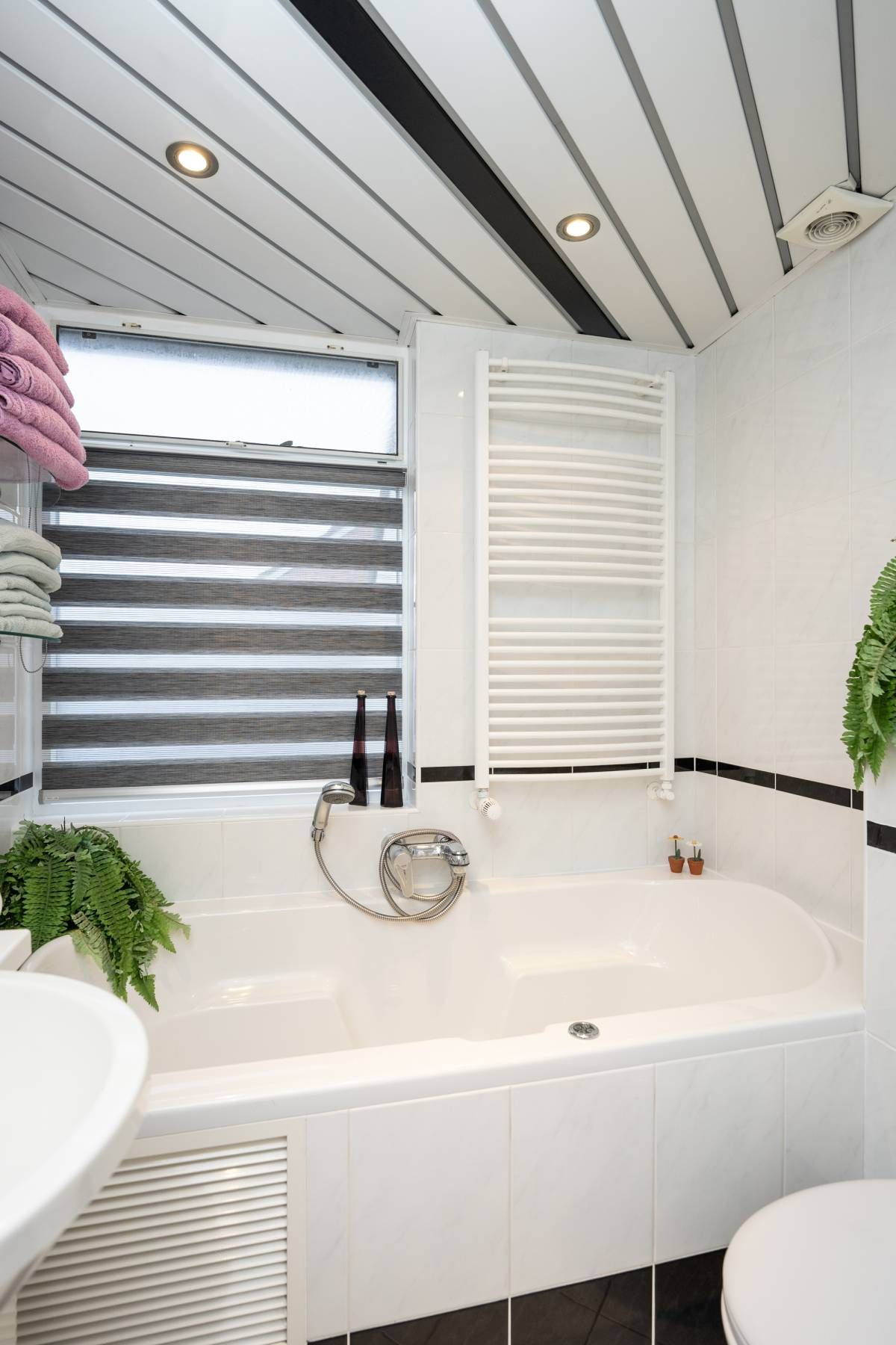 Op de eerste verdieping bevinden zich een ruime overloop, drie prettige slaapkamers en een nette, complete badkamer. De was- en droogruimte is separaat toegankelijk vanaf de overloop, wat zorgt voor extra gemak in het dagelijks gebruik.