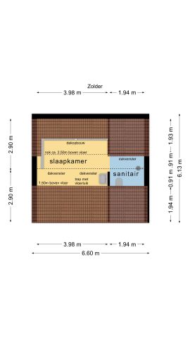 2e verdieping/zolder | Overloop, Slaapkamer |