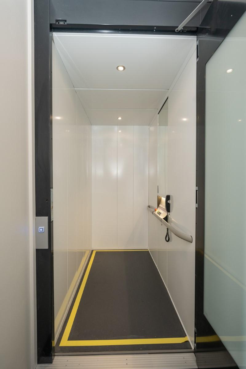 De voordeur bevindt zich aan de linkerkant van het complex. Via de trap komt u in uw appartement, en er is uiteraard ook een lift aanwezig in het gebouw.