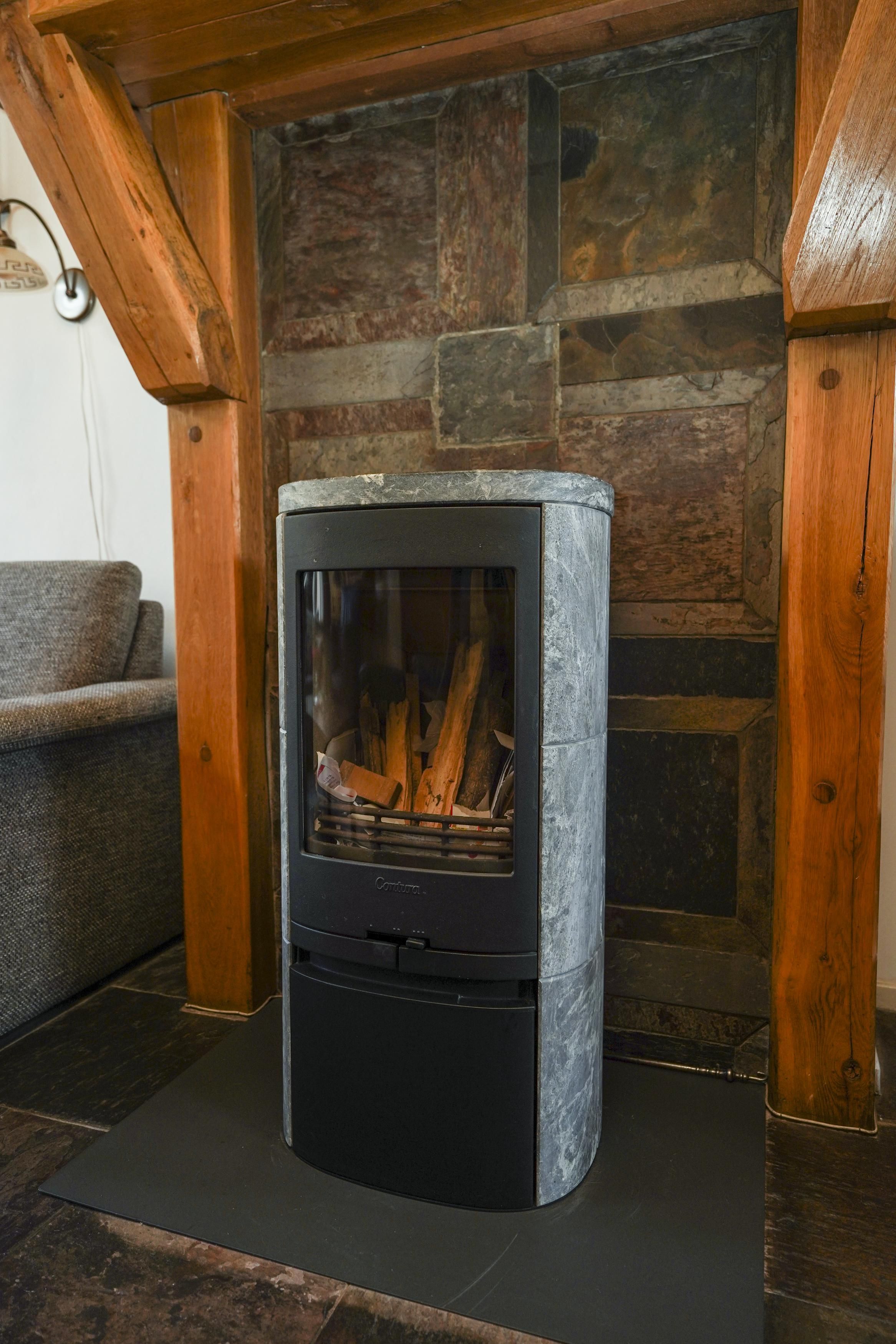 Indeling: Sfeervolle hal/entree met statige trapopgang, modern vrij hangend toilet, een gezellige woonkamer voorzien van knusse houtkachel. Via de hal ook toegang tot de badkamer voorzien van ligbad, douche en wastafel.