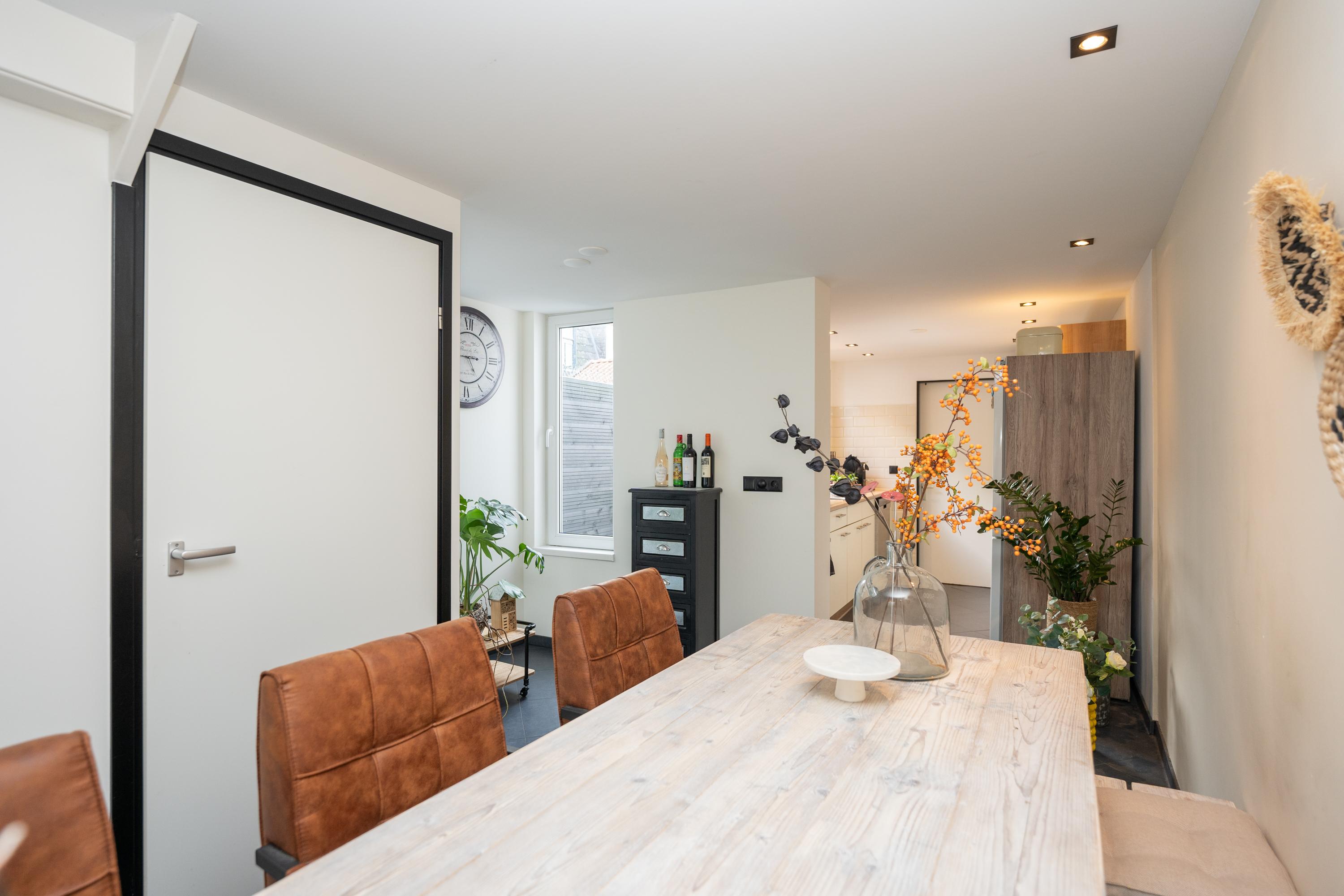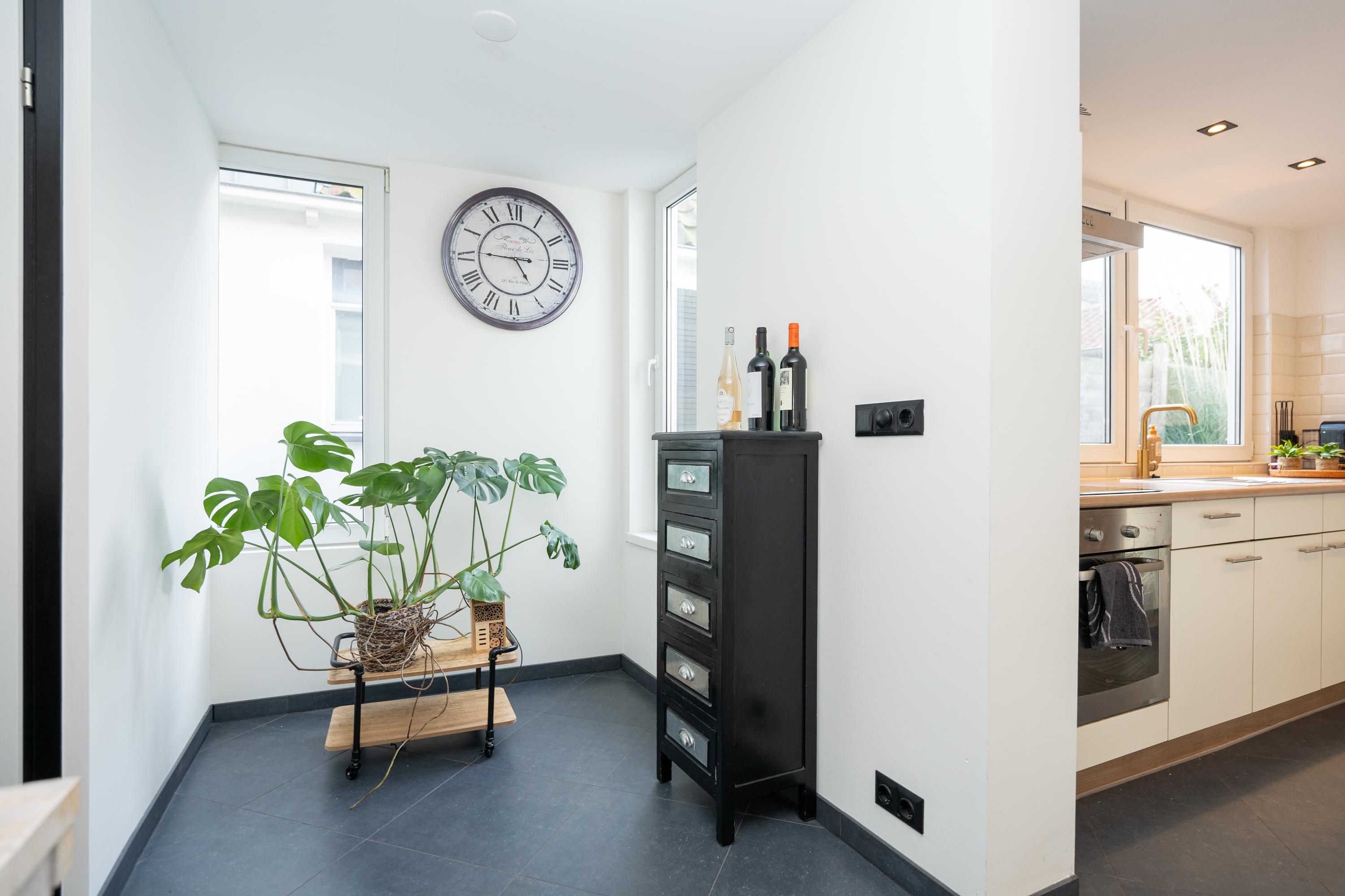 De entree bevindt zich aan de zijkant van de woning, met binnenkomst in de hal waar ook de vernieuwde meterkast is geplaatst. Vanuit de hal stap je de lichte woonkamer binnen, waar meteen de prettige sfeer opvalt.