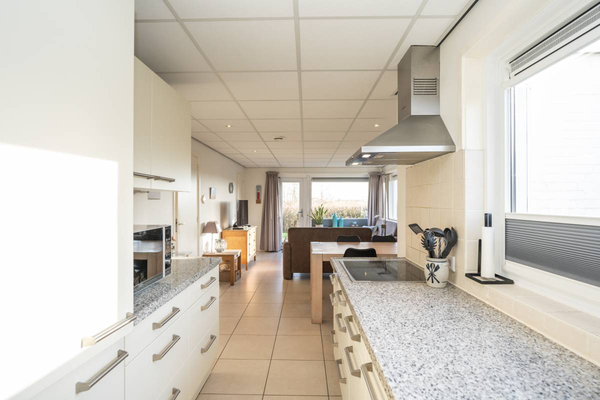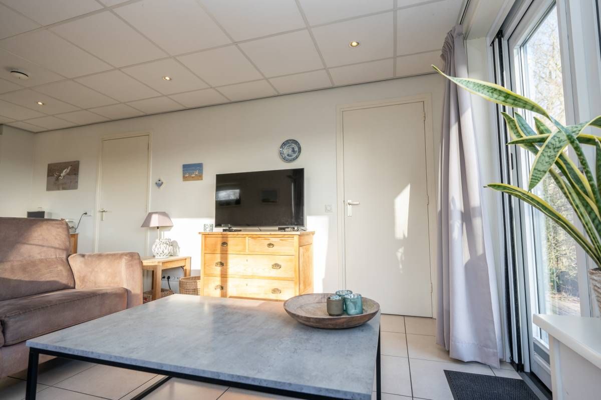 Bij binnenkomst valt direct de lichte en open sfeer op. De woonkamer is ruim opgezet en dankzij de grote raampartijen geniet u hier van een prachtig uitzicht op de tuin en het omliggende groen. Vanuit de woonkamer is er een directe doorloop naar het aansluitende betegelde terras/tuin, waardoor binnen en buiten naadloos in elkaar overlopen.