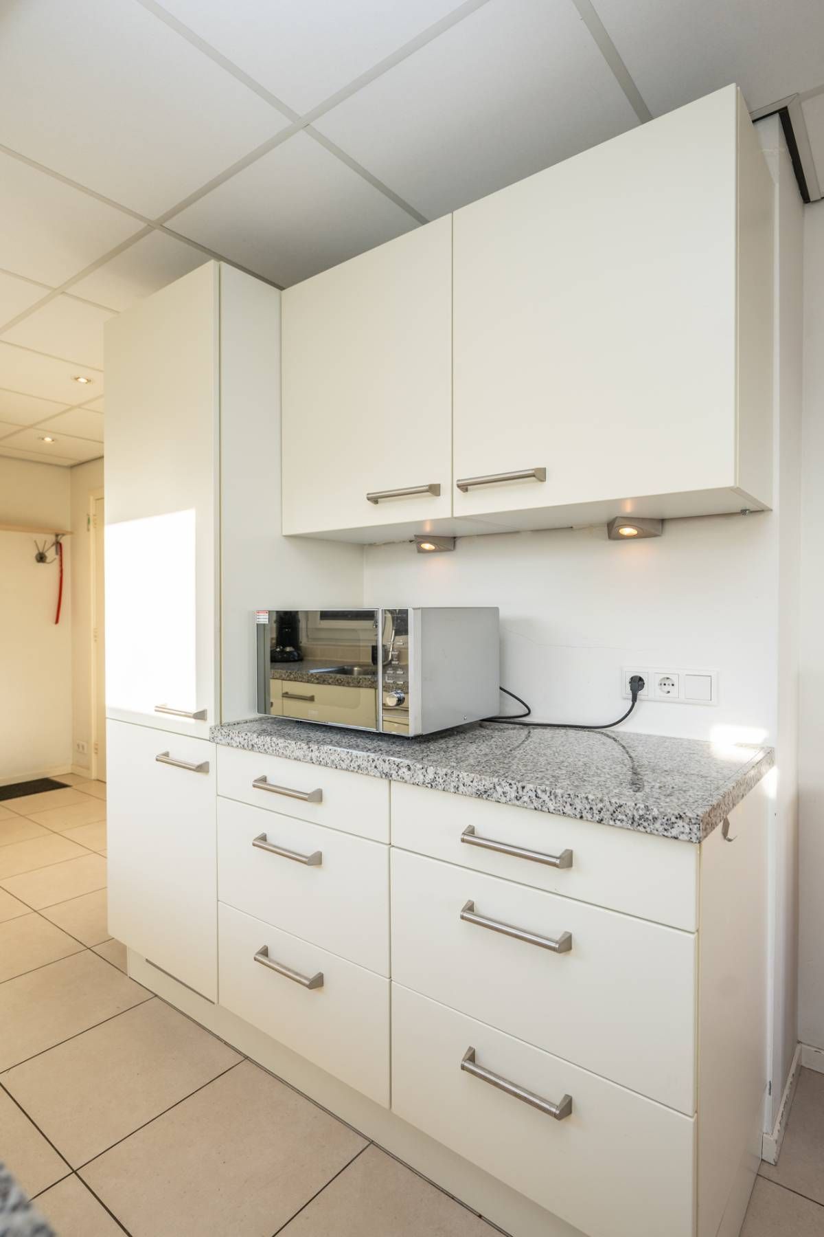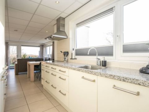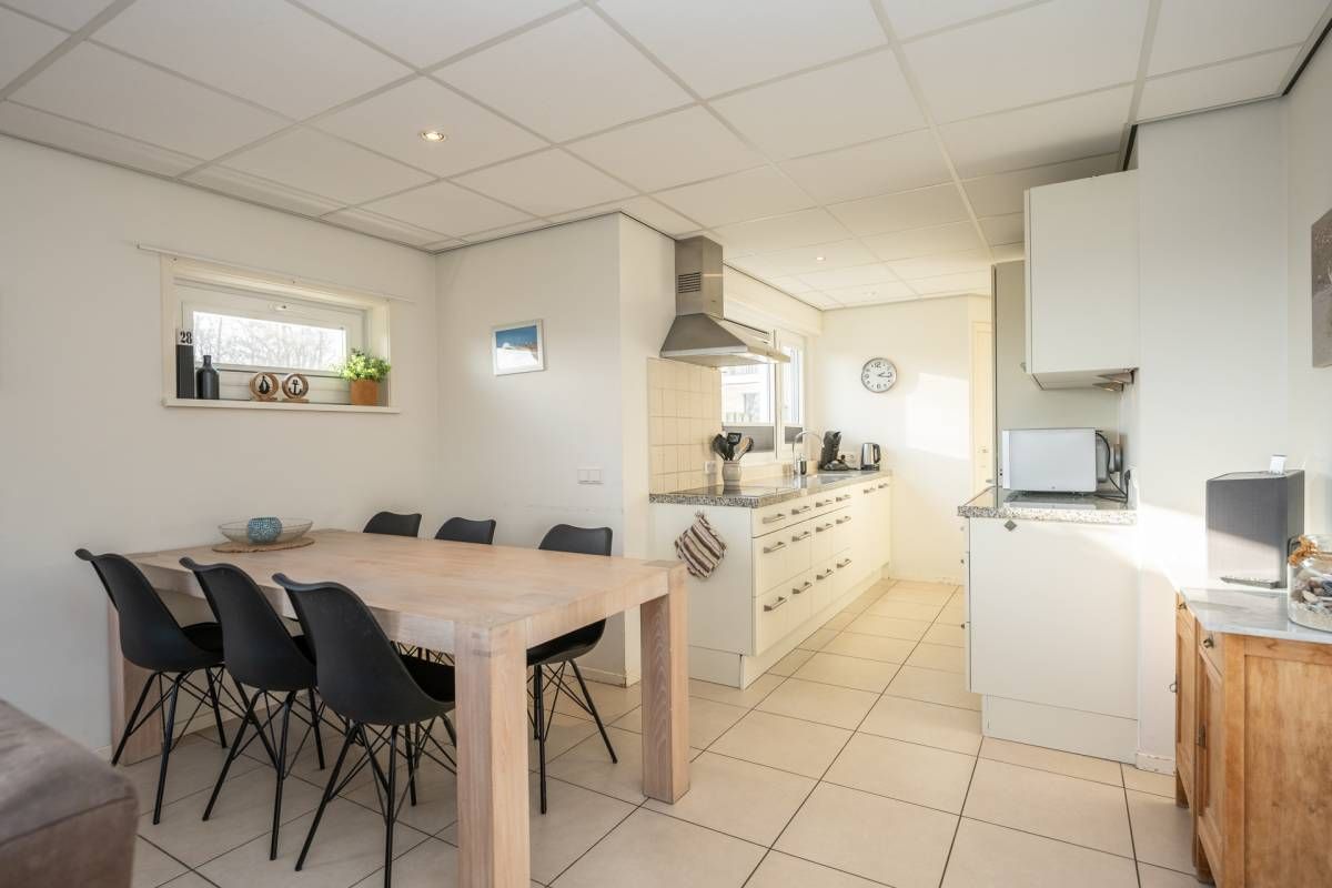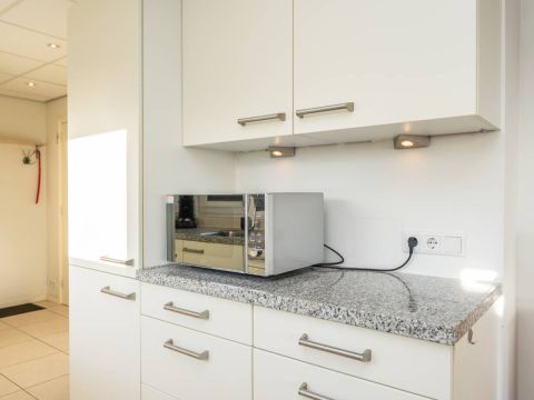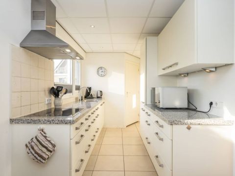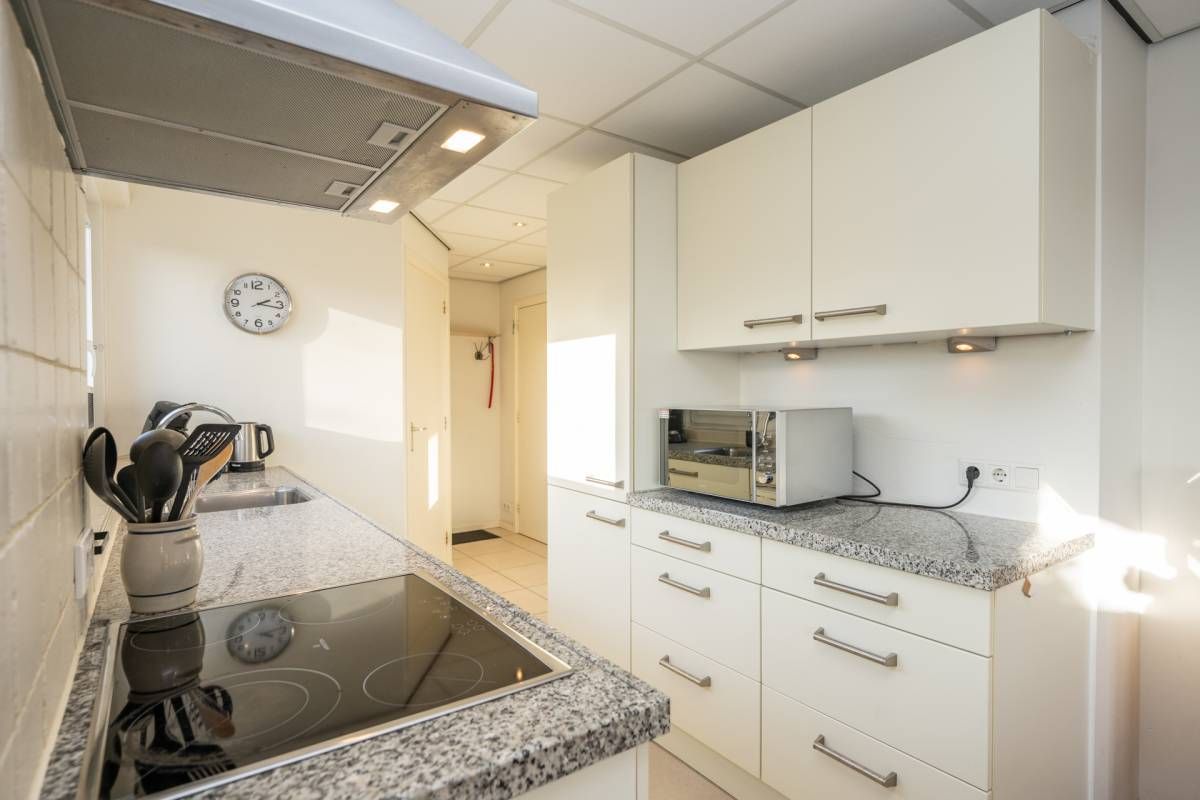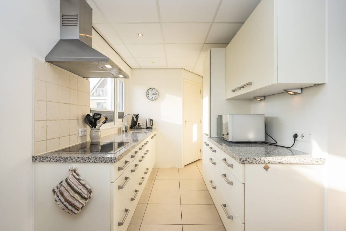 De open keuken sluit prettig aan op de woonkamer en is praktisch ingericht met voldoende werk- en kastruimte. De keuken is voorzien van diverse inbouwapparatuur, waaronder een vaatwasser, magnetron, koel- vriescombinatie en kookplaat.
