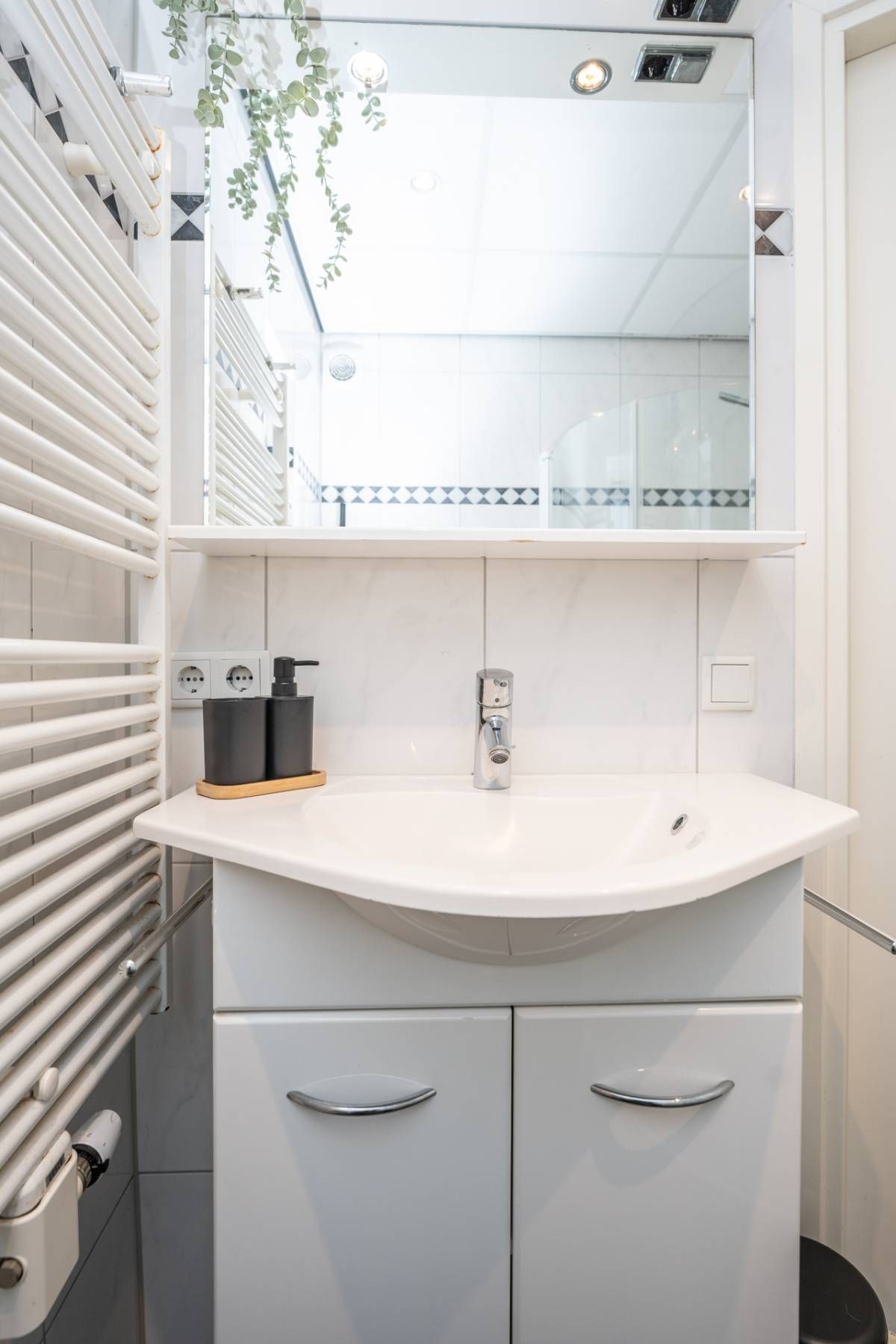 In de hal bevindt zich de opstelplaats voor de cv-ketel en de wasmachine.