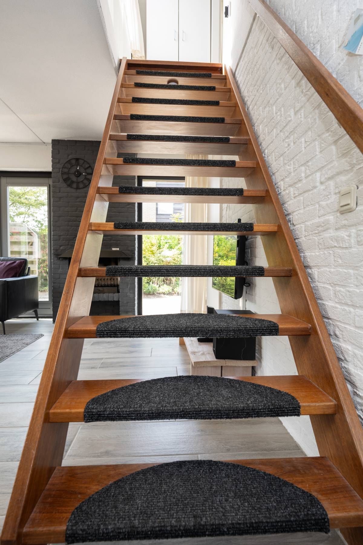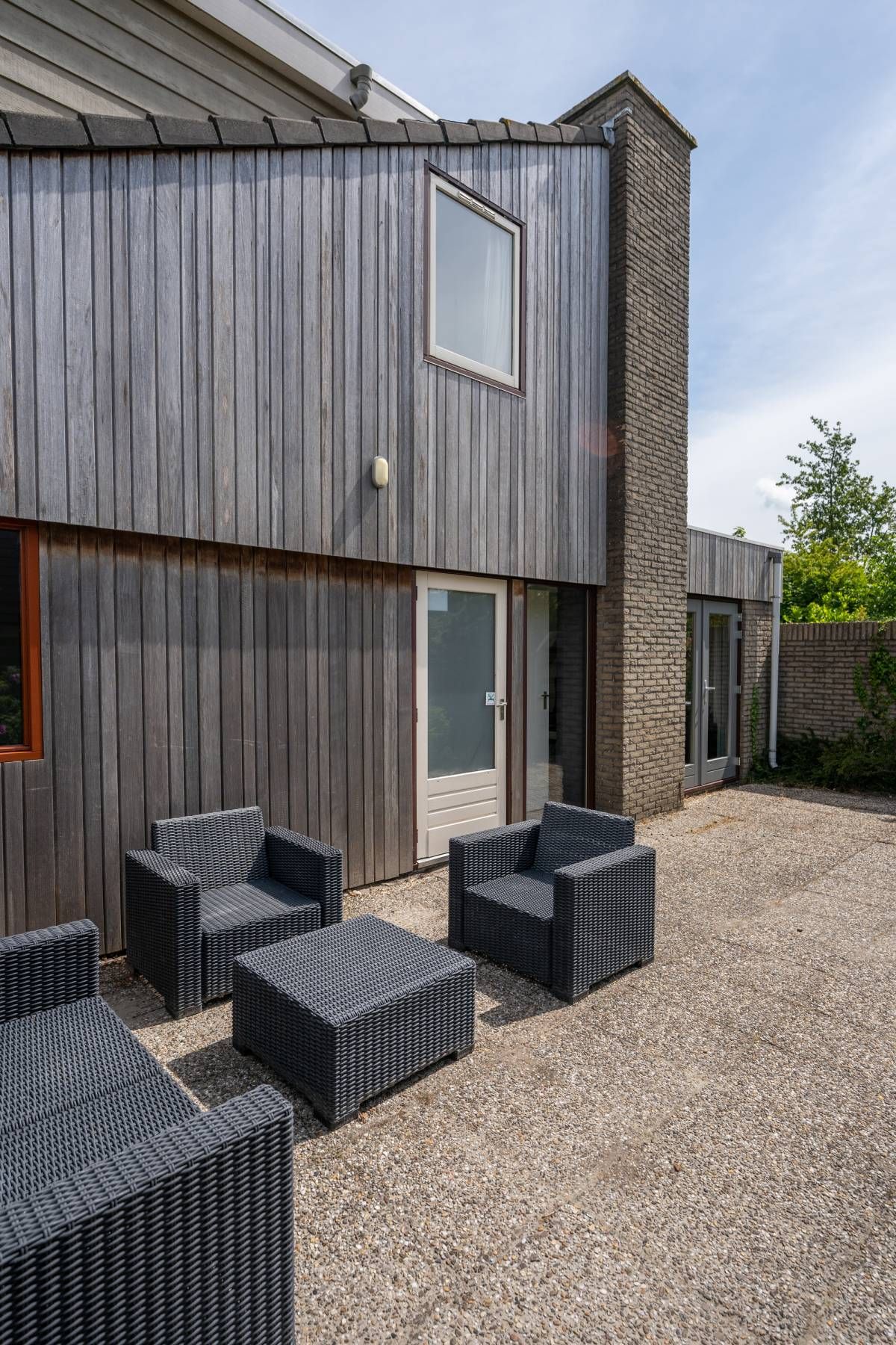 Aan de achterzijde van deze woning ontvouwt zich een verrassend groene tuin met volwassen begroeiing rondom het perceel. Hier vindt u een tweede terras en een keurig onderhouden gazon. Een ultieme plek om te genieten van de ochtend en middagzon.