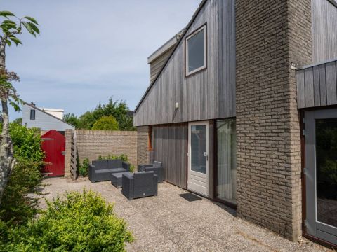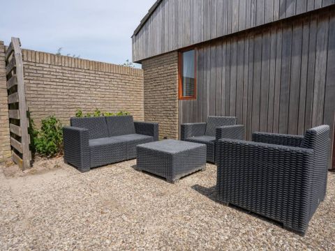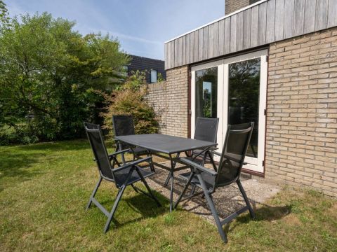TUIN | Heerlijk privé vertoeven in alle rust kan hier werkelijkheid worden. Naast de woning een fijn betegeld terras geheel omsloten door groene bosschages. Hier kunt u heerlijk genieten van de avond zon.