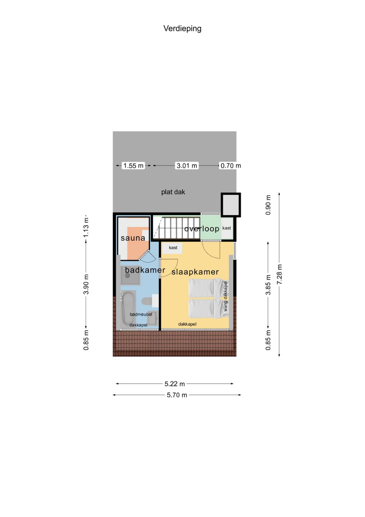 VERDIEPING | Via de trap in de woonkamer bereikt u de verdieping. Hier stapt u binnen in de royale slaapkamer annex badkamer met dakkapel. De gehele verdieping is netjes afgewerkt met een plavuizen vloer.