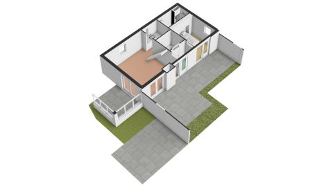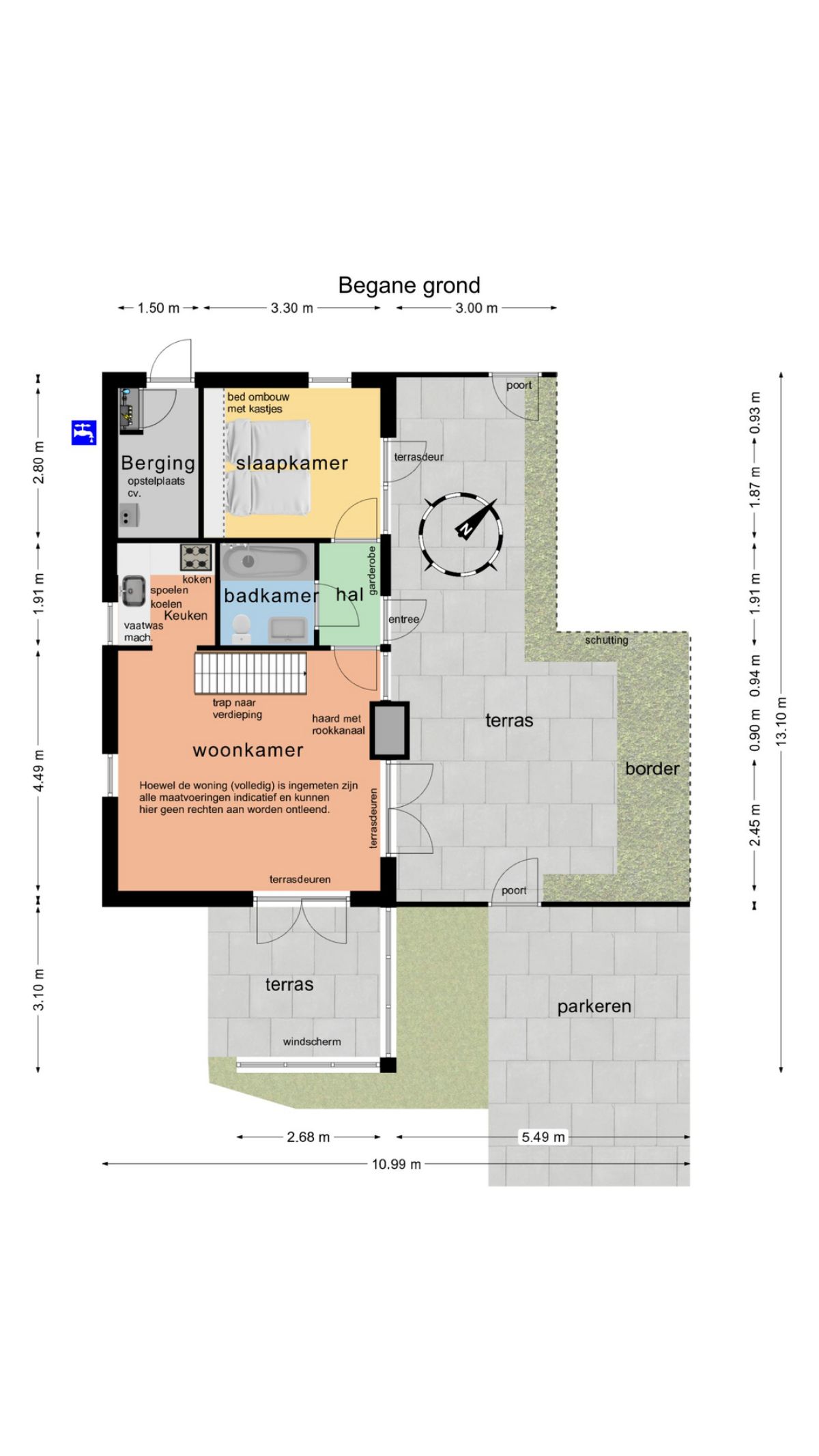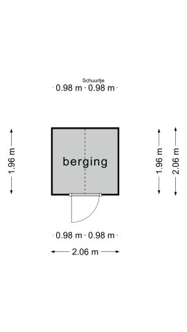Indeling: Hal/entree, toegang tot de woonkamer en keuken, slaapkamer en badkamer.