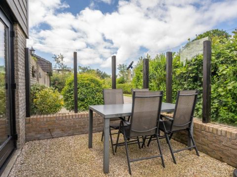 Direct naast de woning een keurig beschut terras waar u heerlijk privé kunt zitten.