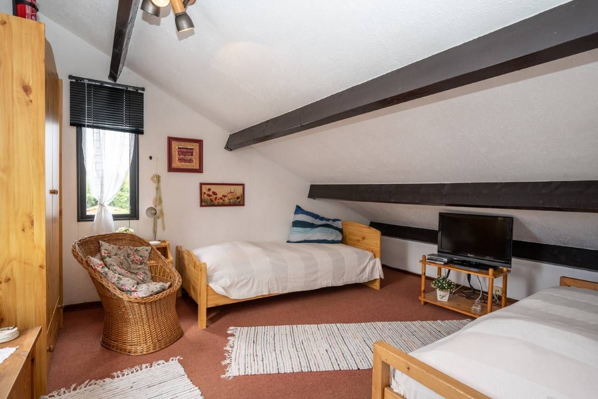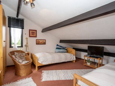 Via de trapopgang komt u op de overloop van de verdieping. Hier bevinden zich twee prettige slaapkamers.