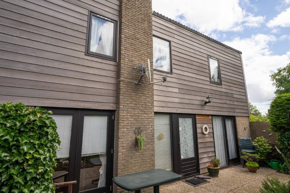 Aan de straatkant kunt u heerlijk beschut op uw terras zitten. Dit terras is omringd door een windscherm.