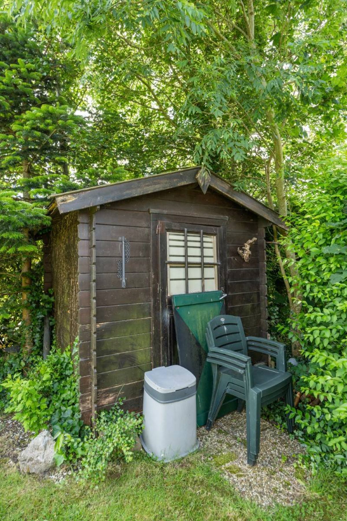 Als u verder doorloopt treft u een prachtige tuin met een verzorgd gazon, veel groen en een houten tuinhuisje. In de woning is tevens een inpandige berging aanwezig.