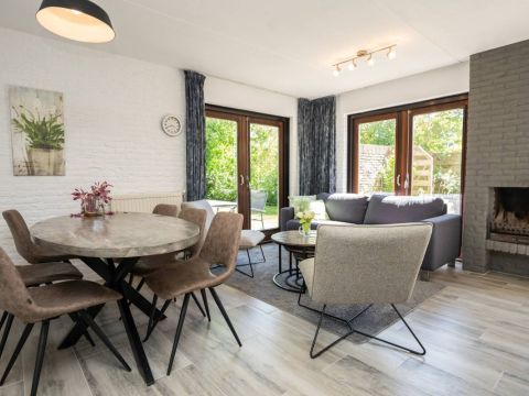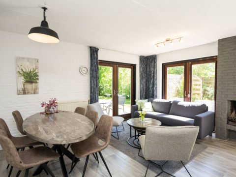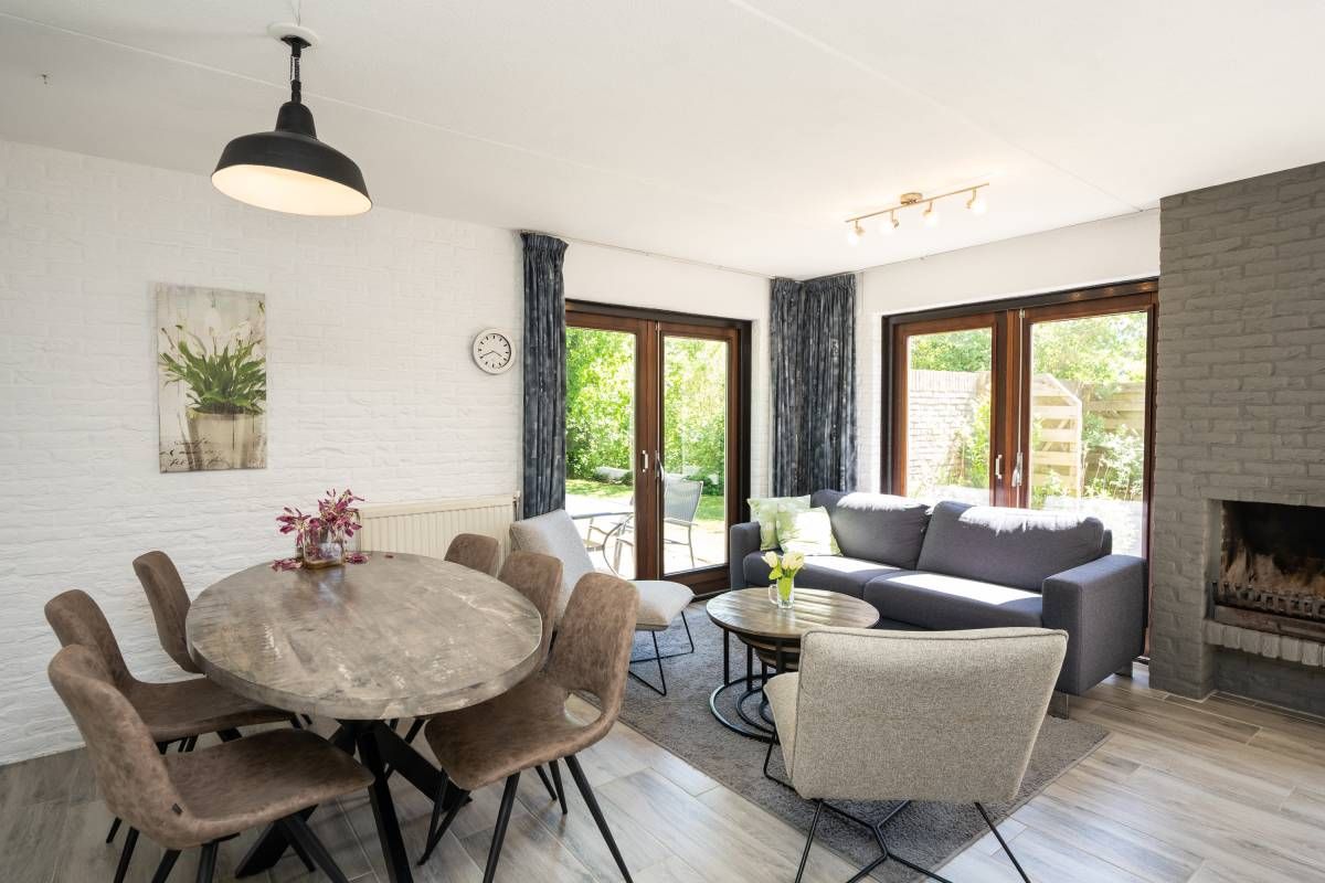 Binnen stapt u een lichte en sfeervolle woonkamer in met gezellige zithoek met openhaard. Via de openslaande deuren loopt u gemakkelijk naar de tuin. Kom binnen!