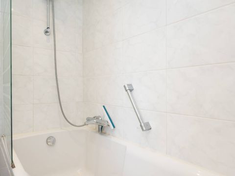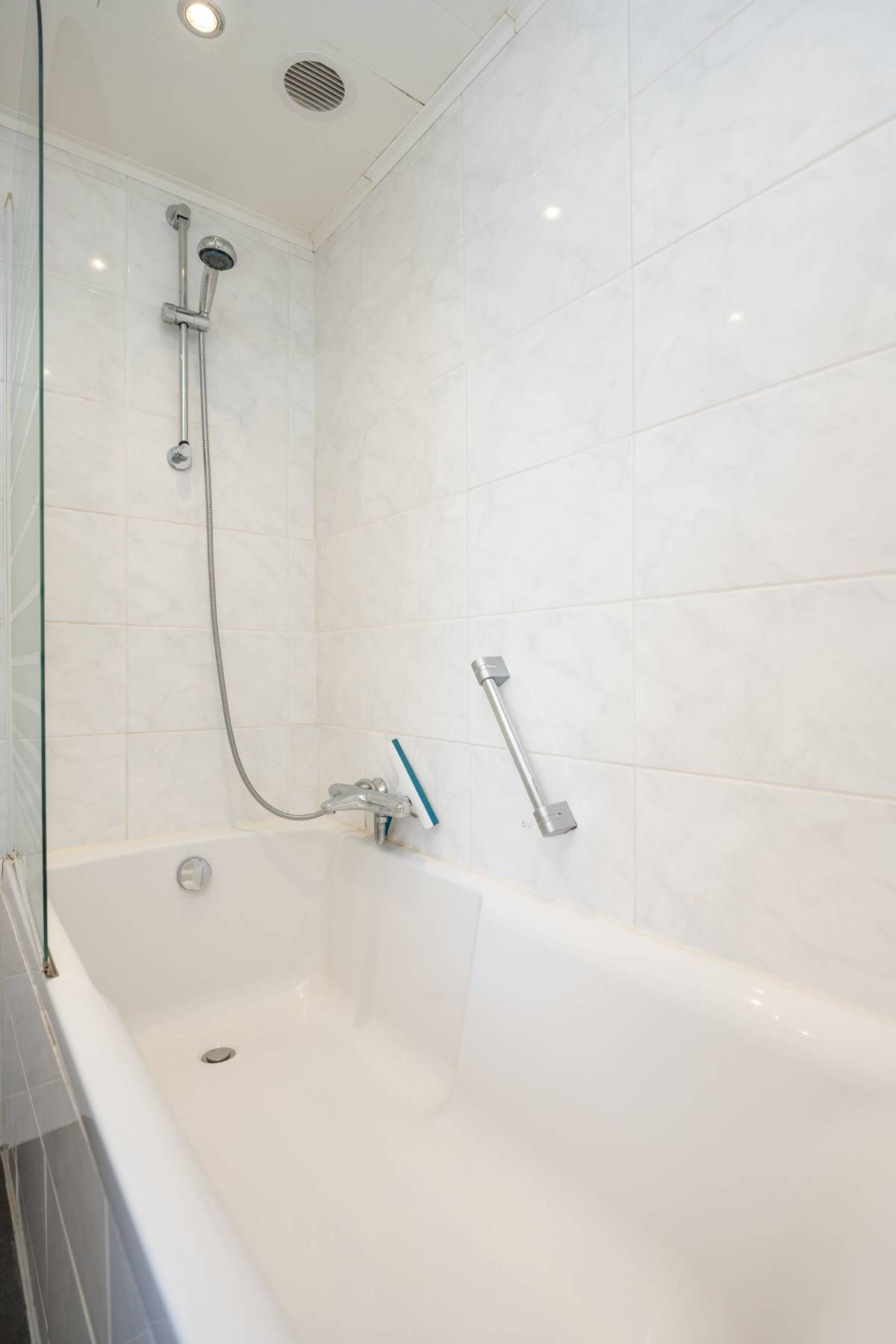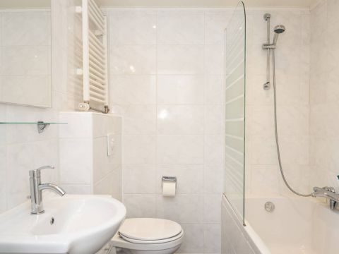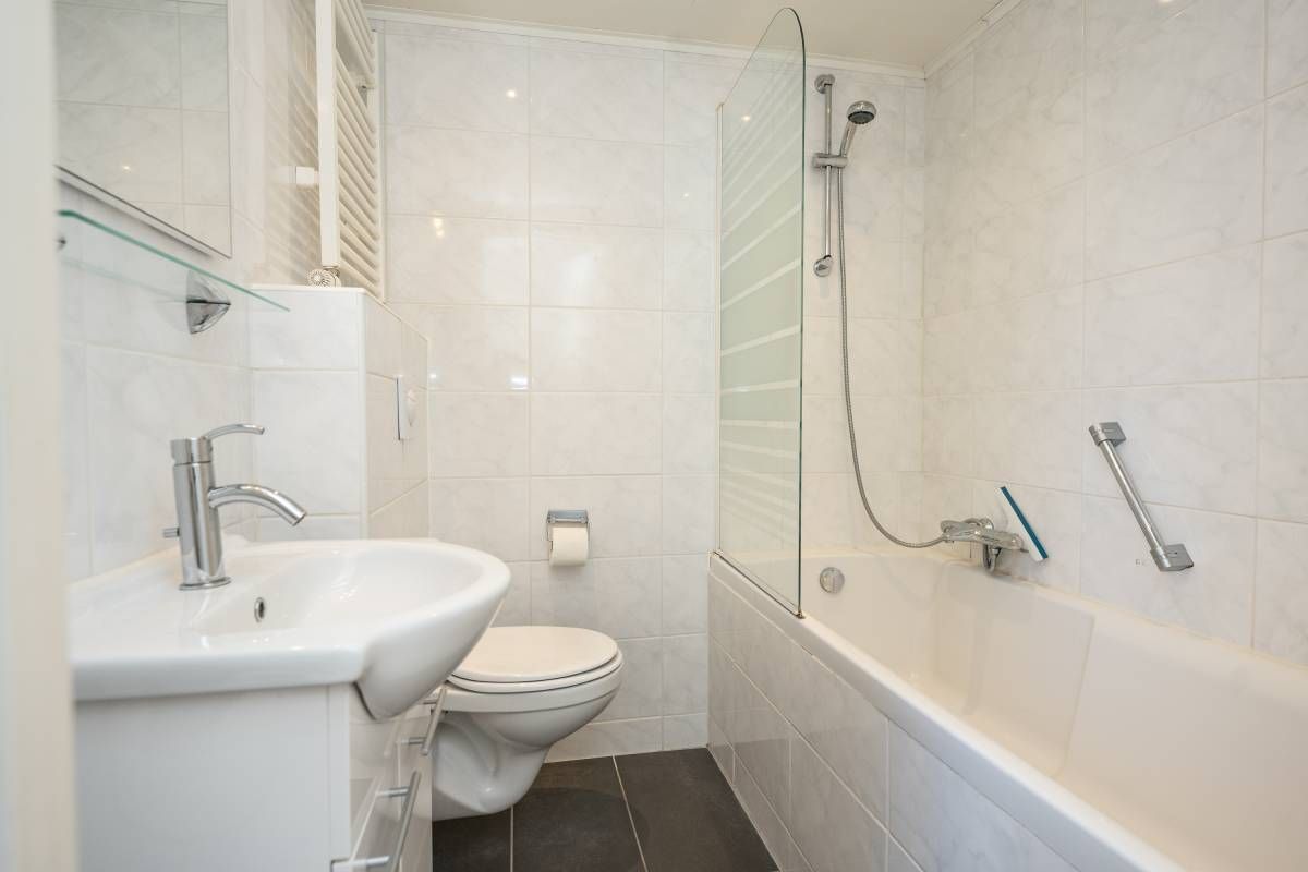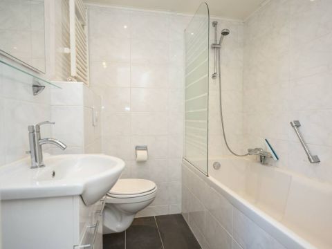 De derde badkamer heeft een heerlijk ligbad met douche, een was tafelmeubel en een toilet.