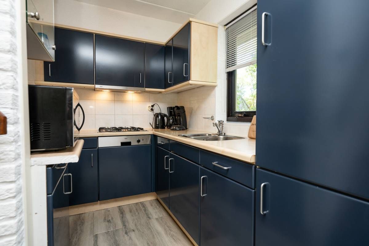 Aansluitend de nette keuken welke is voorzien van oa. een gaskookplaat, vaatwasmachine, magnetron en afzuigkap.